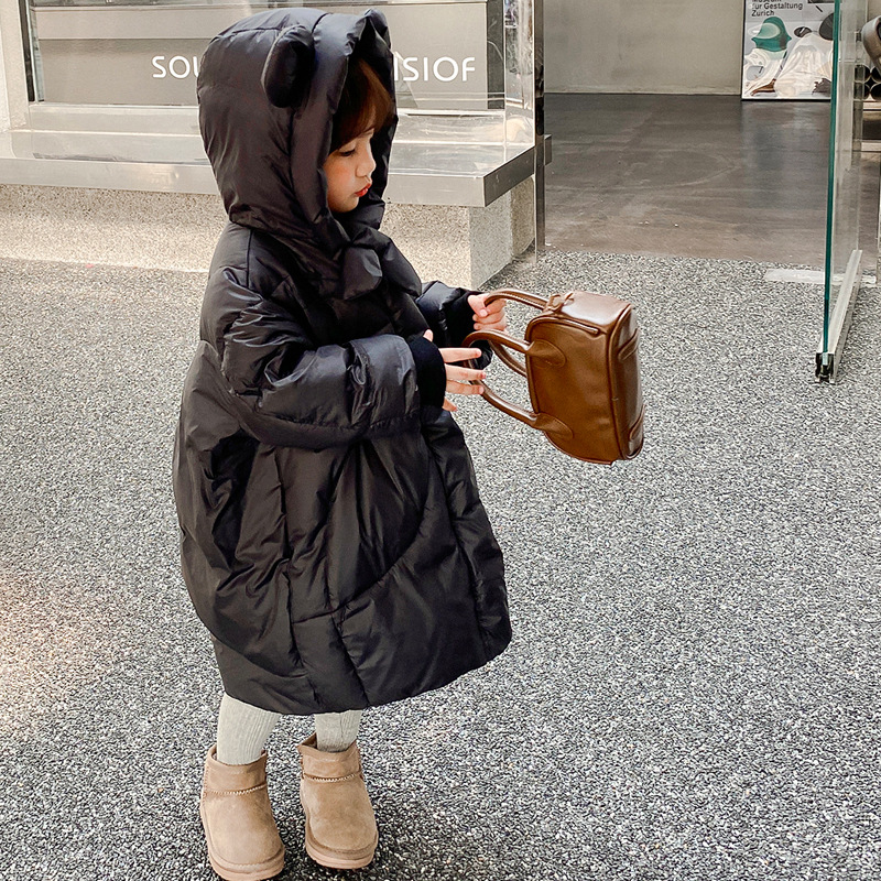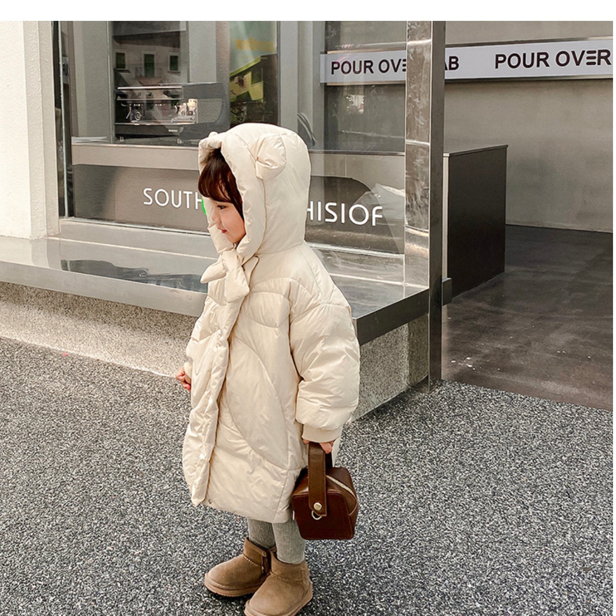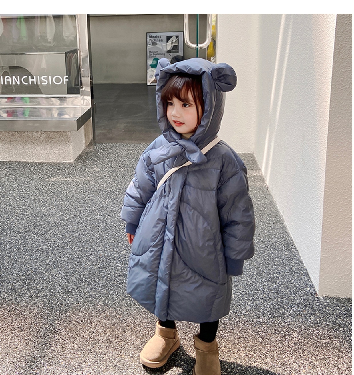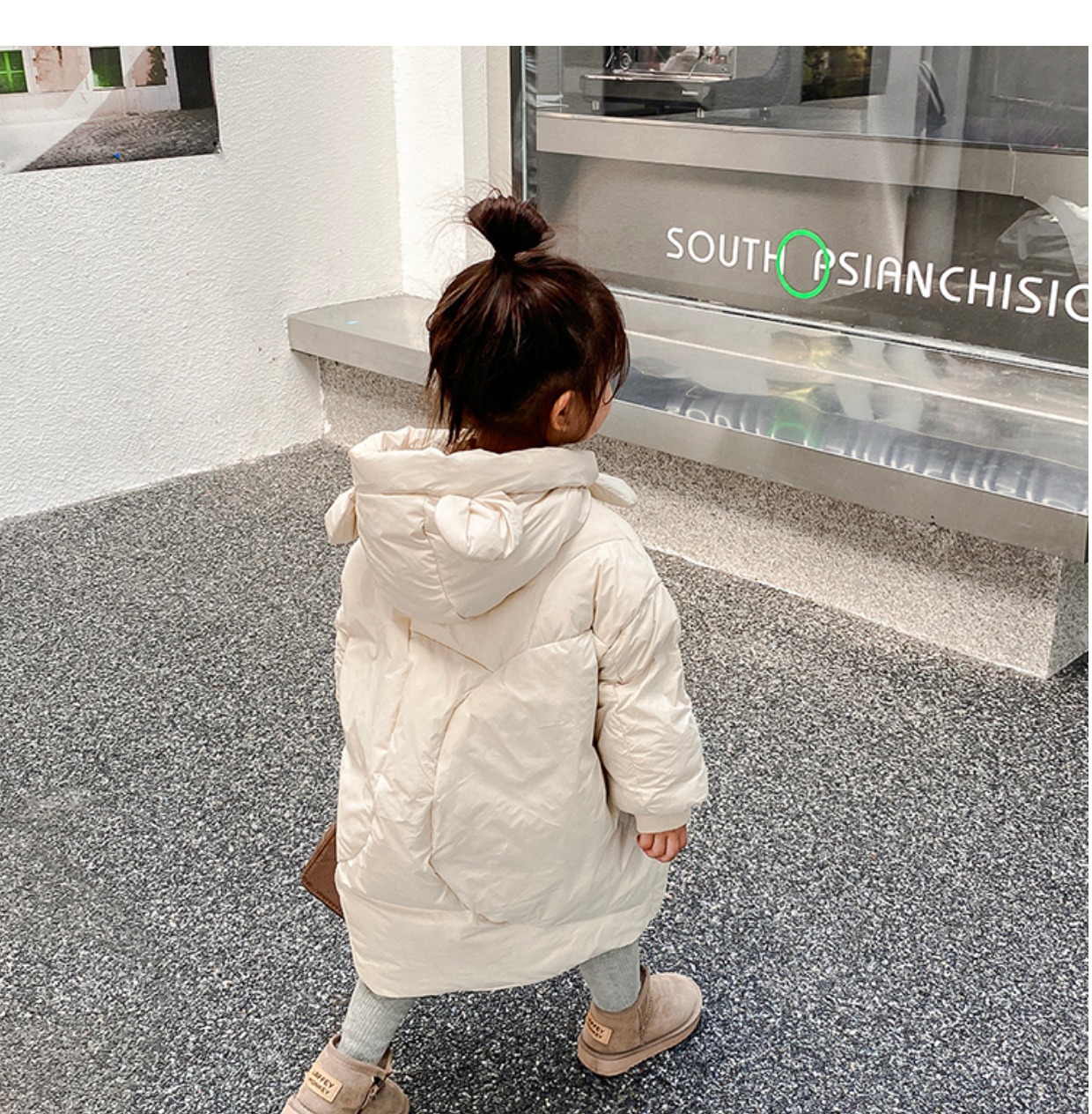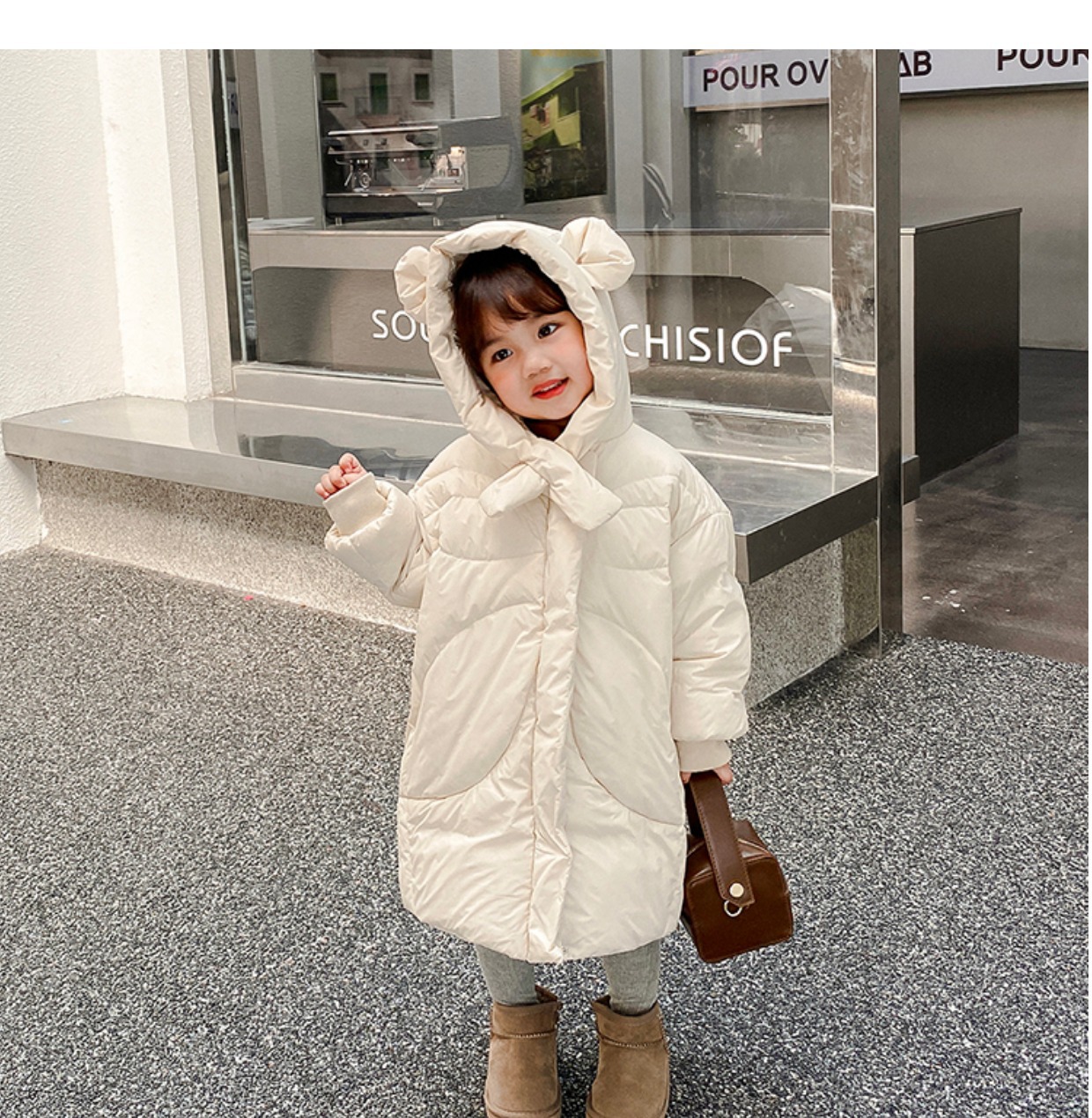 24년 겨울 신상 아동용 다운 재킷 남아 여아 아기 곰 귀 흰색 오리털 중간 길이 따뜻한 외투
