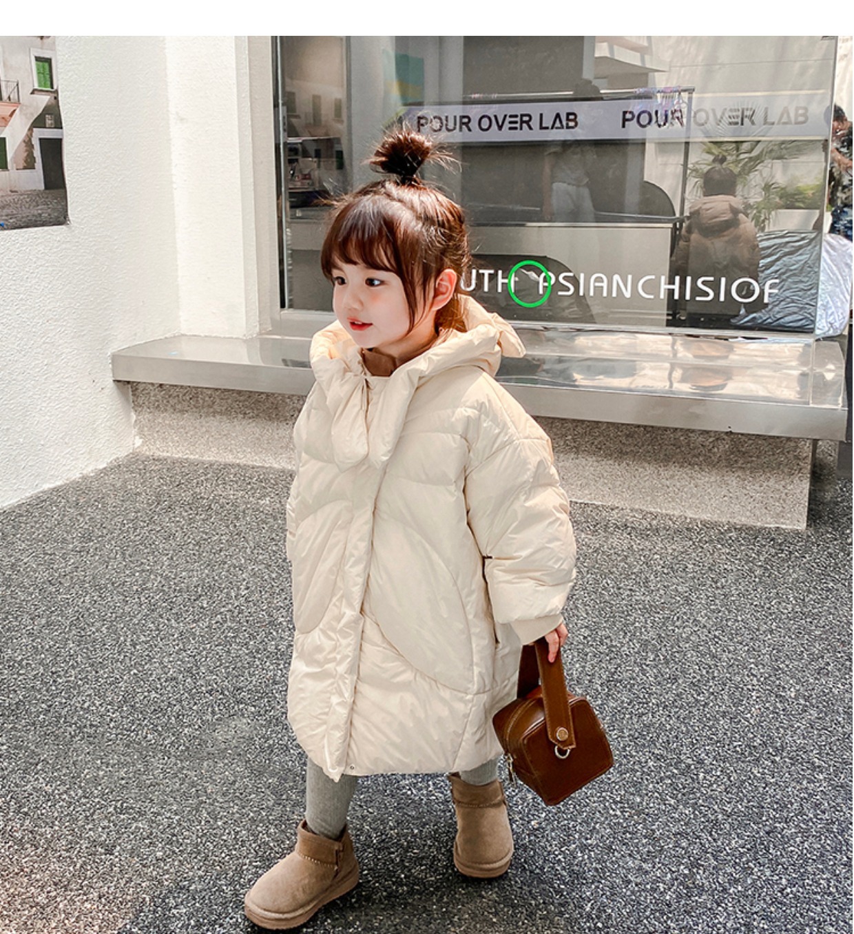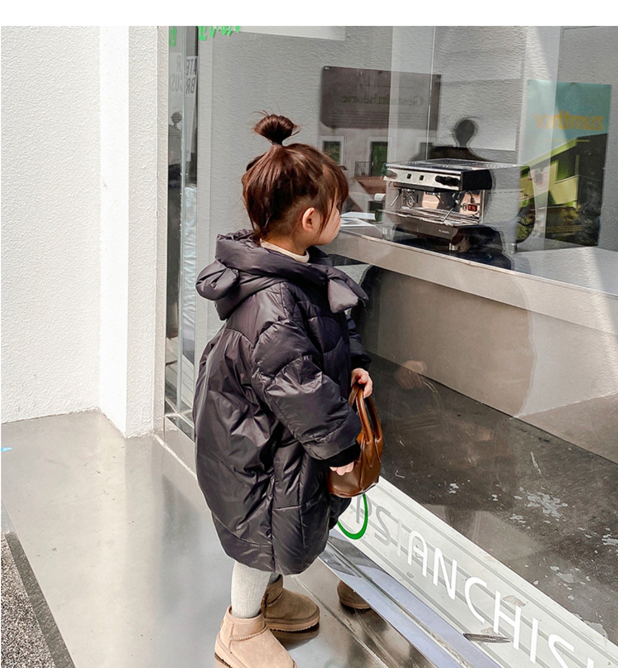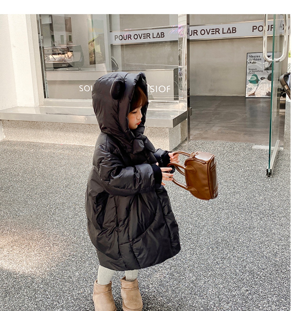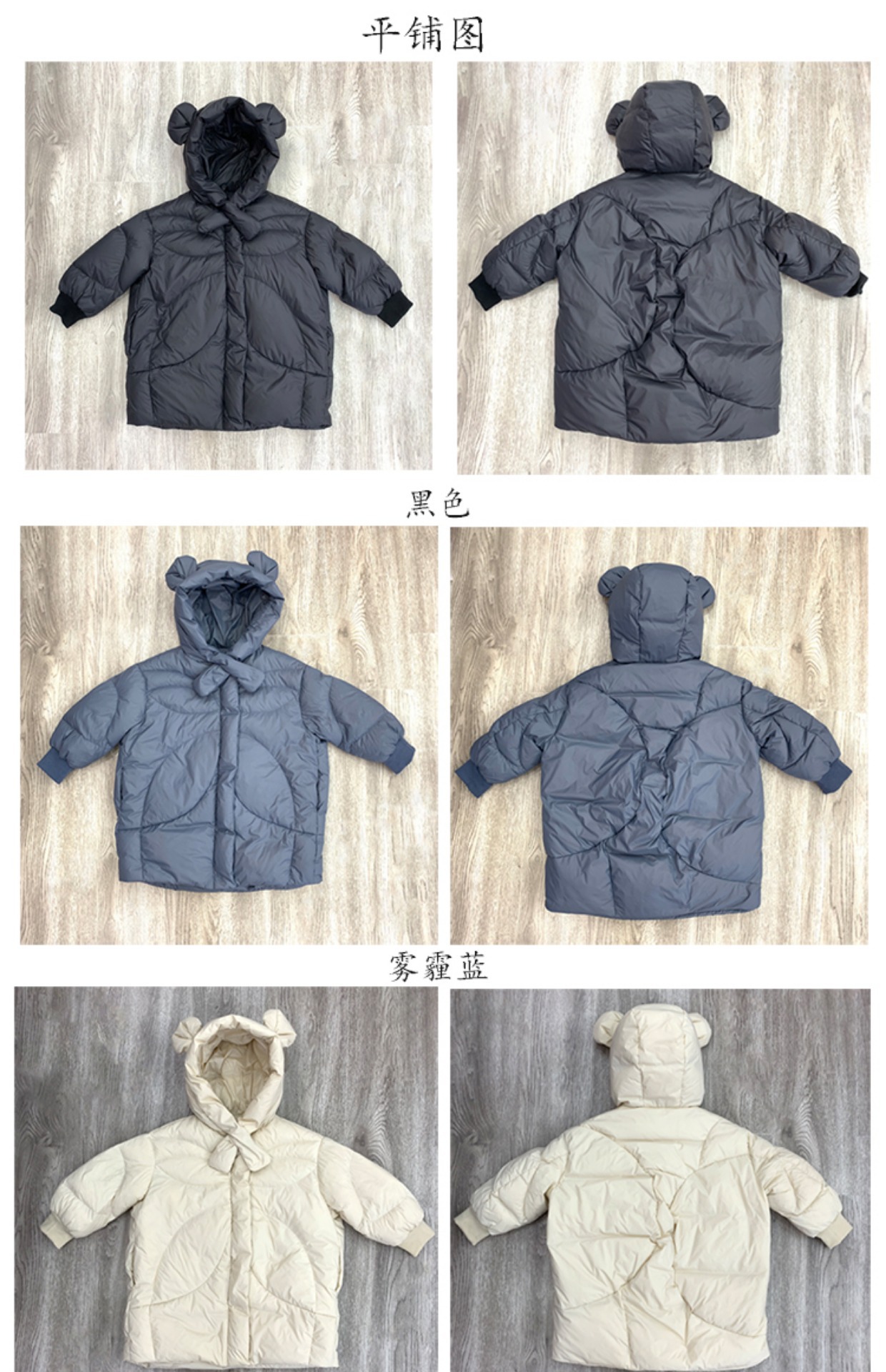 24년 겨울 신상 아동용 다운 재킷 남아 여아 아기 곰 귀 흰색 오리털 중간 길이 따뜻한 외투