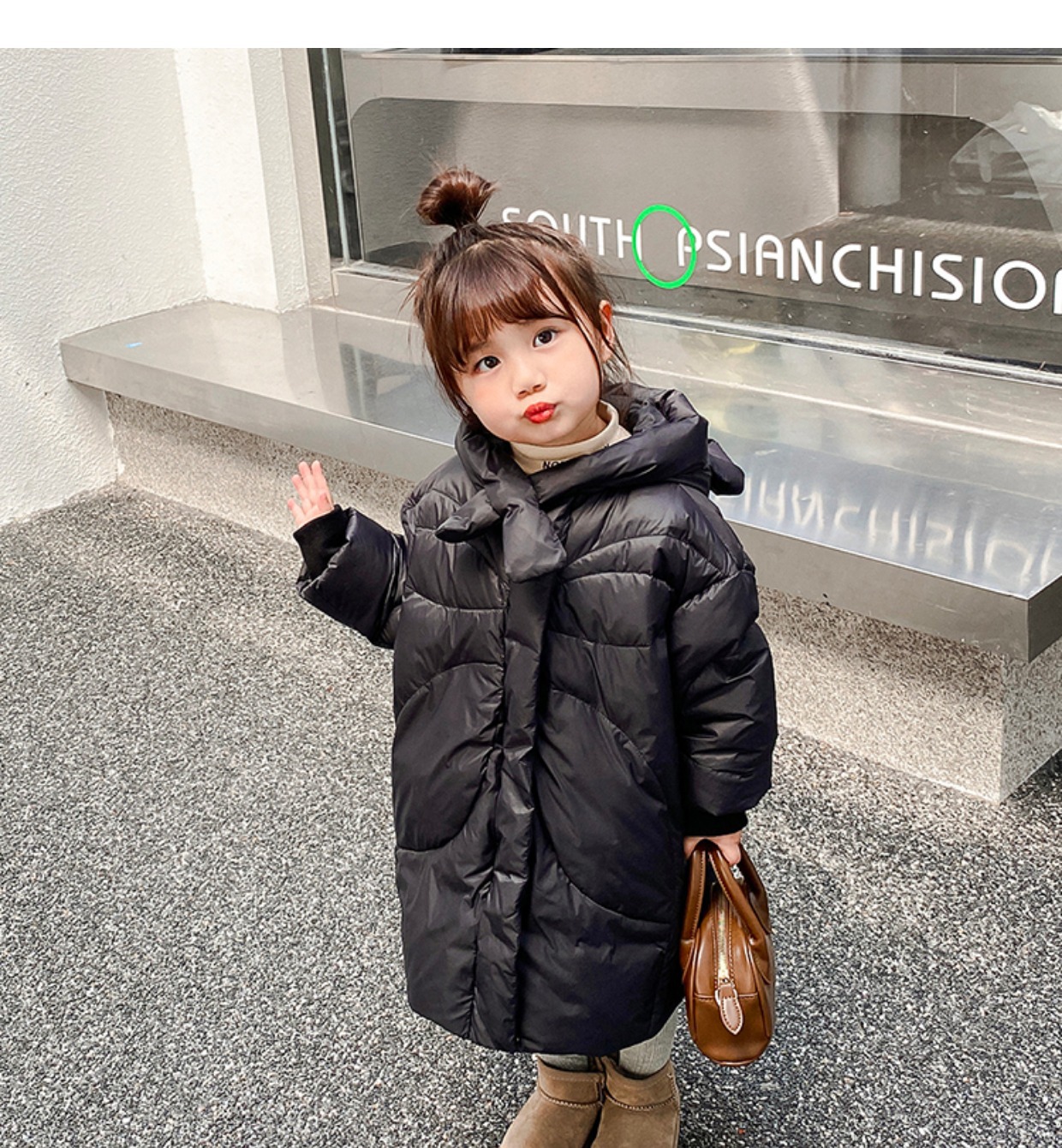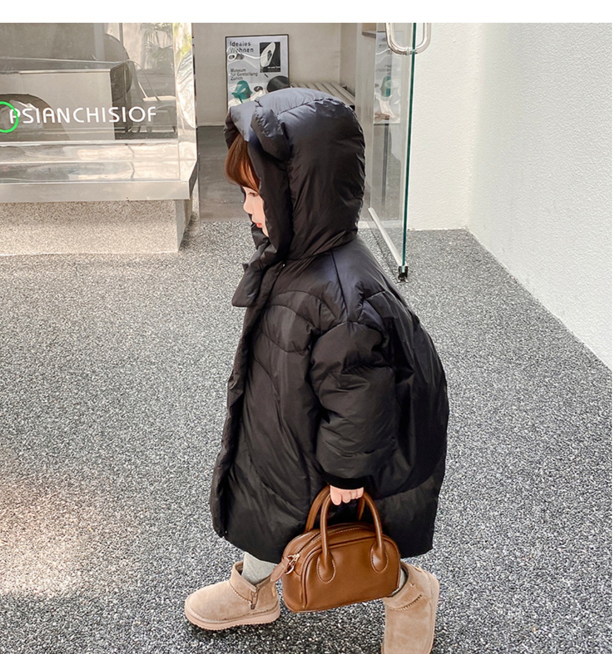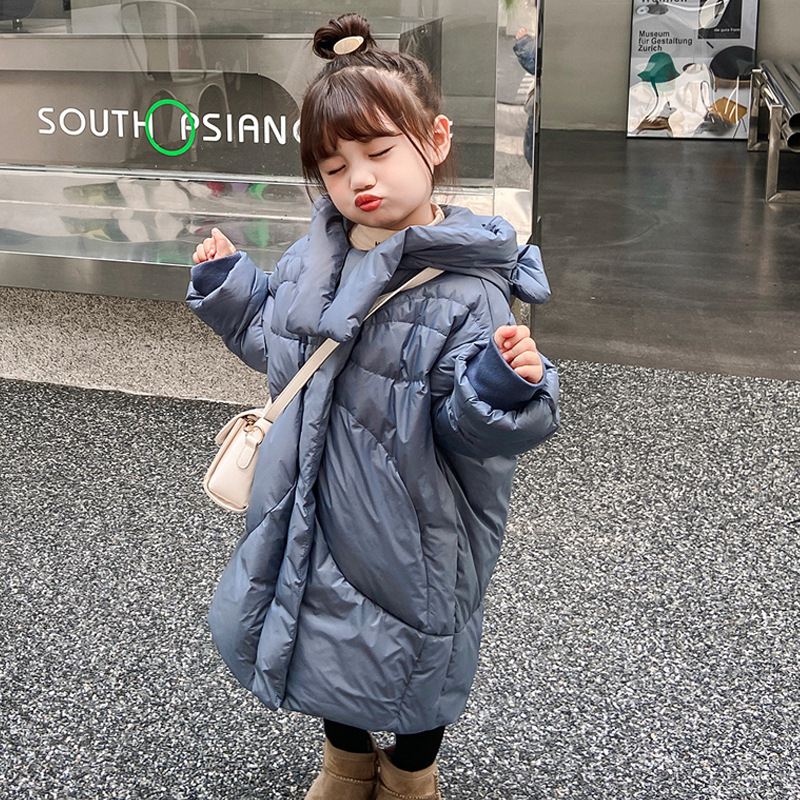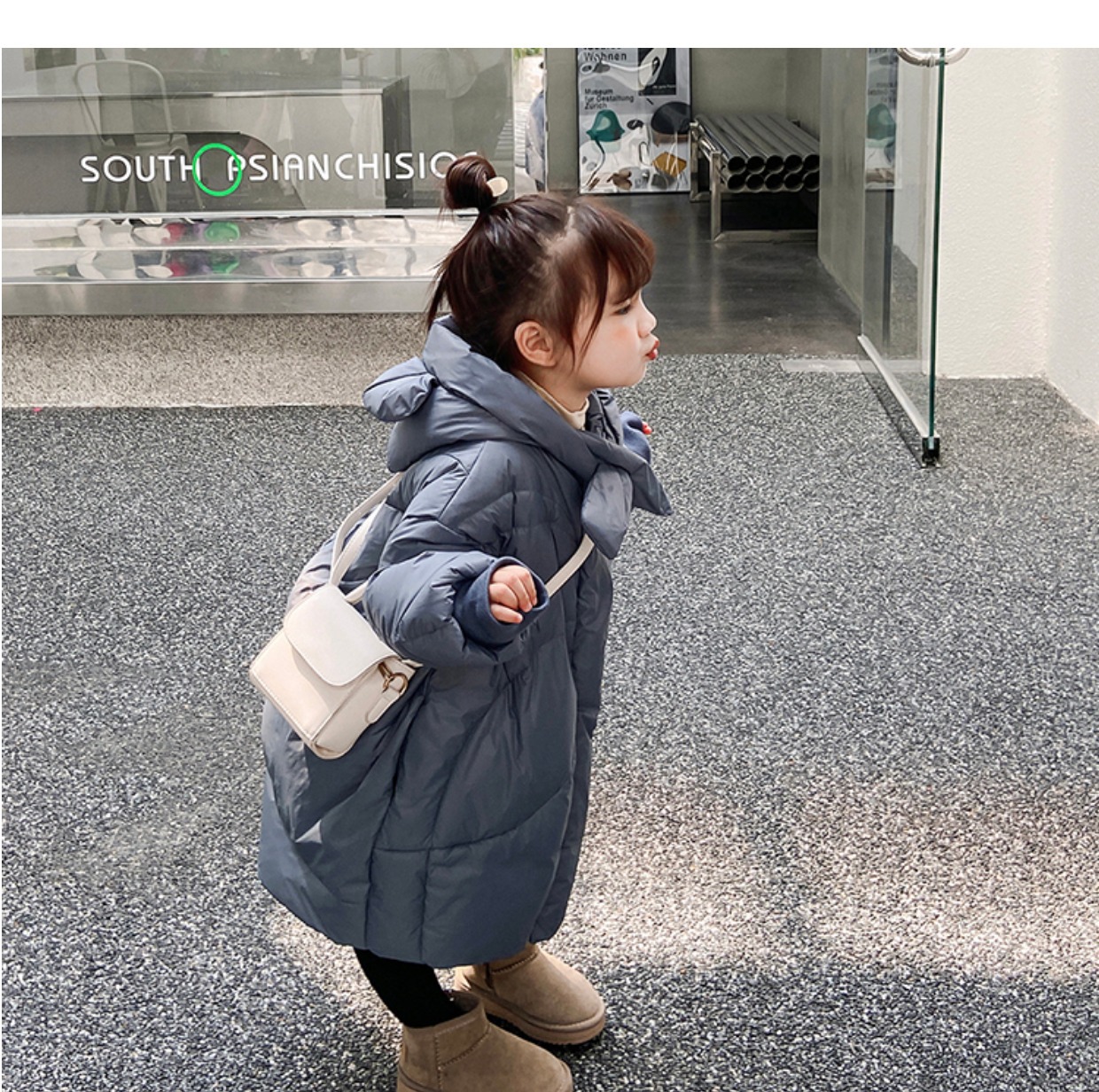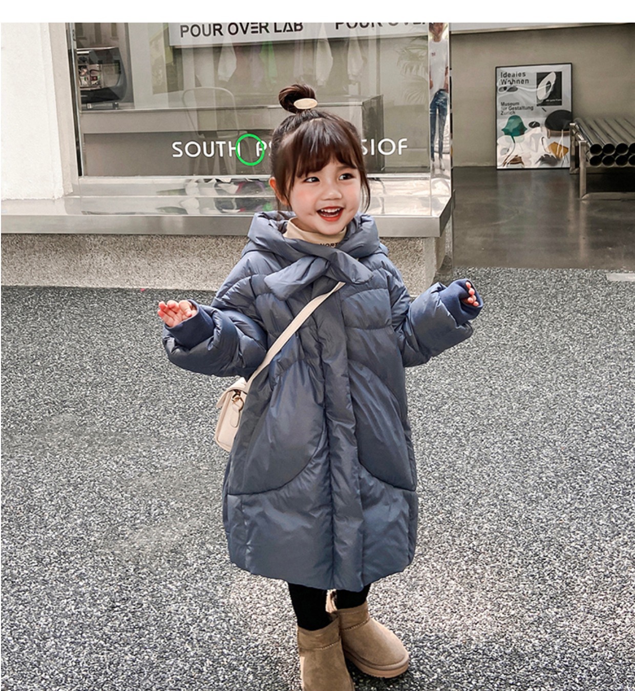 24년 겨울 신상 아동용 다운 재킷 남아 여아 아기 곰 귀 흰색 오리털 중간 길이 따뜻한 외투