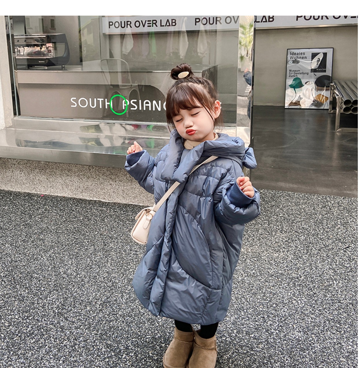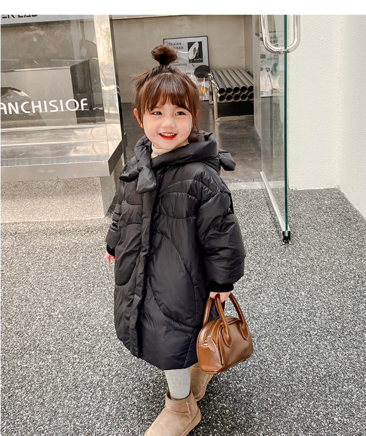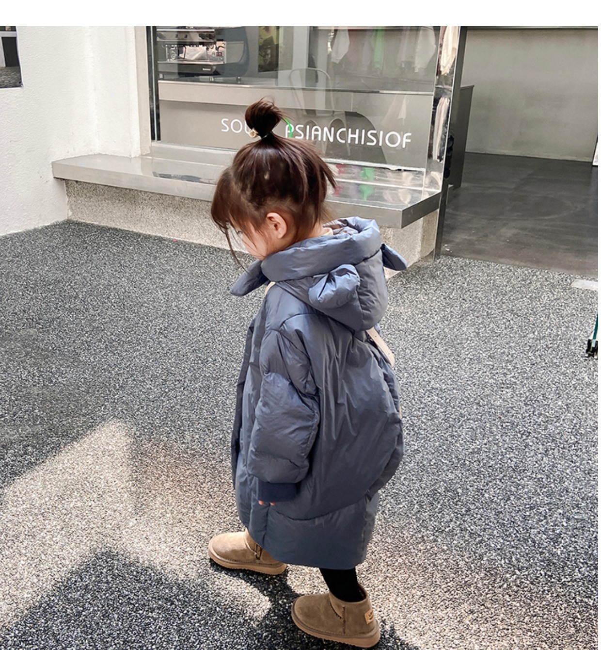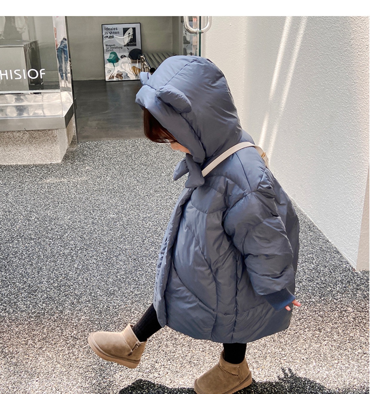 24년 겨울 신상 아동용 다운 재킷 남아 여아 아기 곰 귀 흰색 오리털 중간 길이 따뜻한 외투스토어 가기
