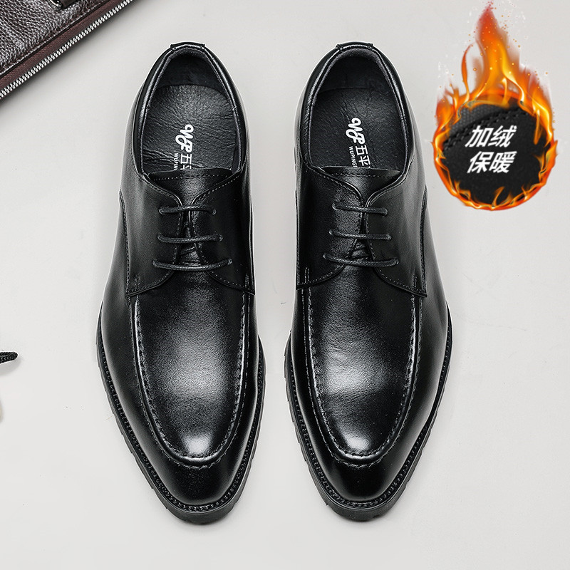 비즈니스 정장 남성 가죽 구두, 겨울용 플러스 사이즈 면 가죽 구두, 젊은층 한국 스타일 영국식 블랙 신사 다용도스토어 가기