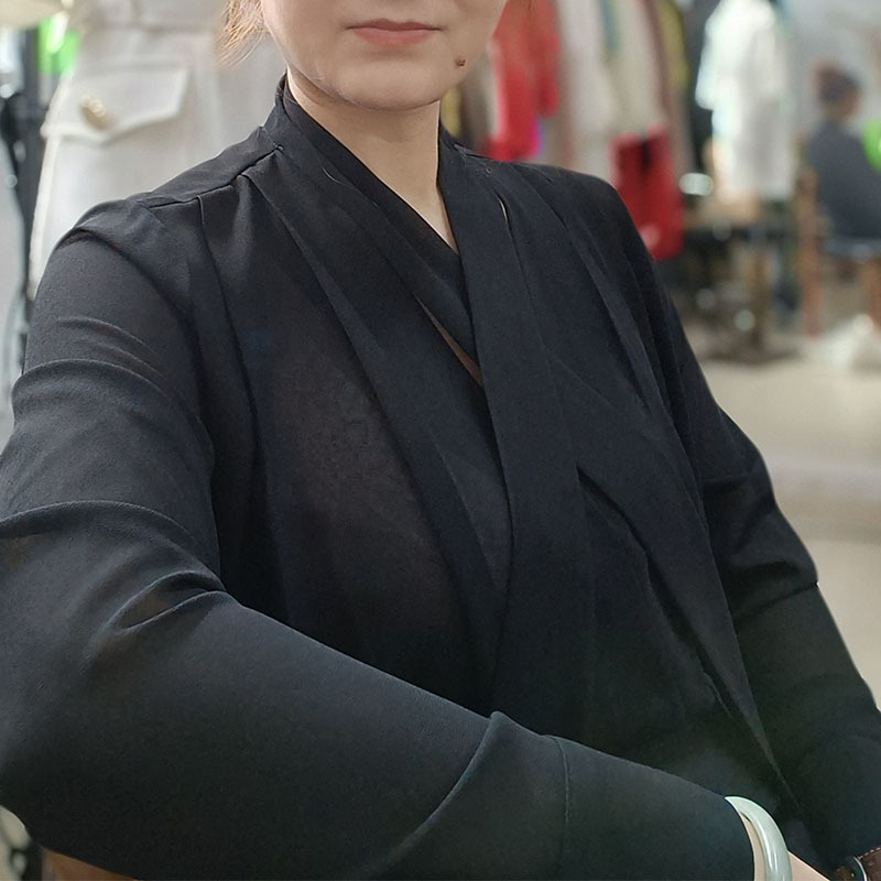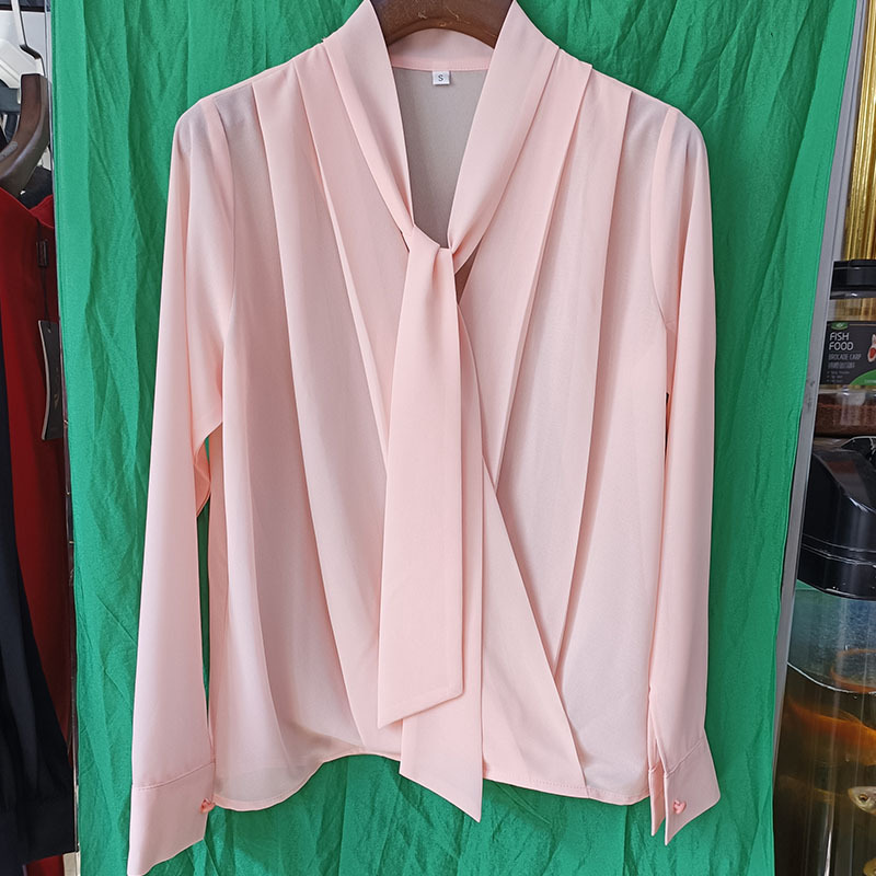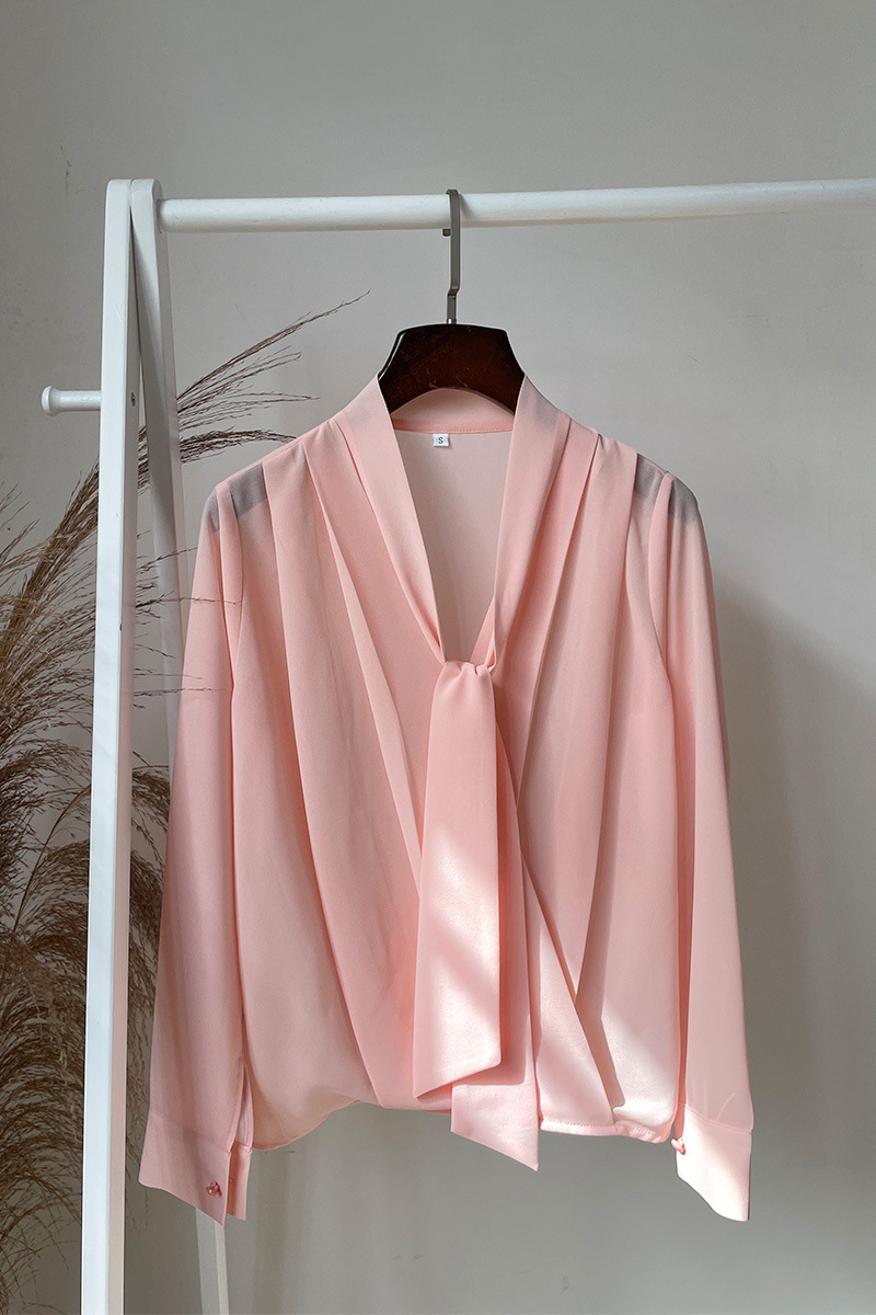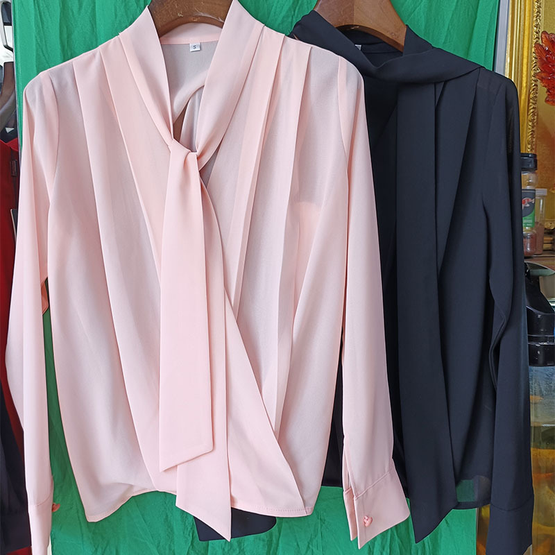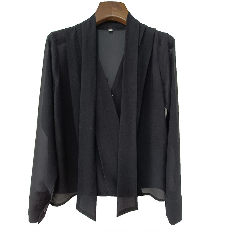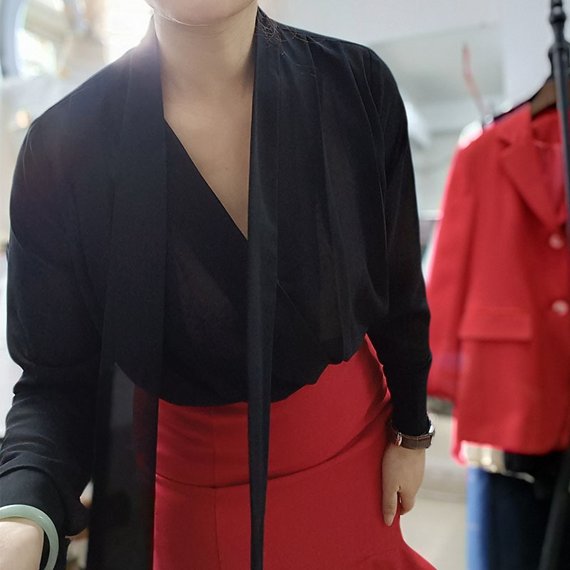 쉬폰 블랙 셔츠 여성용 디자인 센스 틈새 V 넥 롱 슬리브 우아한 시크 탑 통근 만능 셔츠스토어 가기