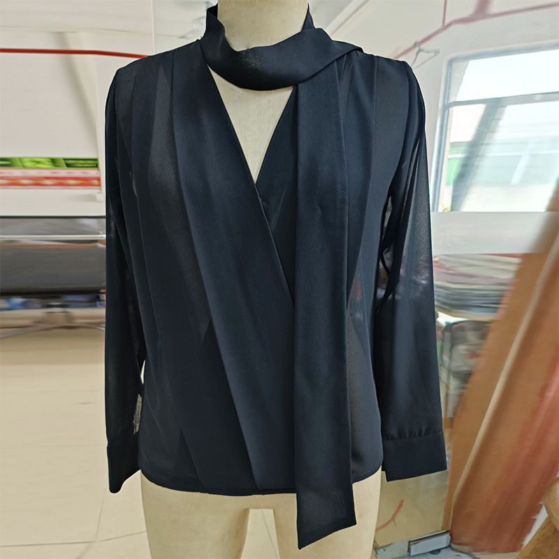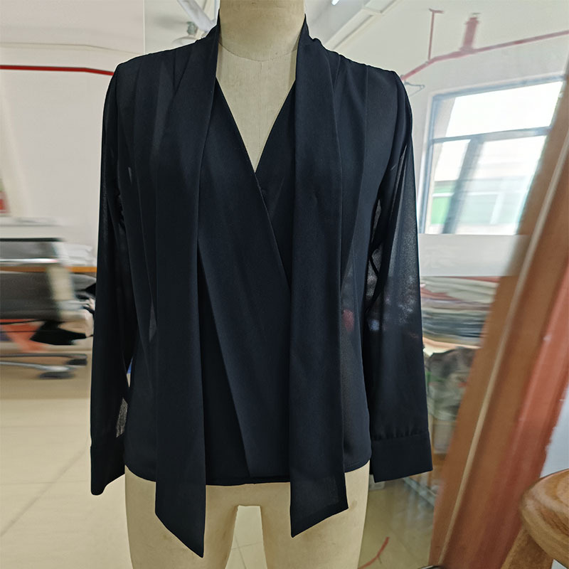 쉬폰 블랙 셔츠 여성용 디자인 센스 틈새 V 넥 롱 슬리브 우아한 시크 탑 통근 만능 셔츠