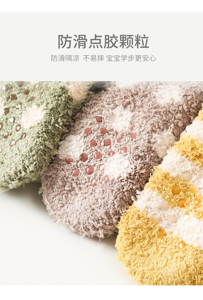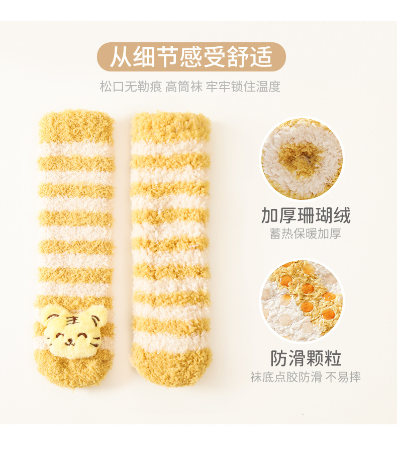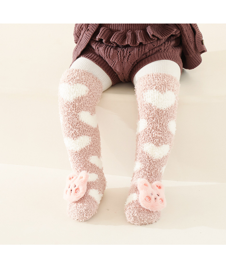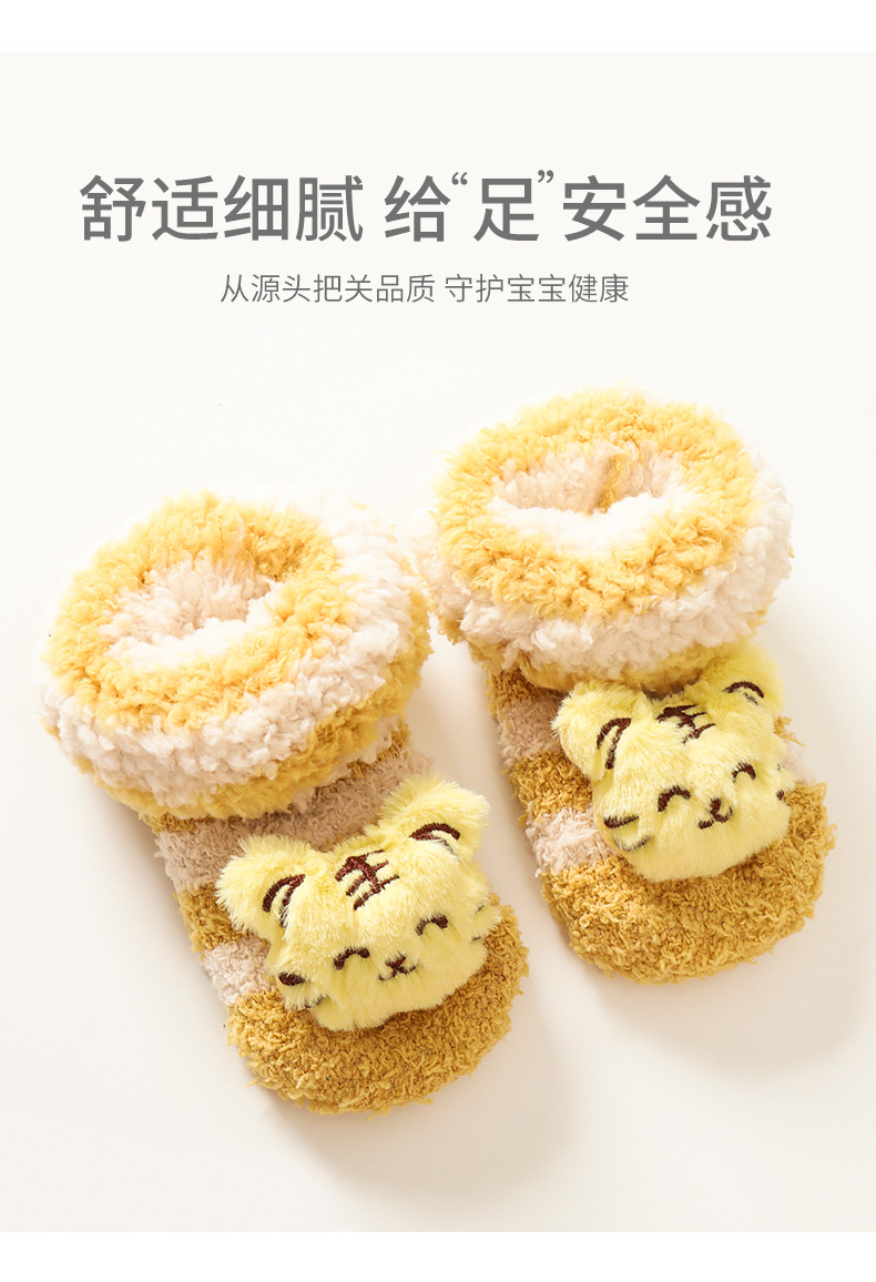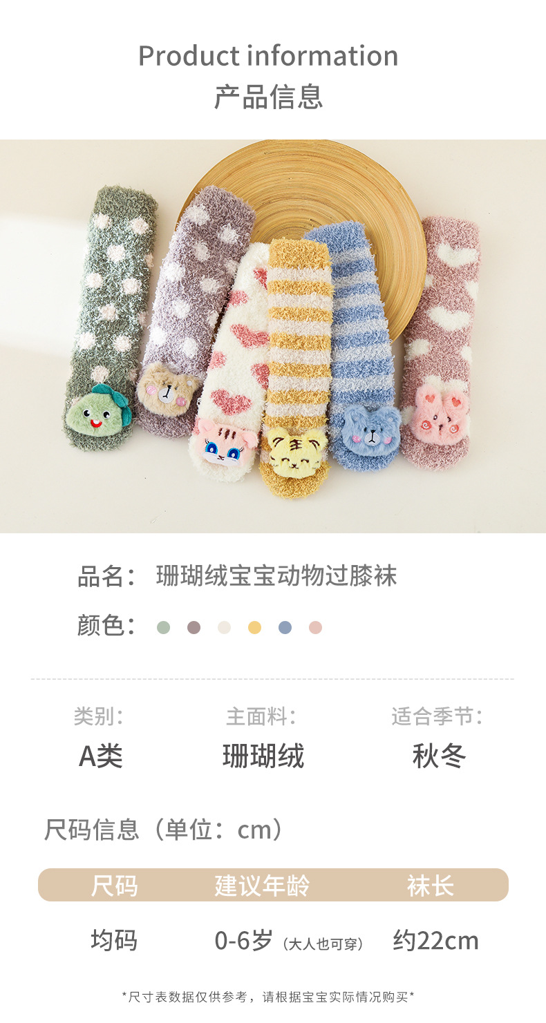23 가을과 겨울 산호 양털 두꺼운 아기 긴 튜브 신생아 클래스 아기 미끄럼 방지 만화 기모 어린이 바닥 양말