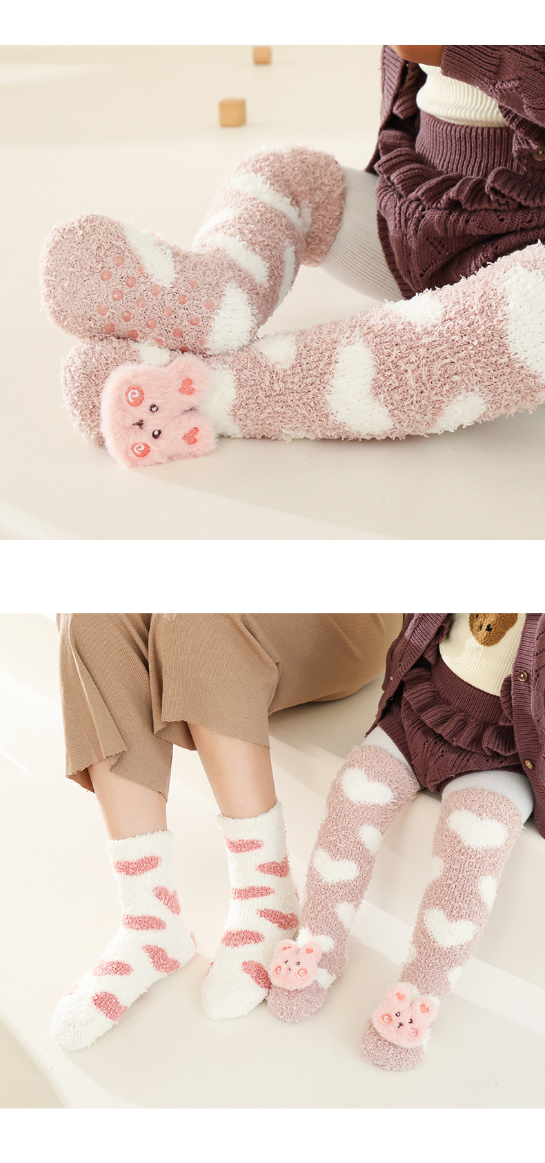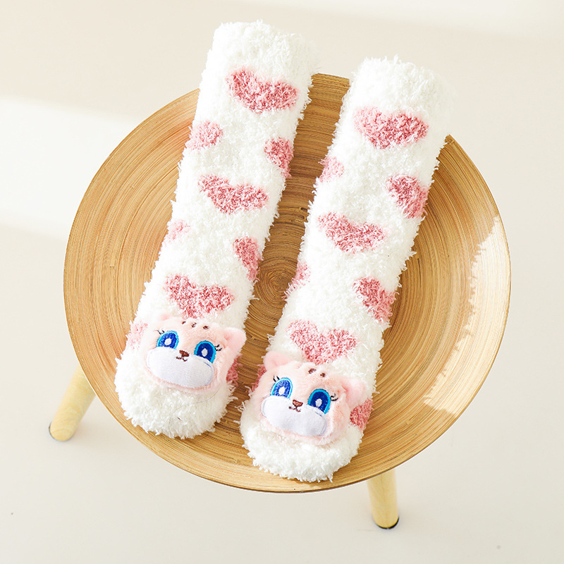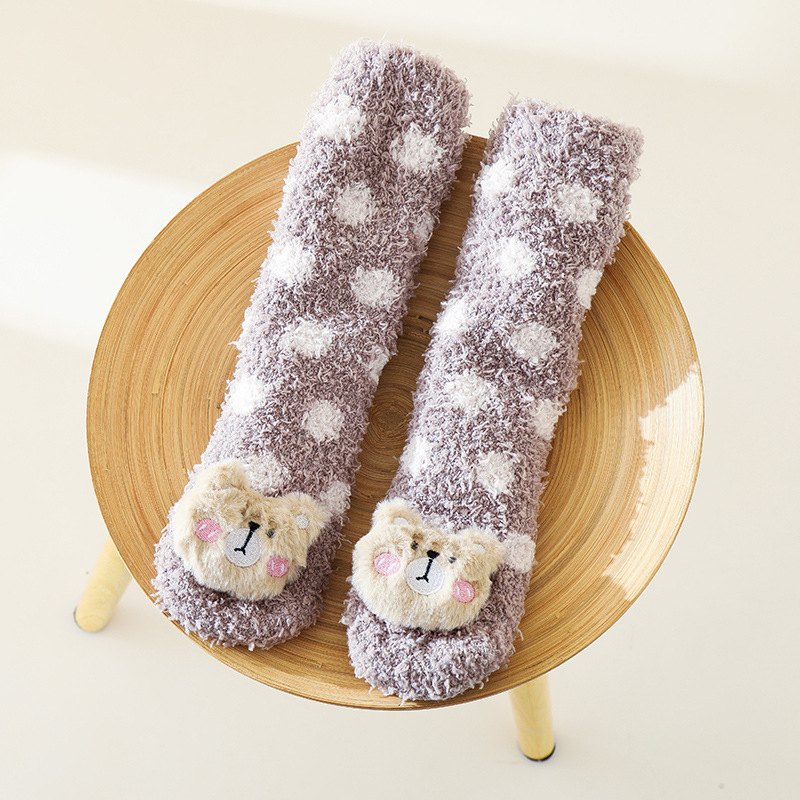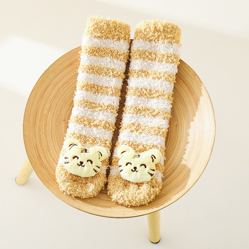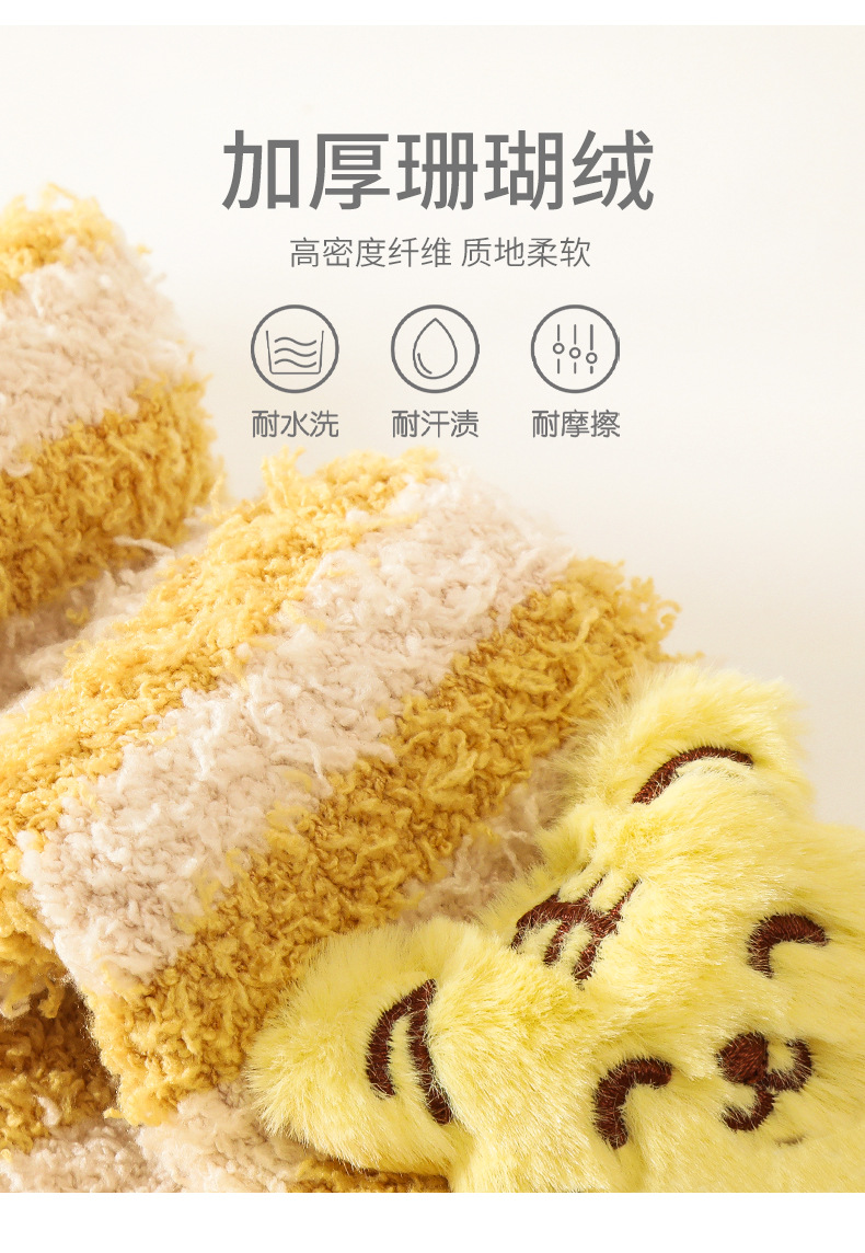 23 가을과 겨울 산호 양털 두꺼운 아기 긴 튜브 신생아 클래스 아기 미끄럼 방지 만화 기모 어린이 바닥 양말