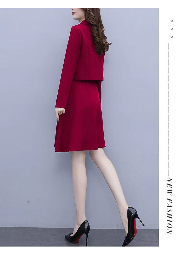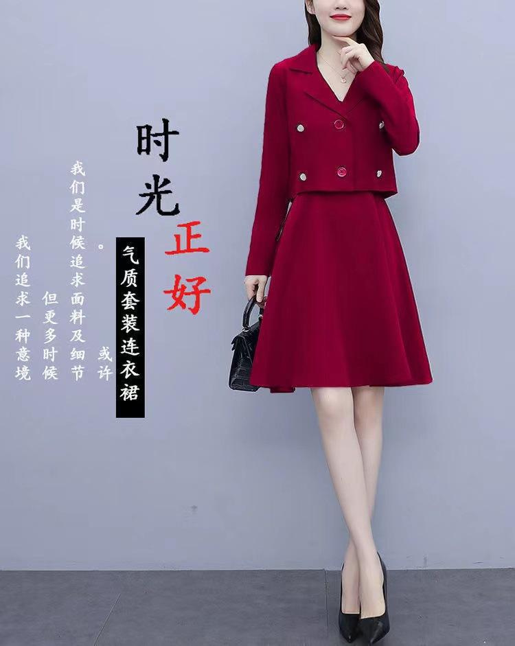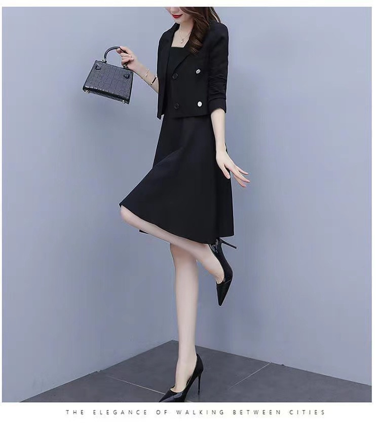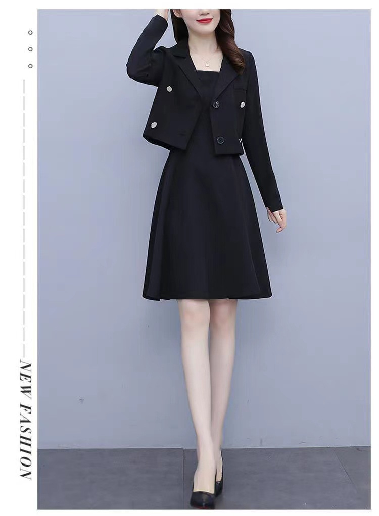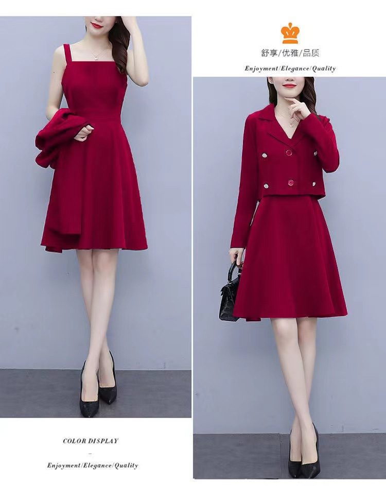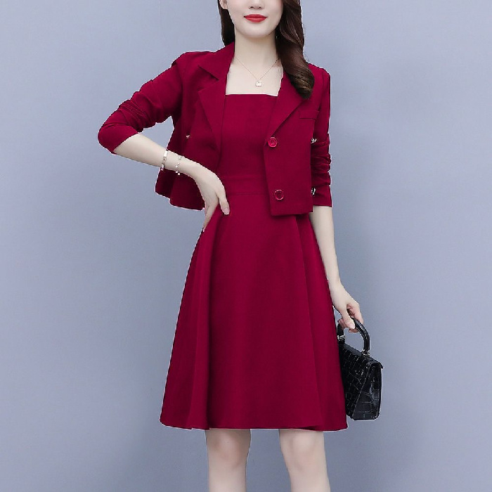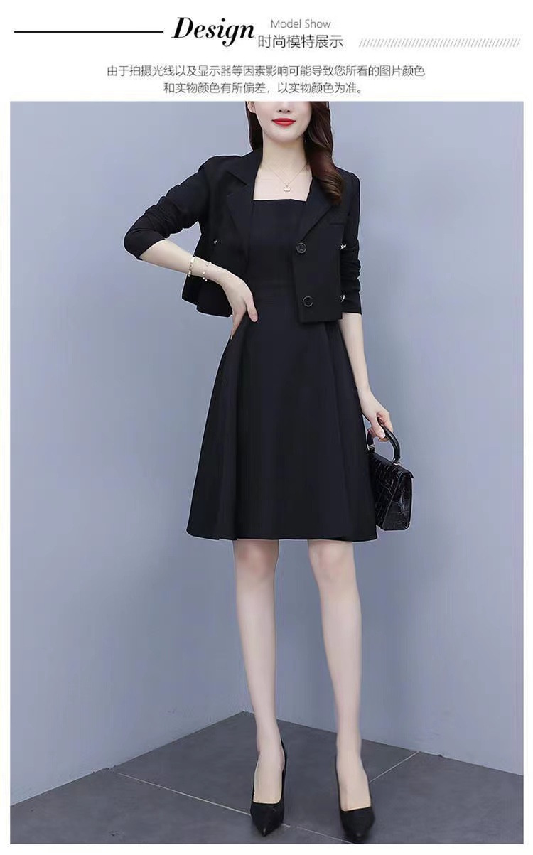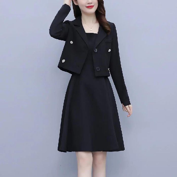 투피스 세트 여성의 봄과 가을 신상품 작은 세트 스커트 스트랩 투피스 세트 유행 우아한 플러스 사이즈 슬리밍 원피스 유행스토어 가기