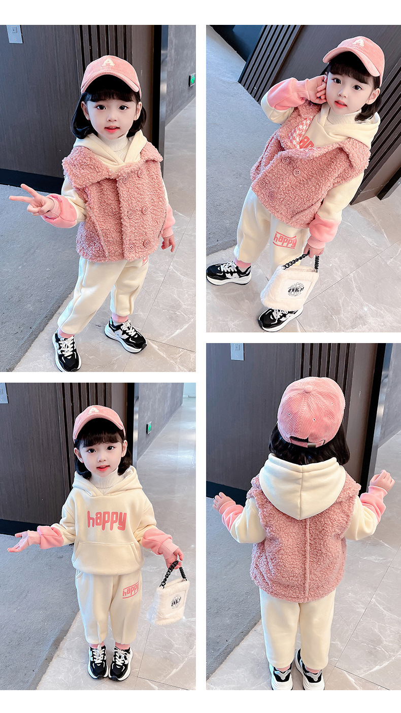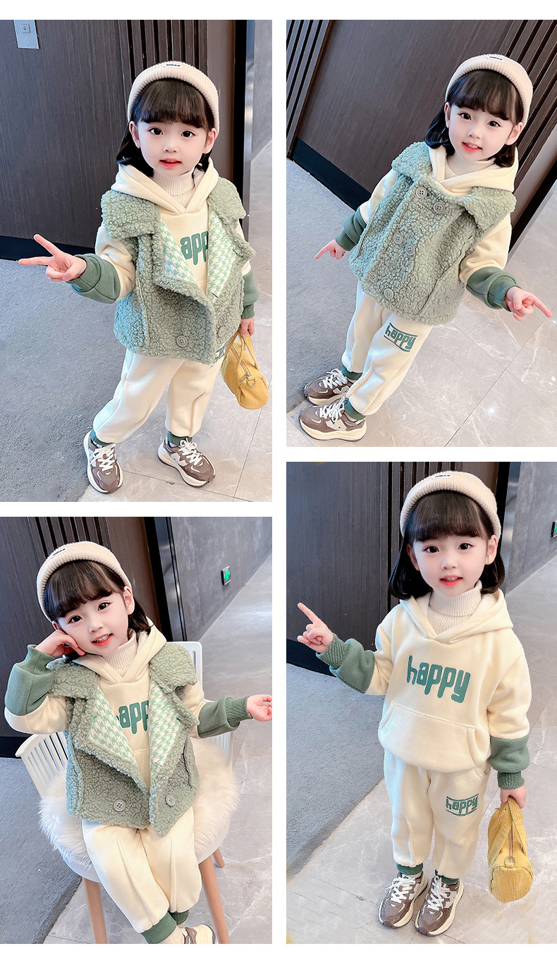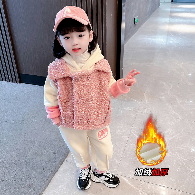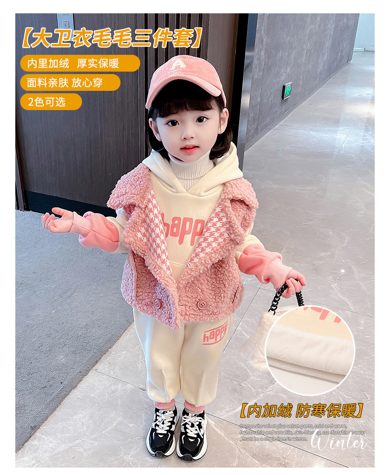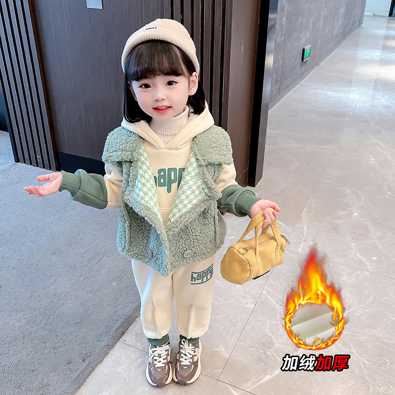 가을과 겨울 소녀를 위한 아기 소녀의 캐시미어 세트 새로운 한국식 유행 두꺼운 겨울 의류 3 종 유행 세트스토어 가기