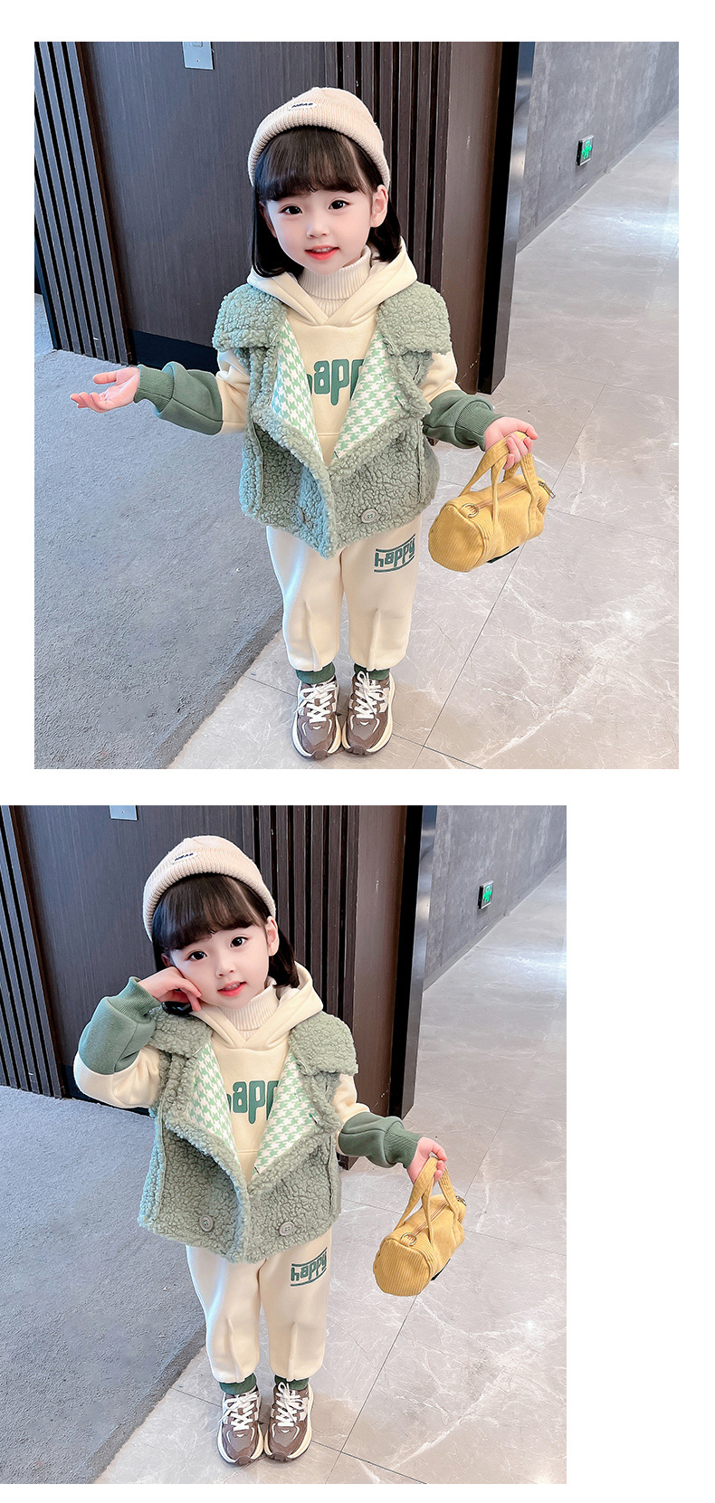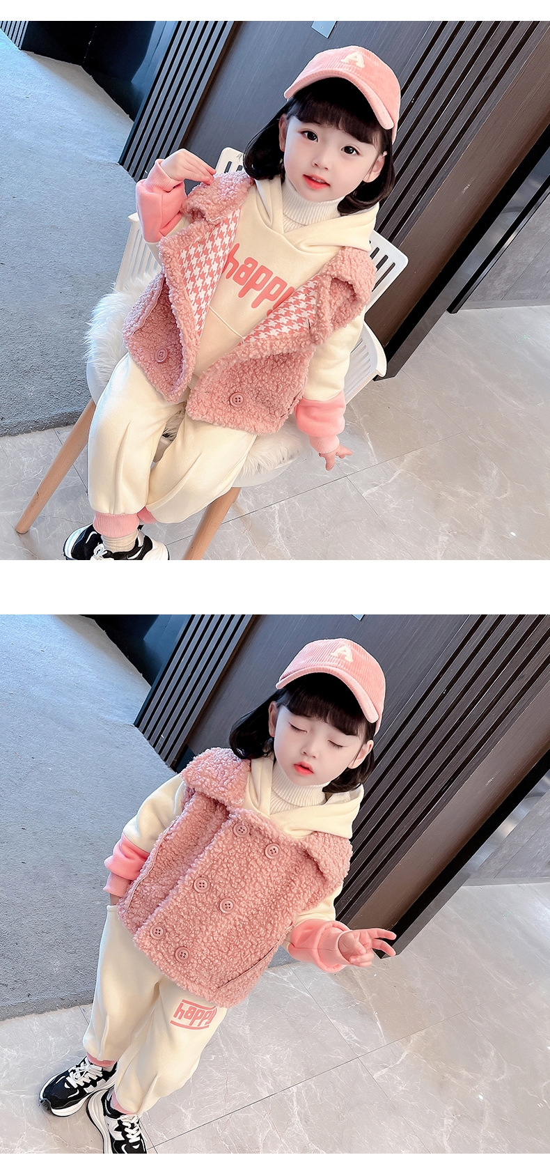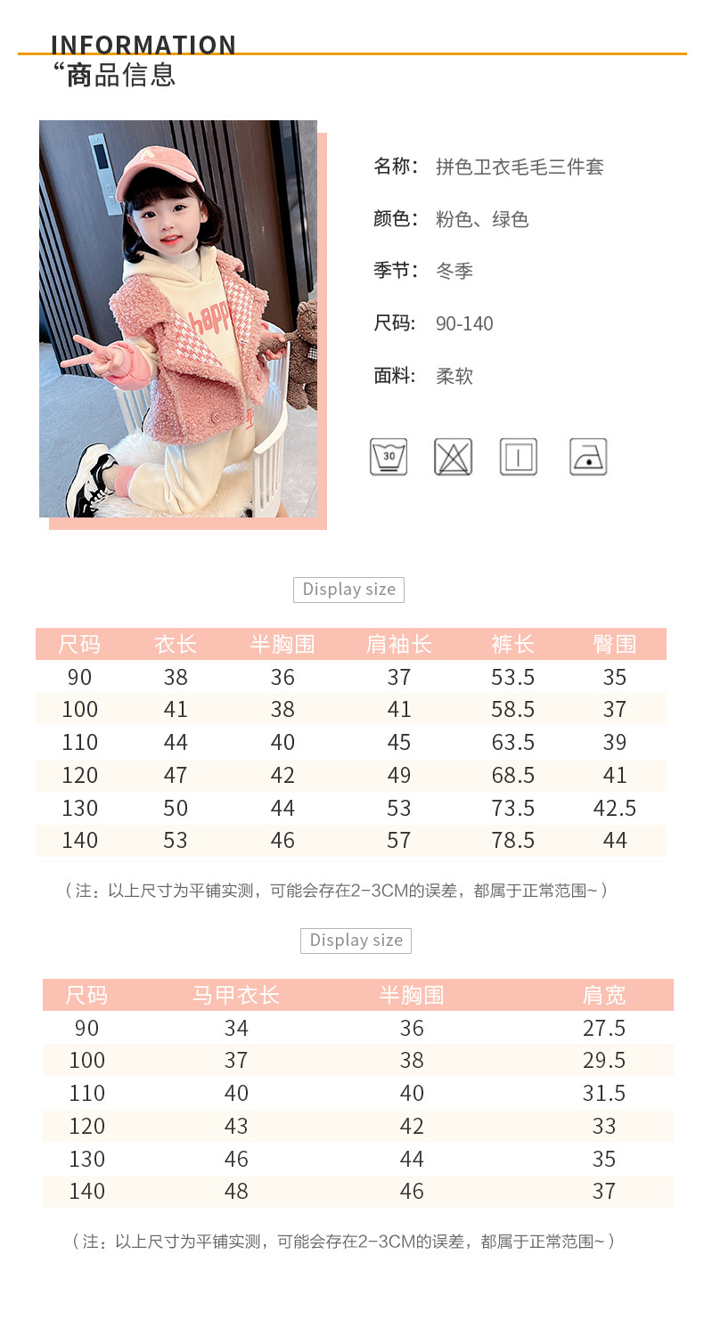 가을과 겨울 소녀를 위한 아기 소녀의 캐시미어 세트 새로운 한국식 유행 두꺼운 겨울 의류 3 종 유행 세트스토어 가기