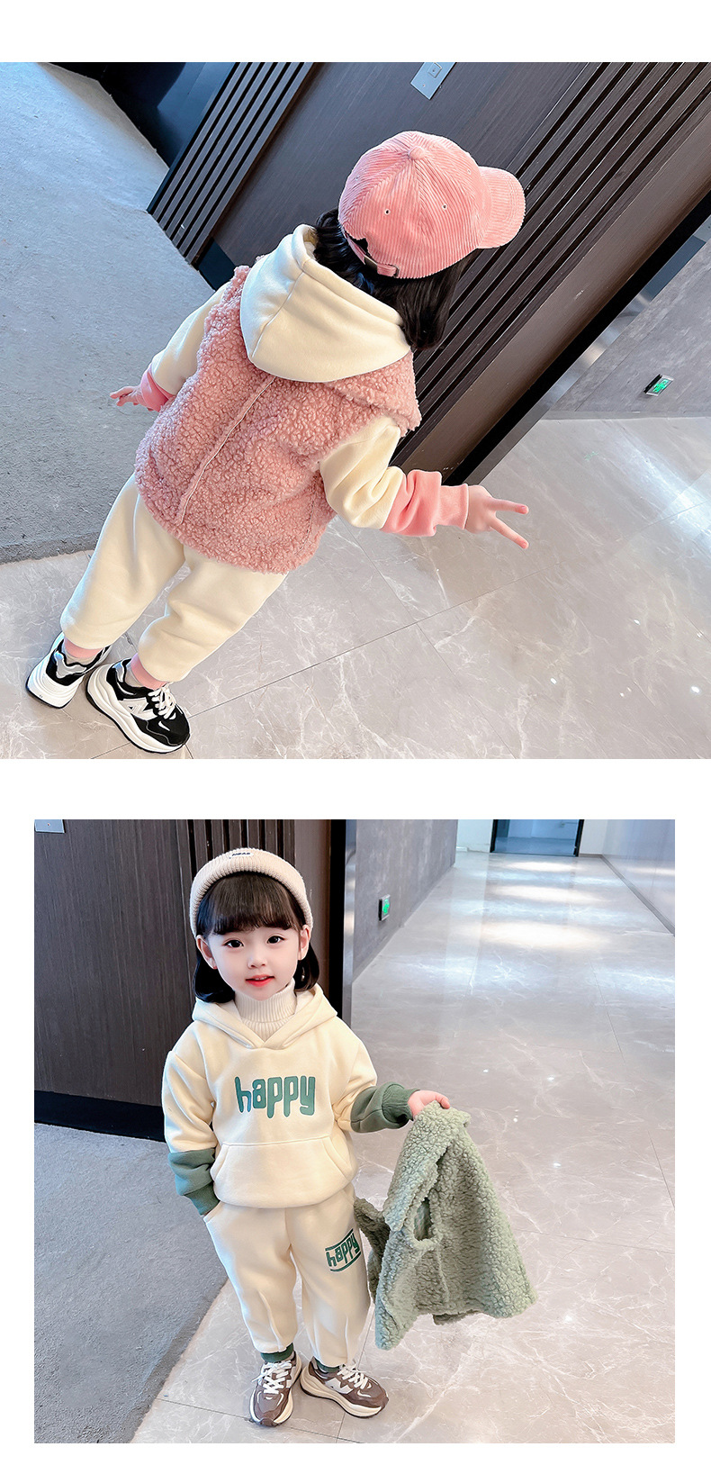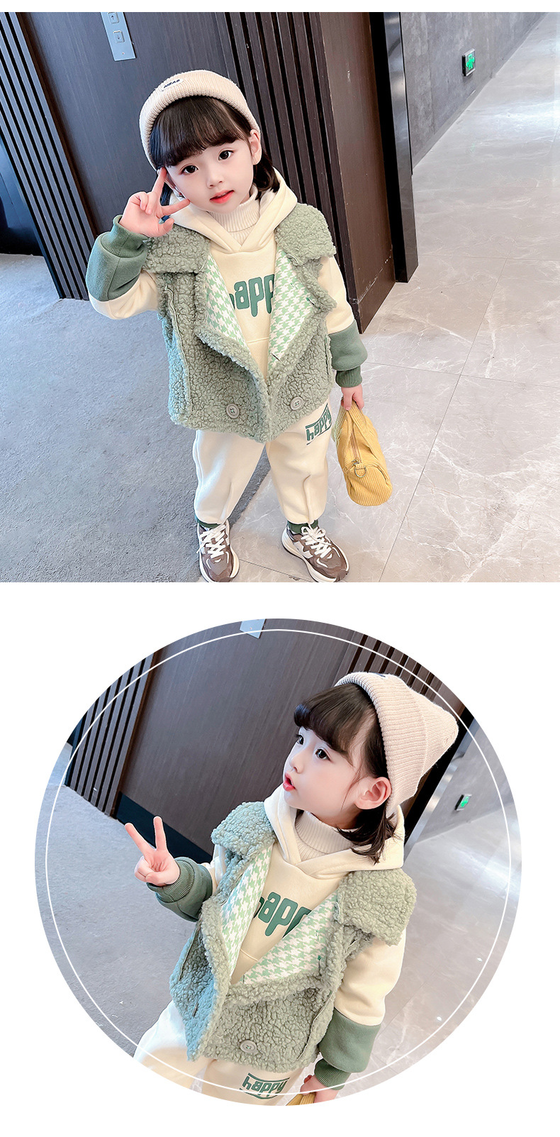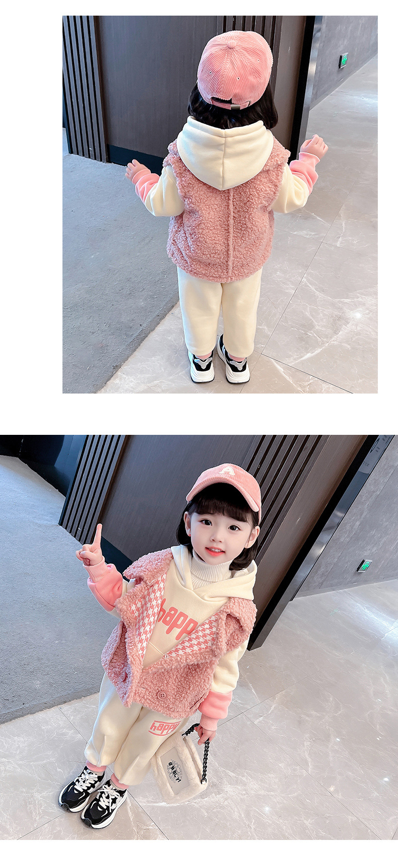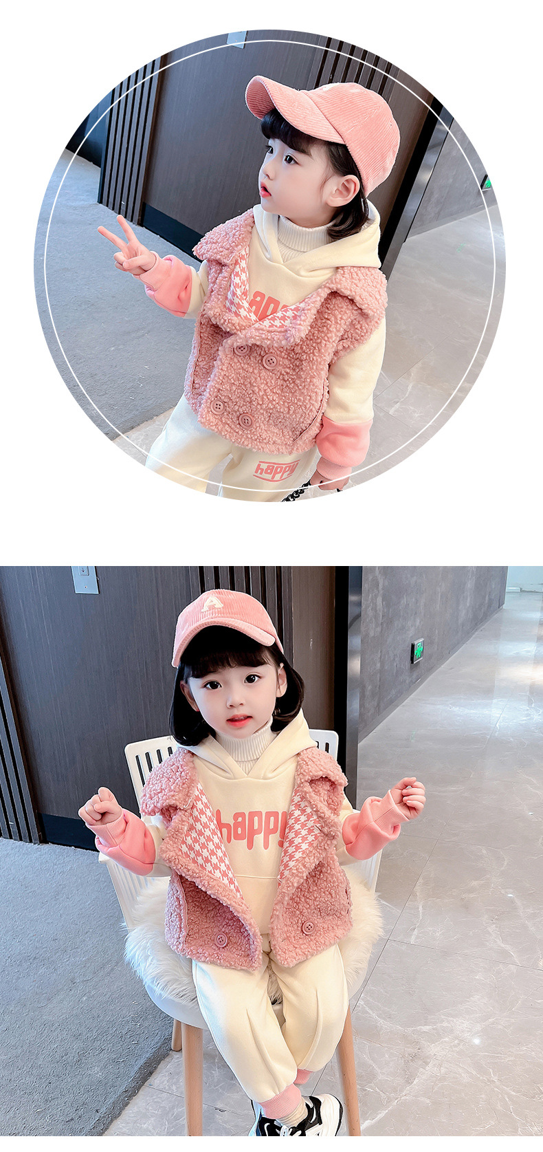 가을과 겨울 소녀를 위한 아기 소녀의 캐시미어 세트 새로운 한국식 유행 두꺼운 겨울 의류 3 종 유행 세트스토어 가기