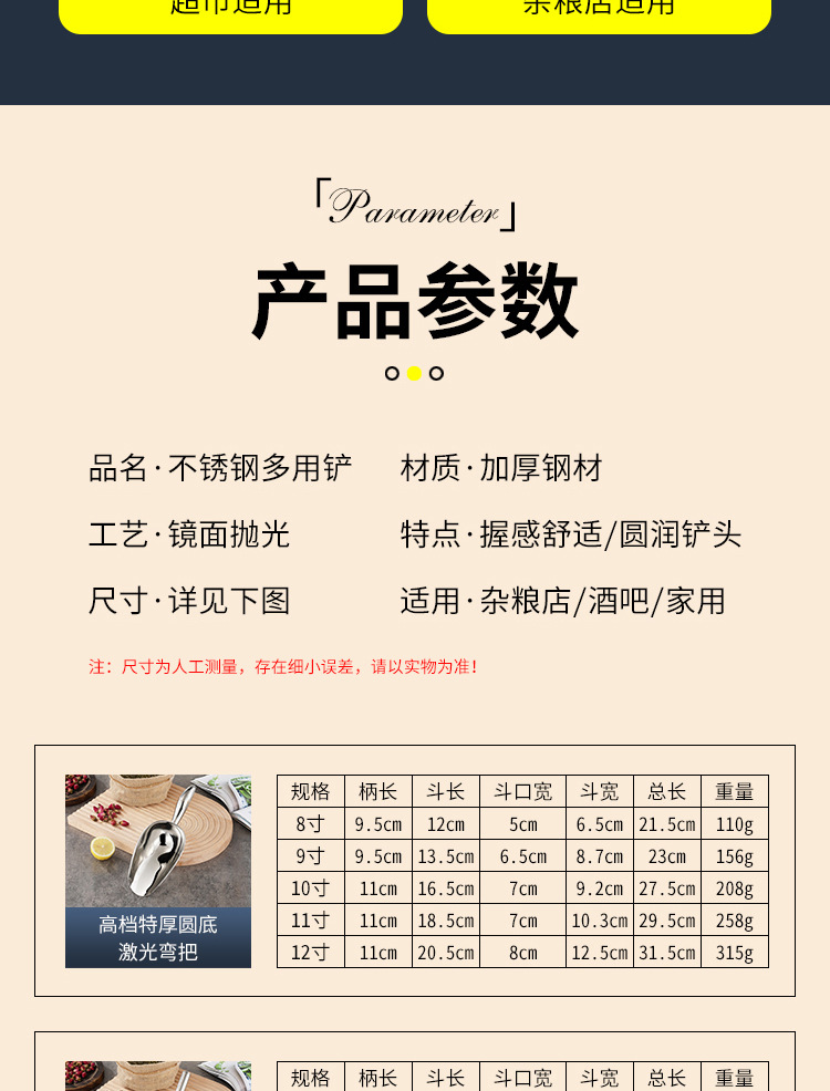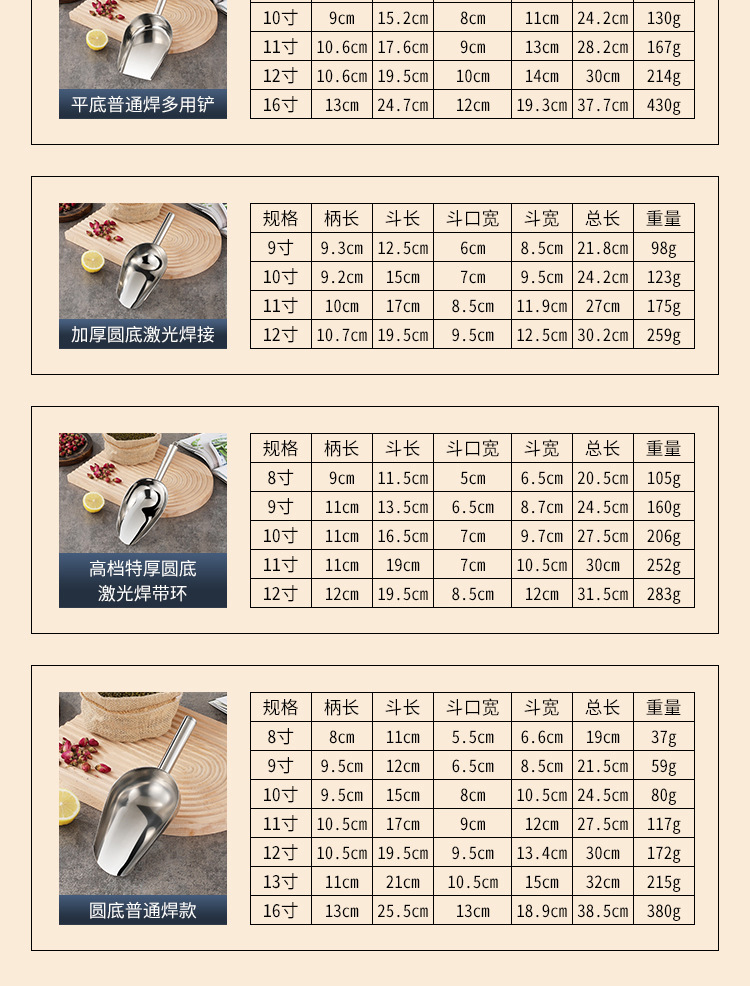 두꺼운 스테인리스 얼음삽, 둥근 바닥삽, 평평한 바닥삽, 쌀삽, 밀가루삽, 주방 다용도삽, 밀크티 가게 전용삽스토어 가기