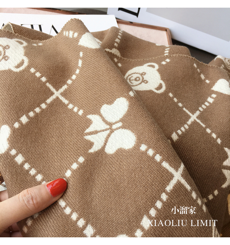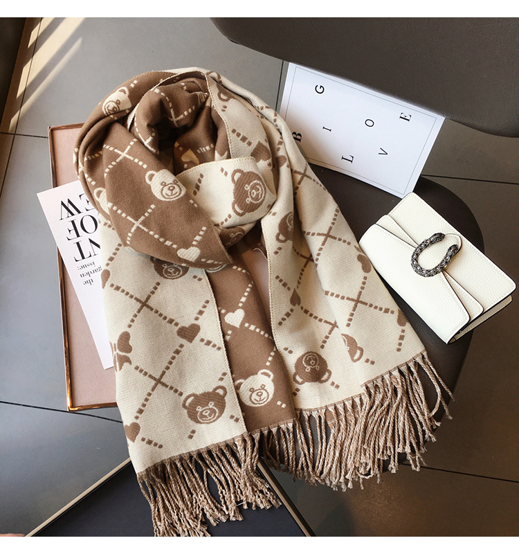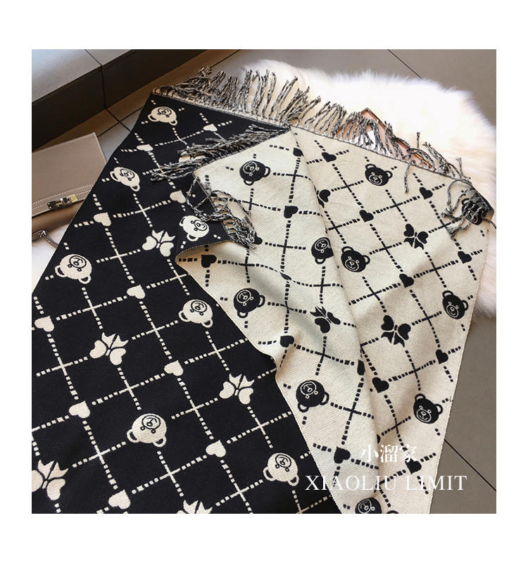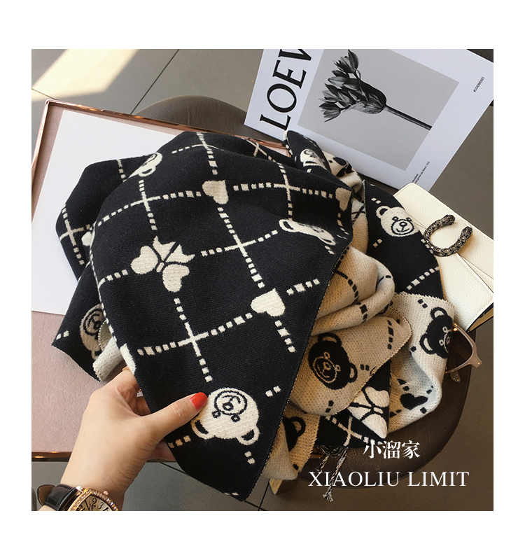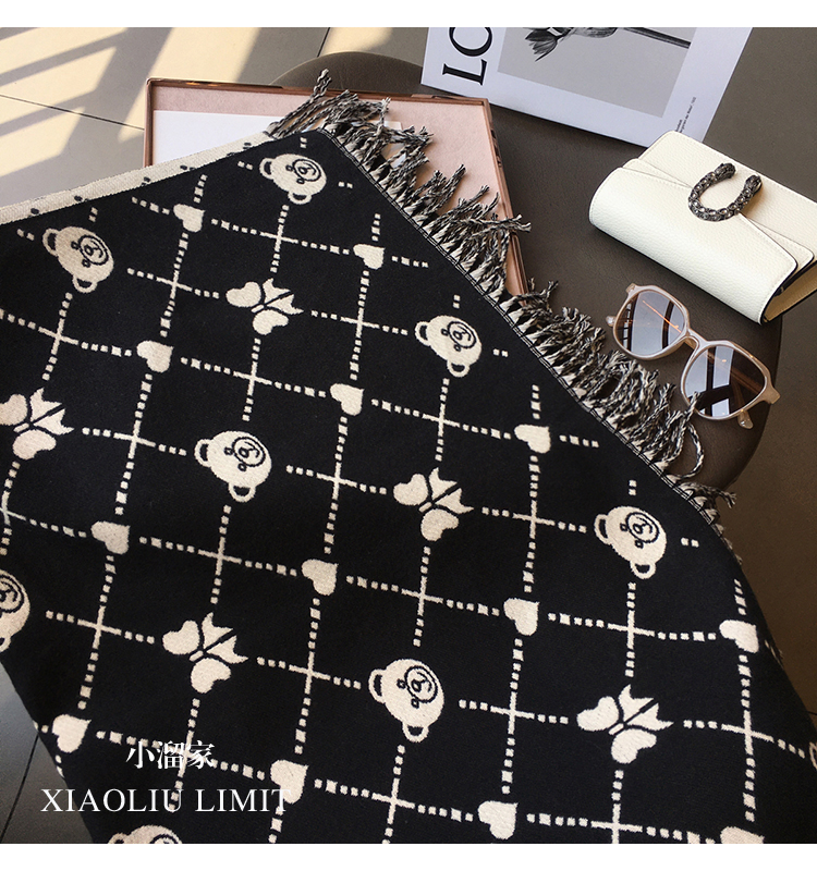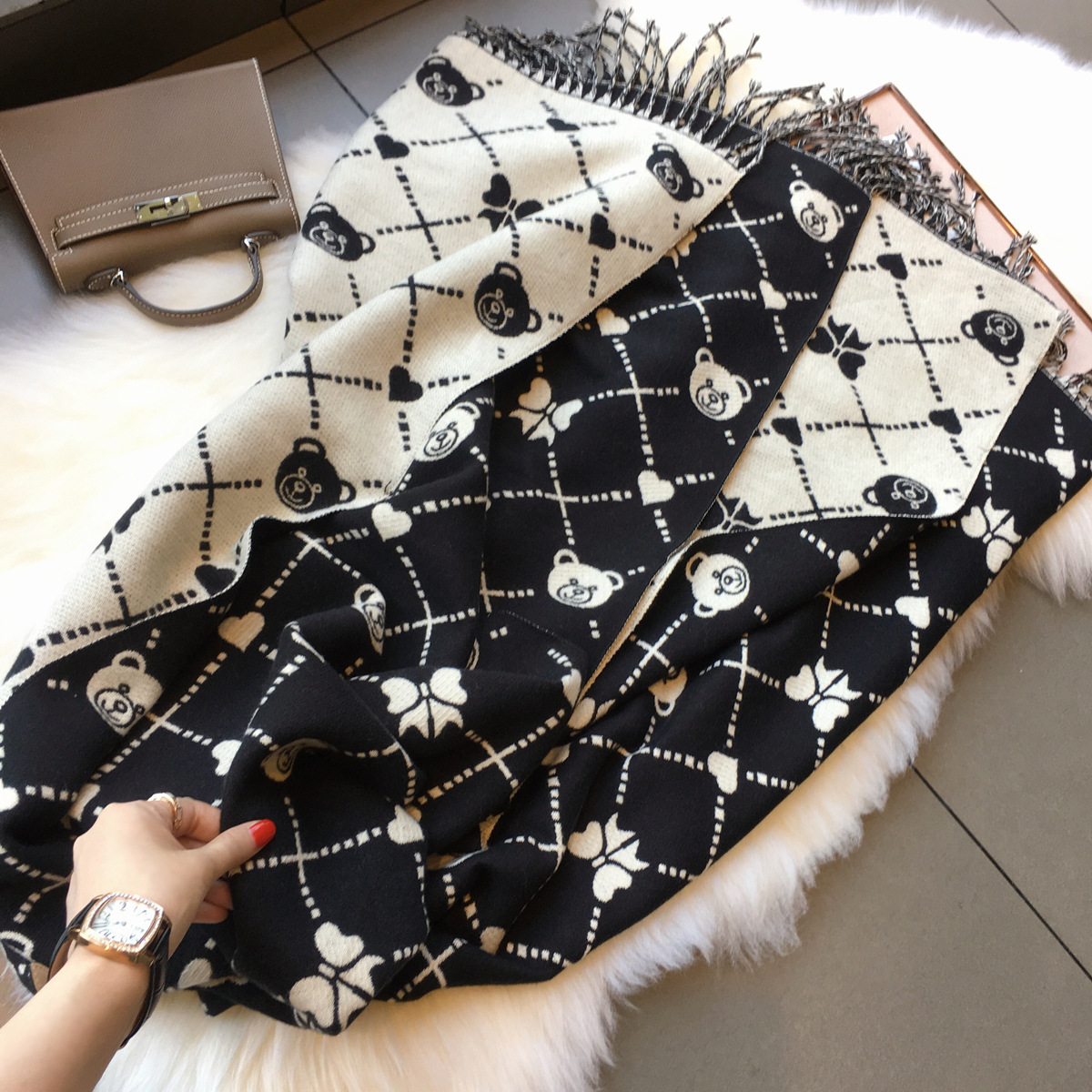 2022 겨울 두꺼운 활 곰 캐시미어 스카프 목도리 이중 목적 따뜻한 학생 스카프의 새로운 한국어 버전