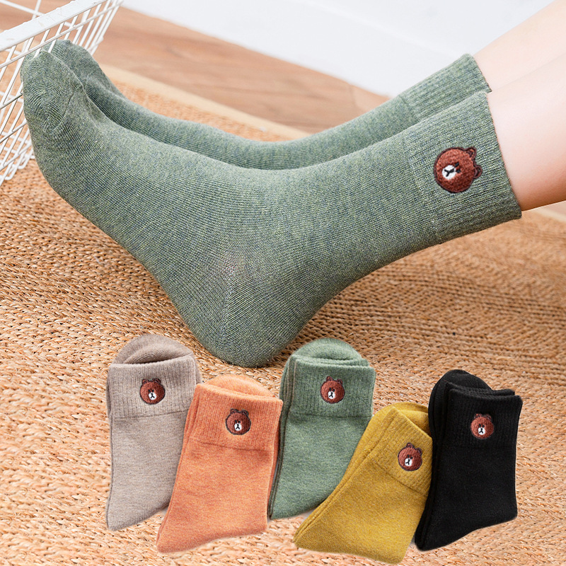 가을과 겨울 새로운 만화 양말 여자의 일본식 중간 길이 양말 색상 장식 사랑스러운 면 양말 스톨 양말 도매 여성 스타킹
