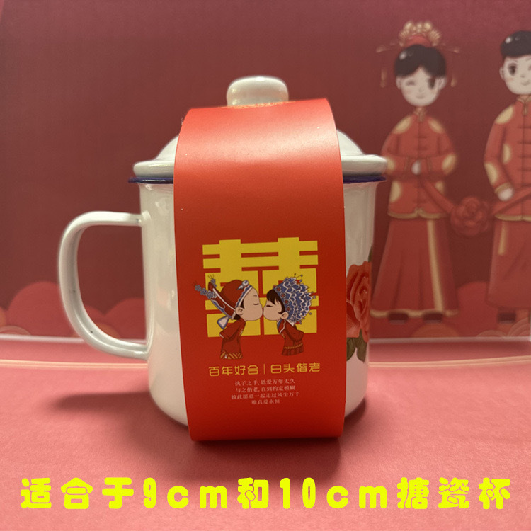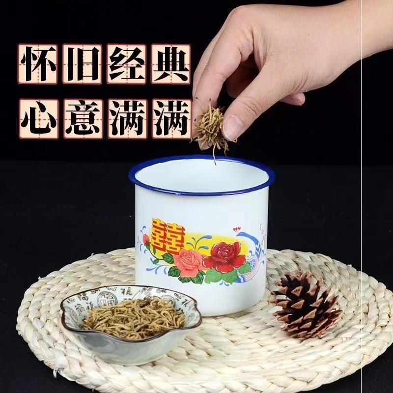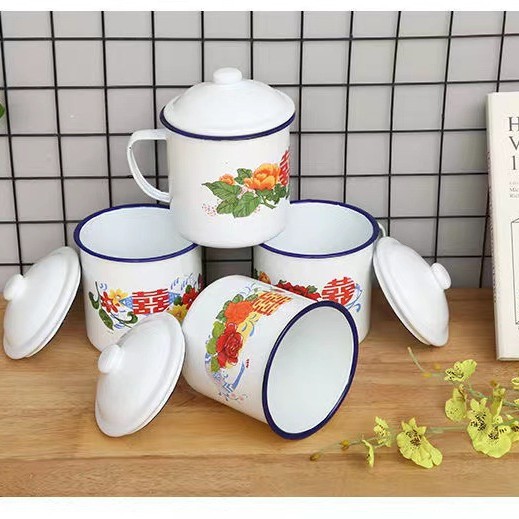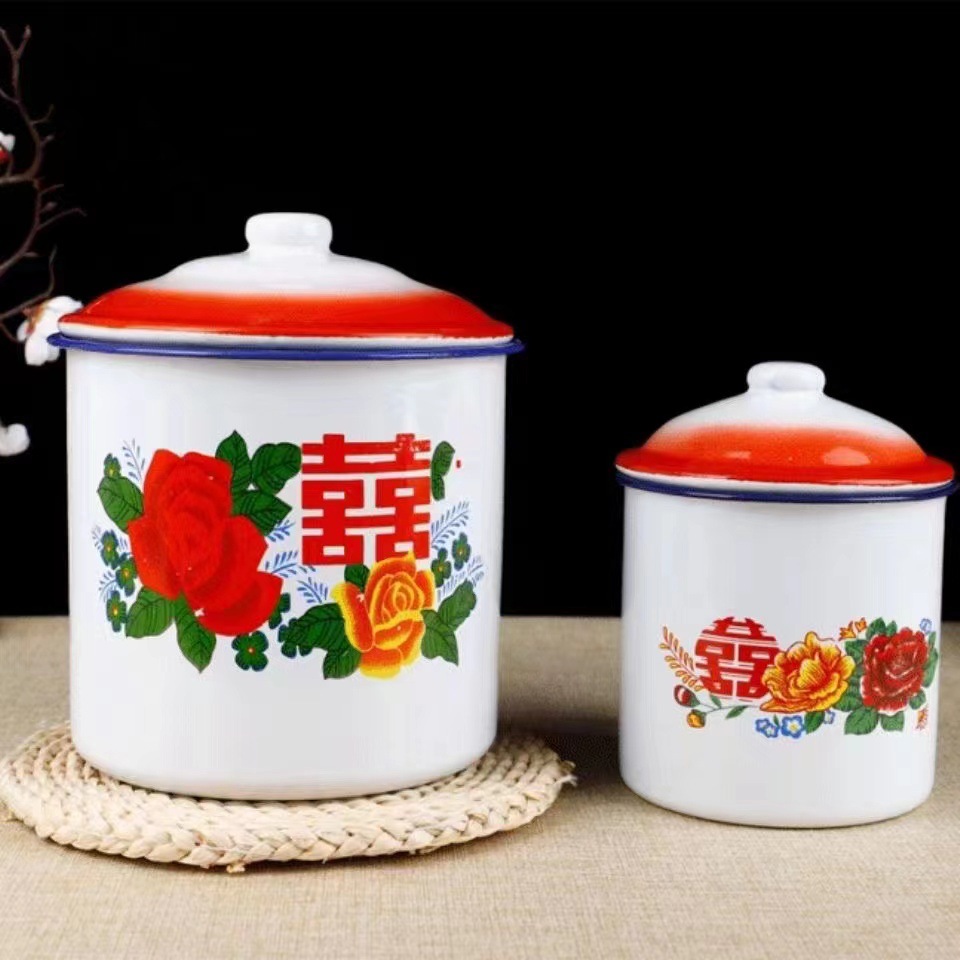 꽃 에나멜 컵 레드 더블 행복 차 탱크 클래식 레드 향수 머그 레드 뚜껑 축제 에나멜 차 탱크