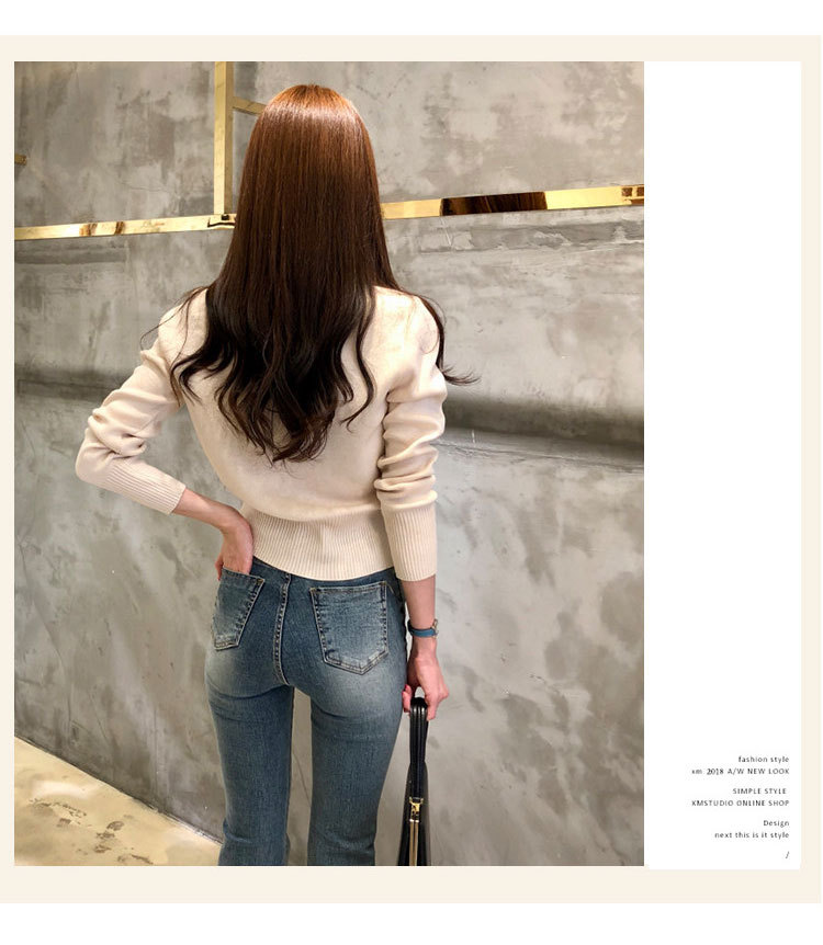 스키니 니트 카디건 여성 짧은 2025 슬림 한국 봄 가을 새로운 스웨터 레트로 긴 소매 작은 겉옷 탑스토어 가기
