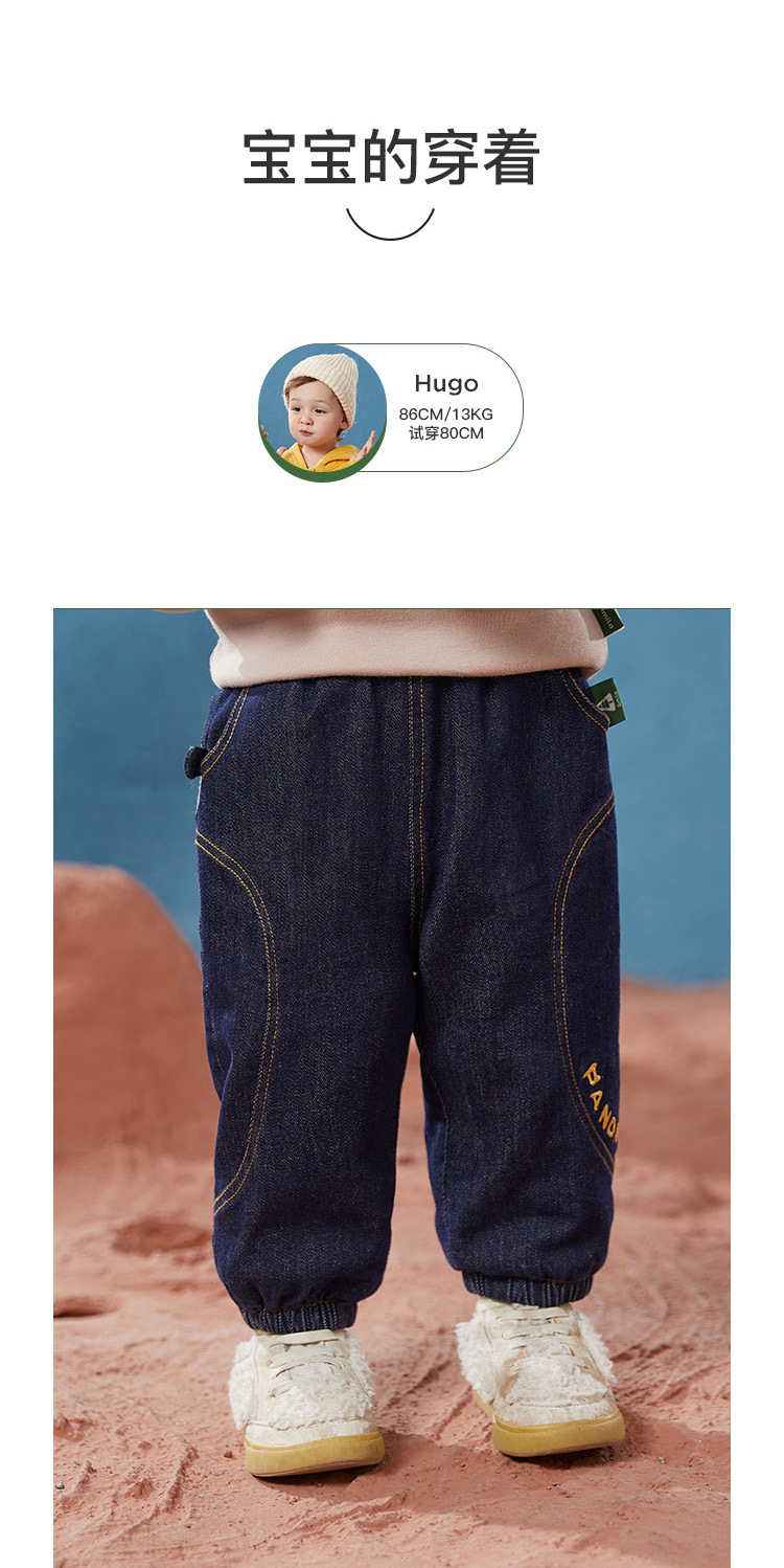 Amila 아동복 2024 겨울 새 소년 솔리드 컬러 문자 수 놓은 방풍 따뜻한 플러스 벨벳 청바지 Dropshipping스토어 가기