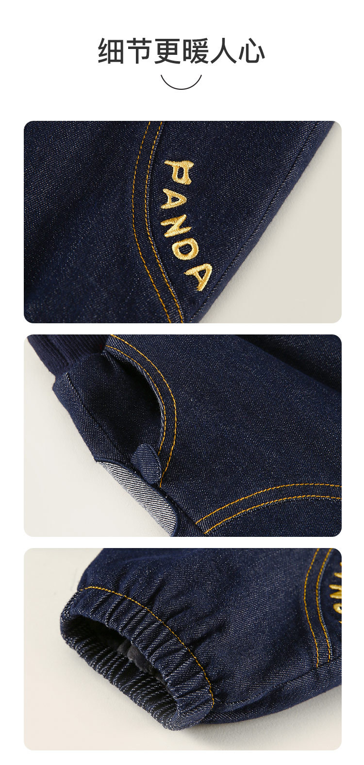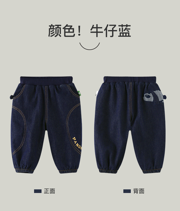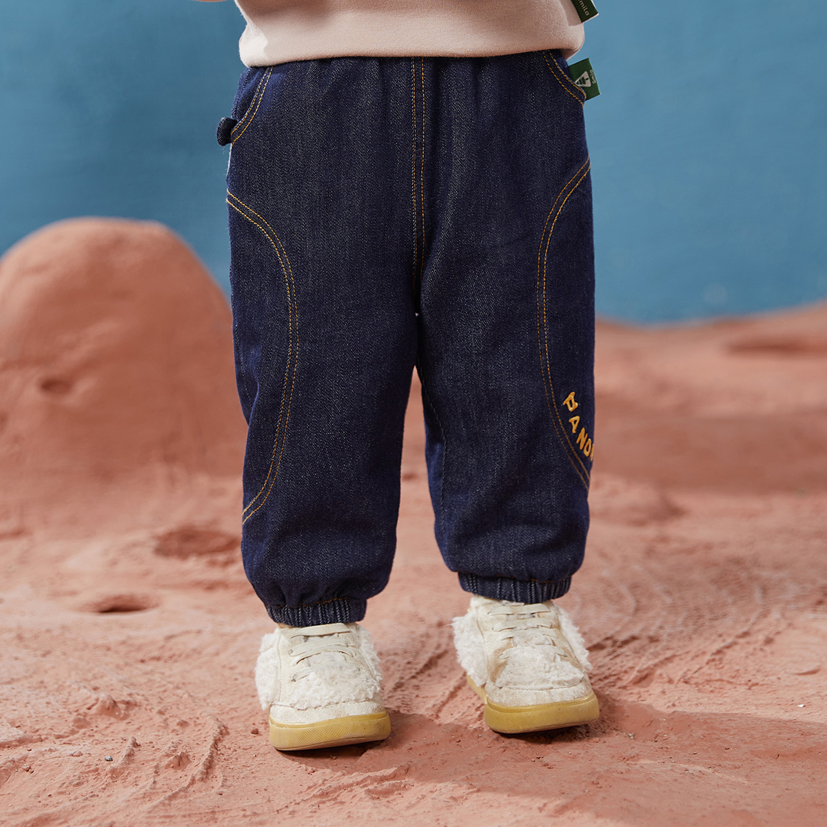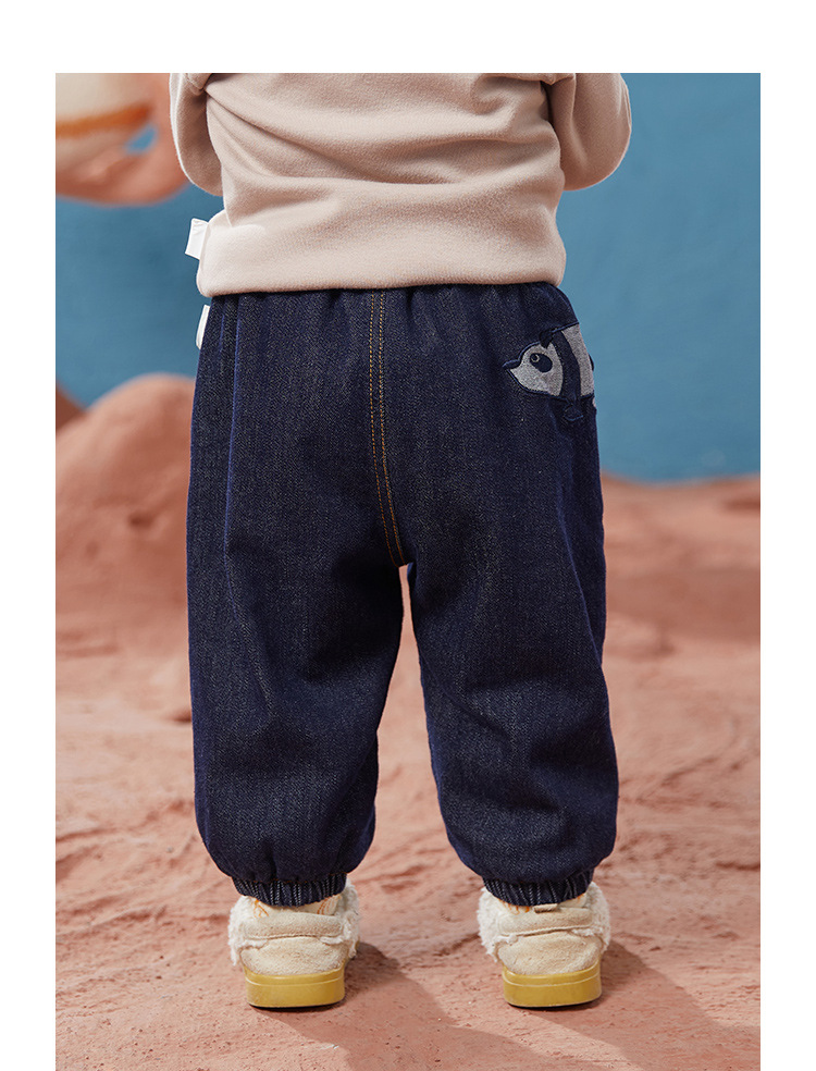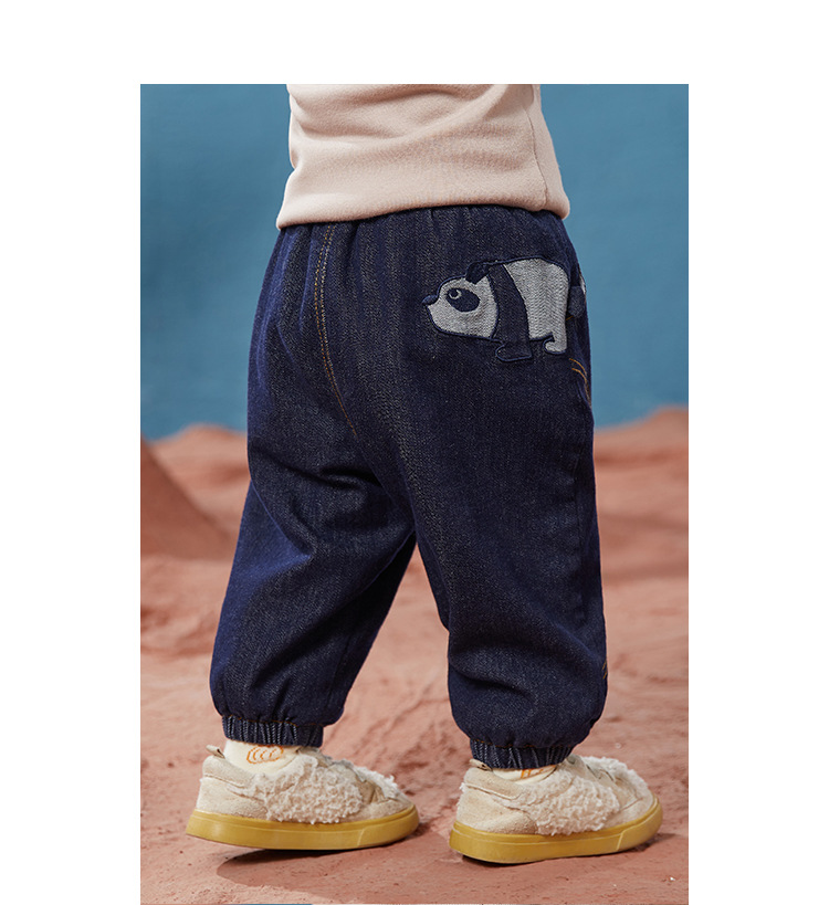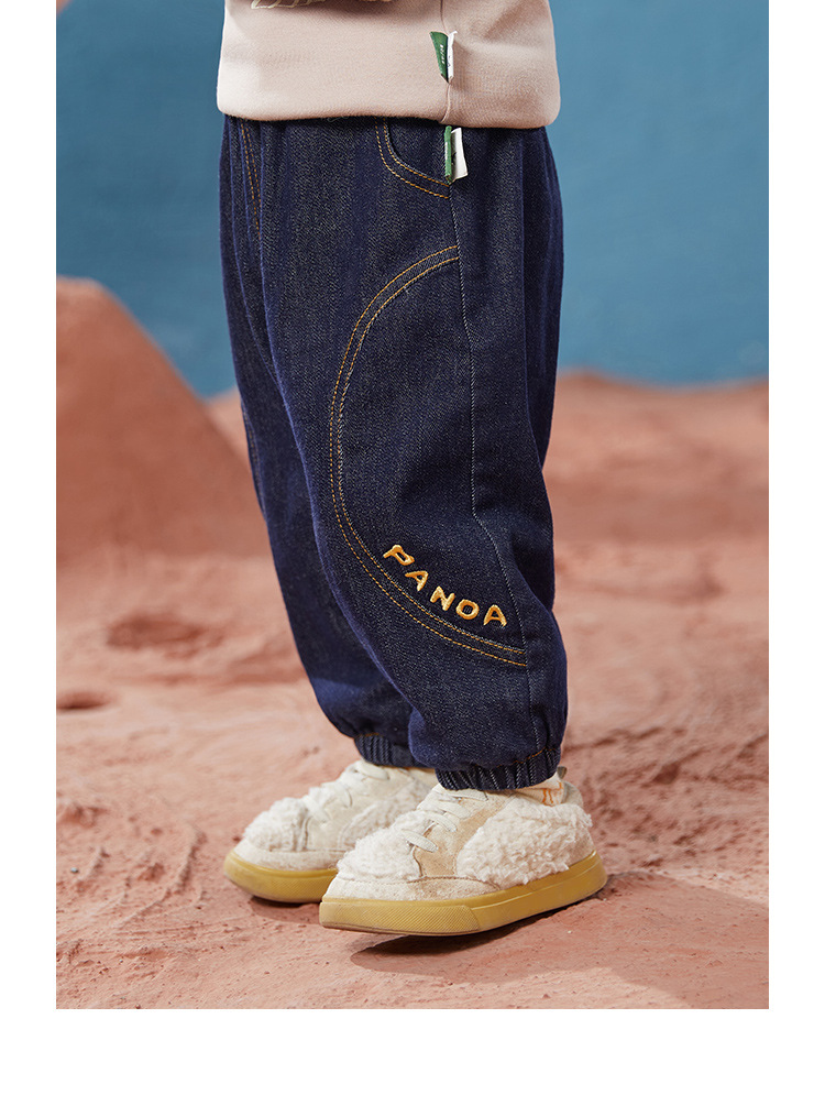 Amila 아동복 2024 겨울 새 소년 솔리드 컬러 문자 수 놓은 방풍 따뜻한 플러스 벨벳 청바지 Dropshipping