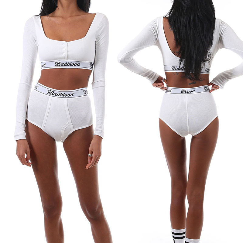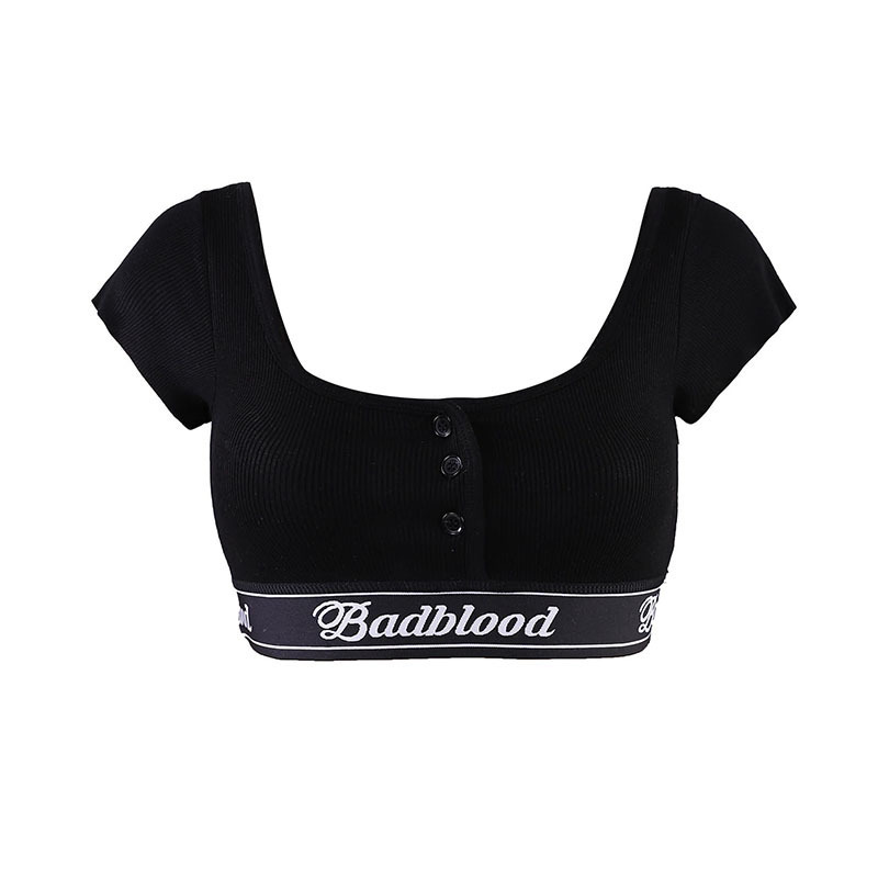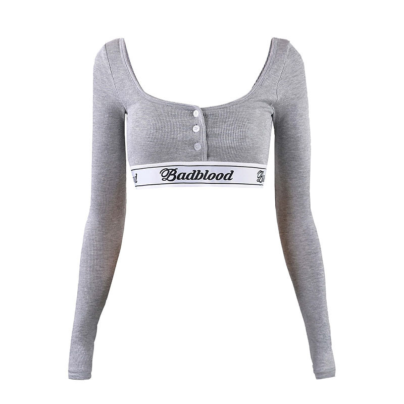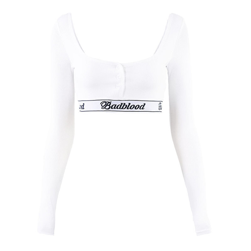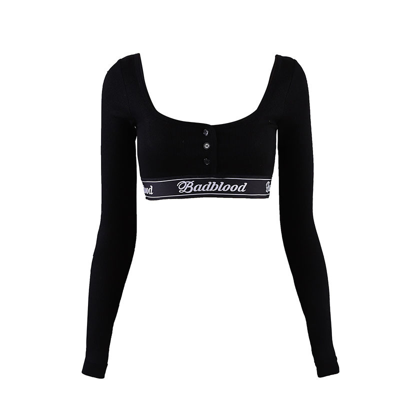 한국어 badblood bcac 시리즈 긴팔 티셔츠 여성 짧은 핫 소녀 스퀘어 넥 스트레치 틈새 댄스 탑 트렌디
