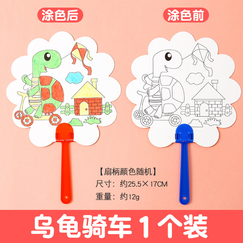 DIY 팬 빈 손으로 그린 팬 스톨 장난감 재료 그림 원형 팬 유치원 오프닝 선물 그림 여름 방학 수업