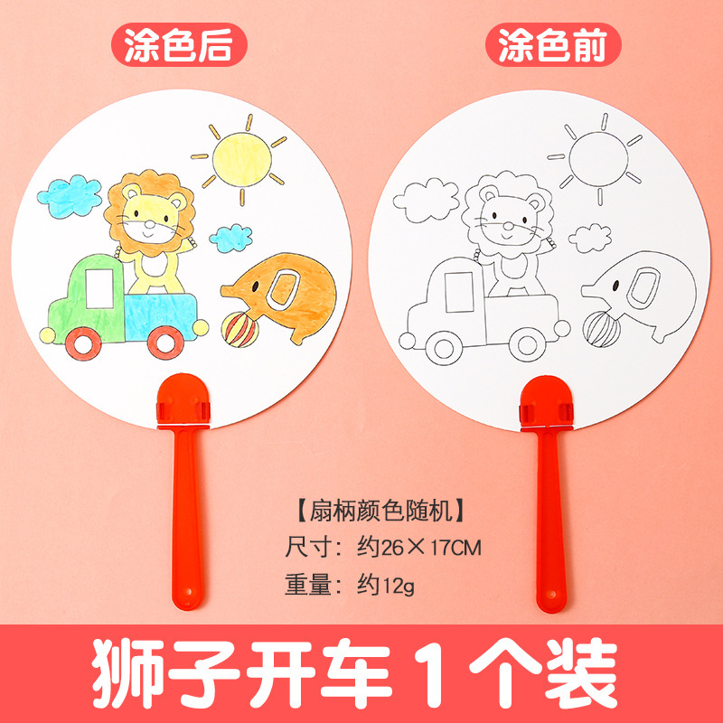 DIY 팬 빈 손으로 그린 팬 스톨 장난감 재료 그림 원형 팬 유치원 오프닝 선물 그림 여름 방학 수업스토어 가기