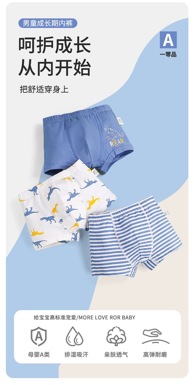 남아용 순면 사각팬티, 중대형 아동용 A급 사각팬티, 엉덩이를 조이지 않는 아동용 여름/가을 반바지스토어 가기