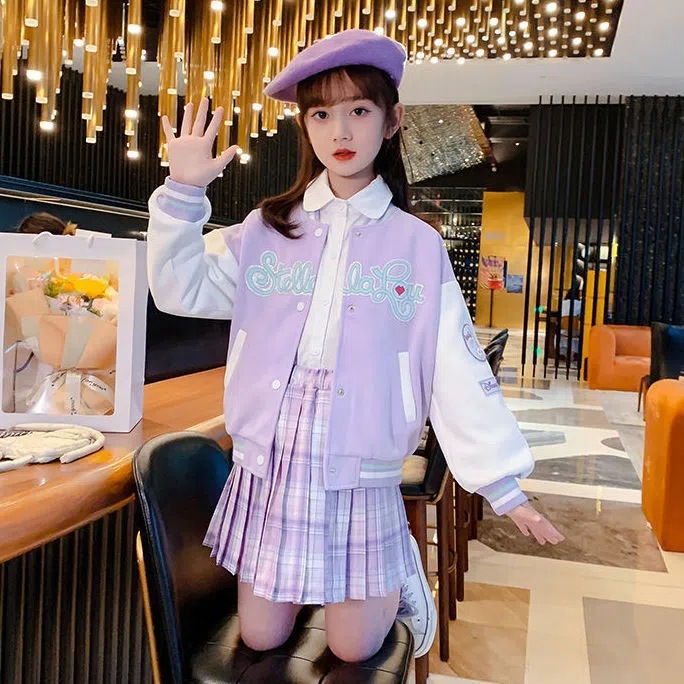 여자 야구 세트 스타 Dailou 코트 봄과 가을 새로운 캐주얼 스포츠 가디건 어린이 서양 스타일 한국 재킷 코트스토어 가기