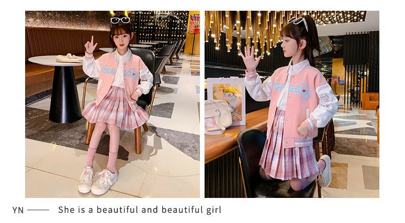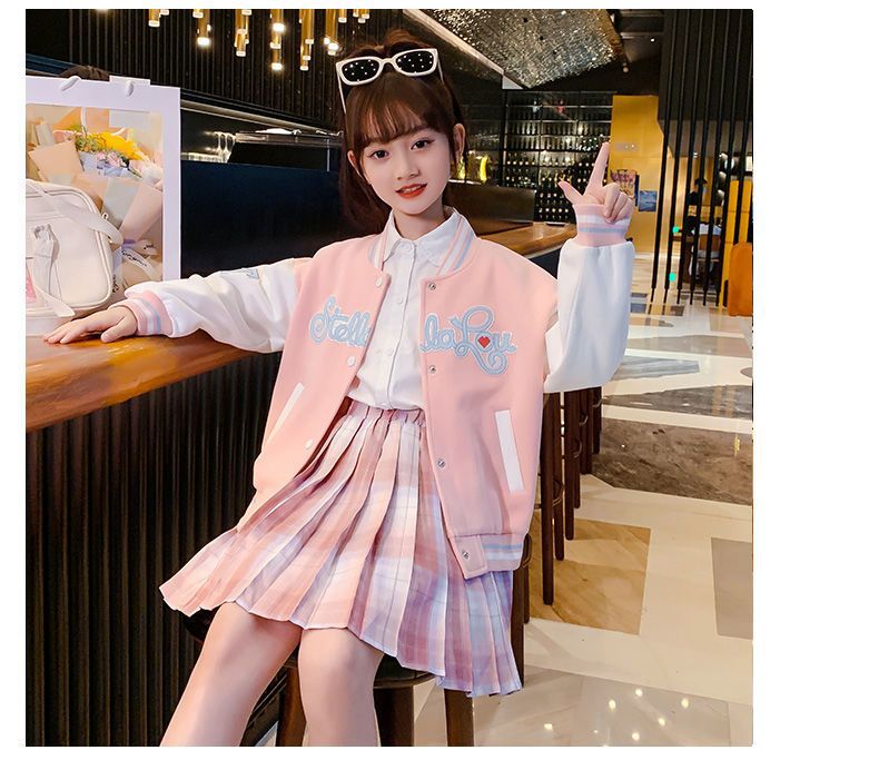 여자 야구 세트 스타 Dailou 코트 봄과 가을 새로운 캐주얼 스포츠 가디건 어린이 서양 스타일 한국 재킷 코트