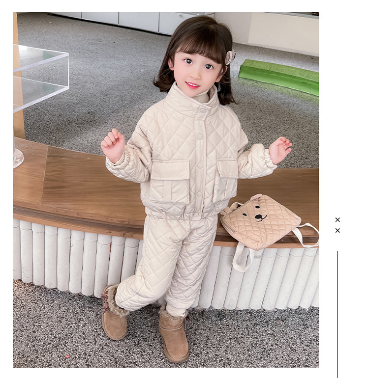 여자 면화 패딩 의류 면화 패딩 바지 세트 어린이 2022 겨울 따뜻한면 패딩 옷 투피스 아기 방한 겨울 옷스토어 가기