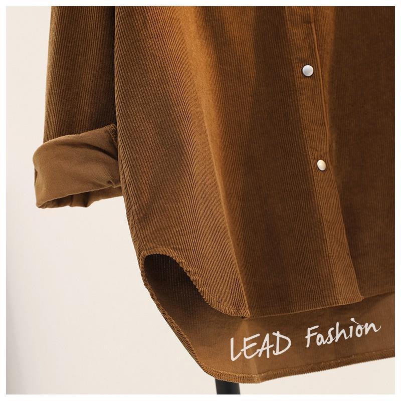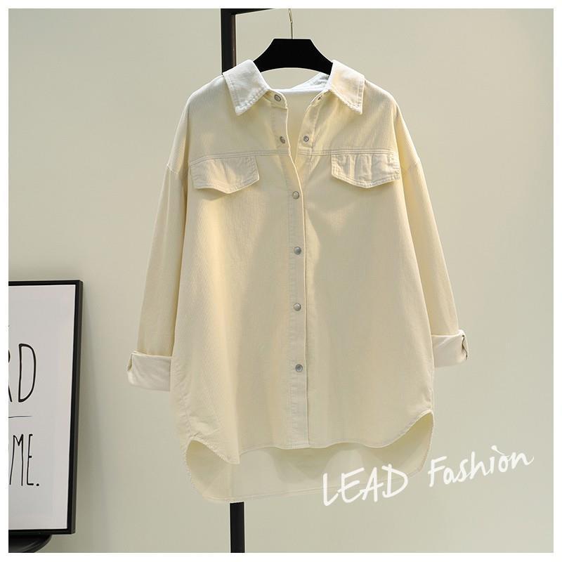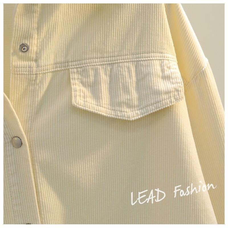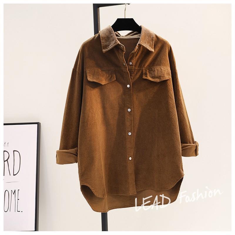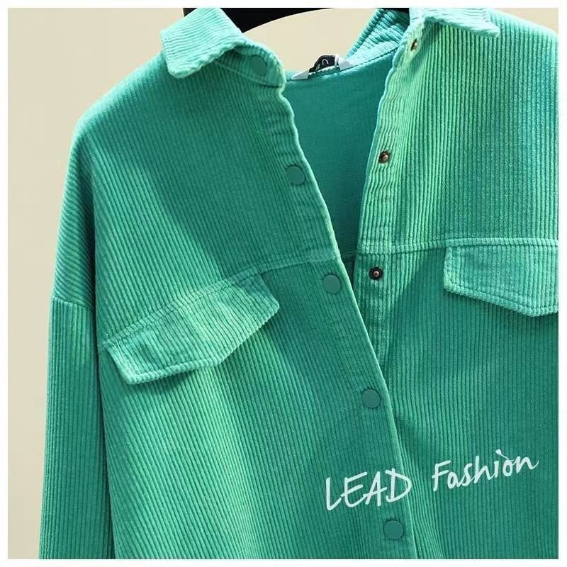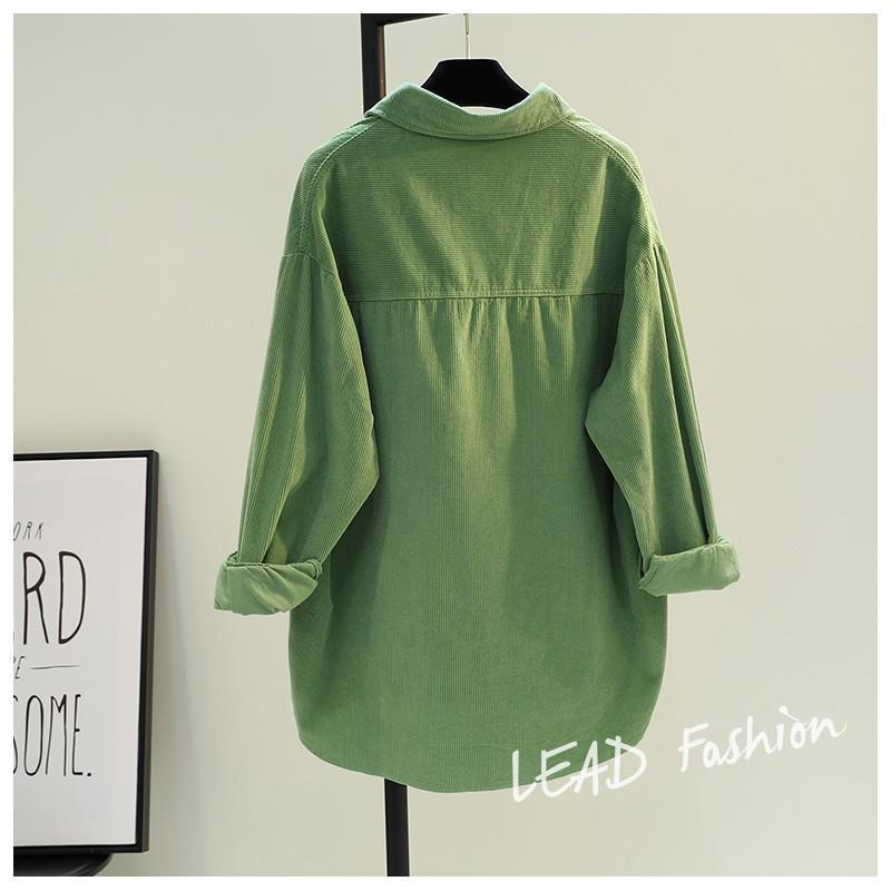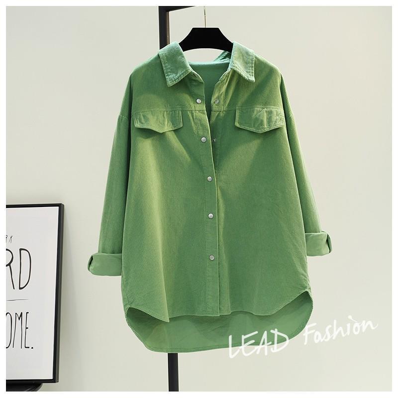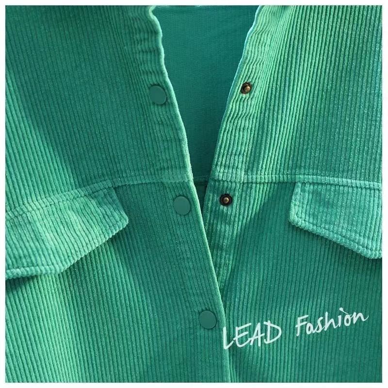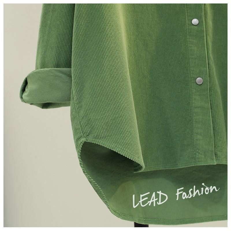 아보카도 그린 롱 코듀로이 셔츠 여성 2 023 봄 새로운 두꺼운 더블 포켓 셔츠 코트 카디건스토어 가기