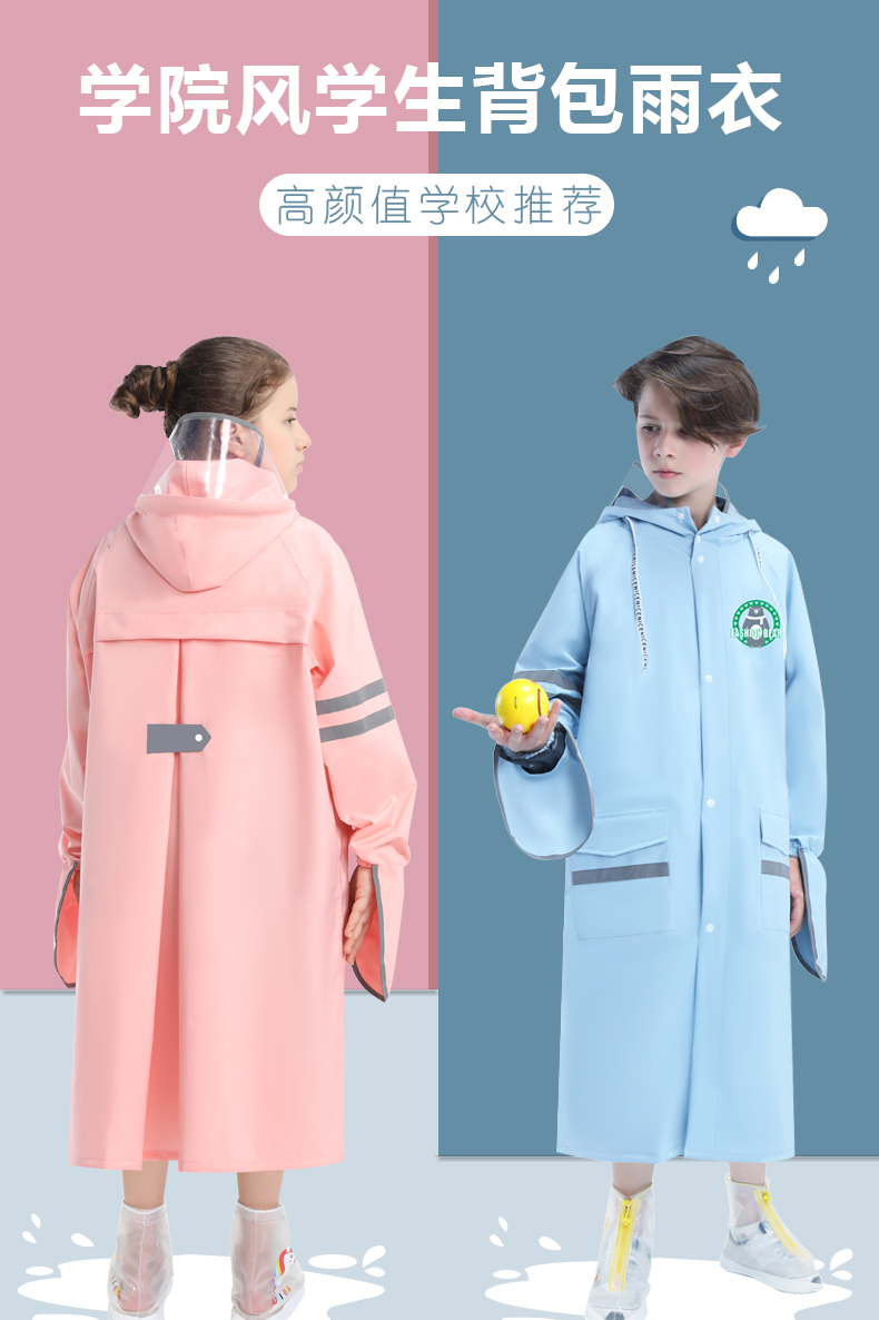 2023 초등학생을위한 소녀와 소년을위한 새로운 어린이 비옷 중 및 큰 어린이를위한 책가방이있는 교복 전신 판초스토어 가기