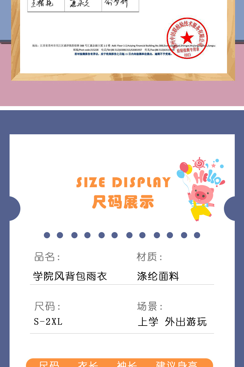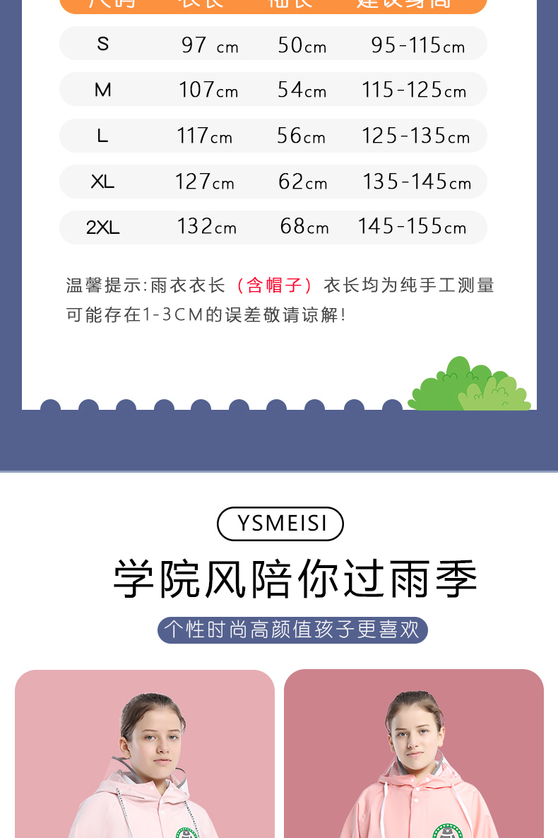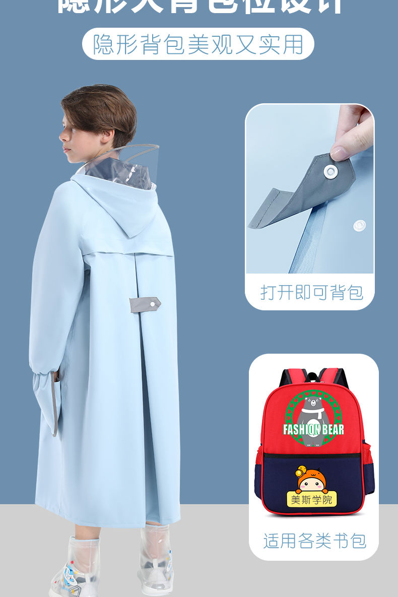 2023 초등학생을위한 소녀와 소년을위한 새로운 어린이 비옷 중 및 큰 어린이를위한 책가방이있는 교복 전신 판초