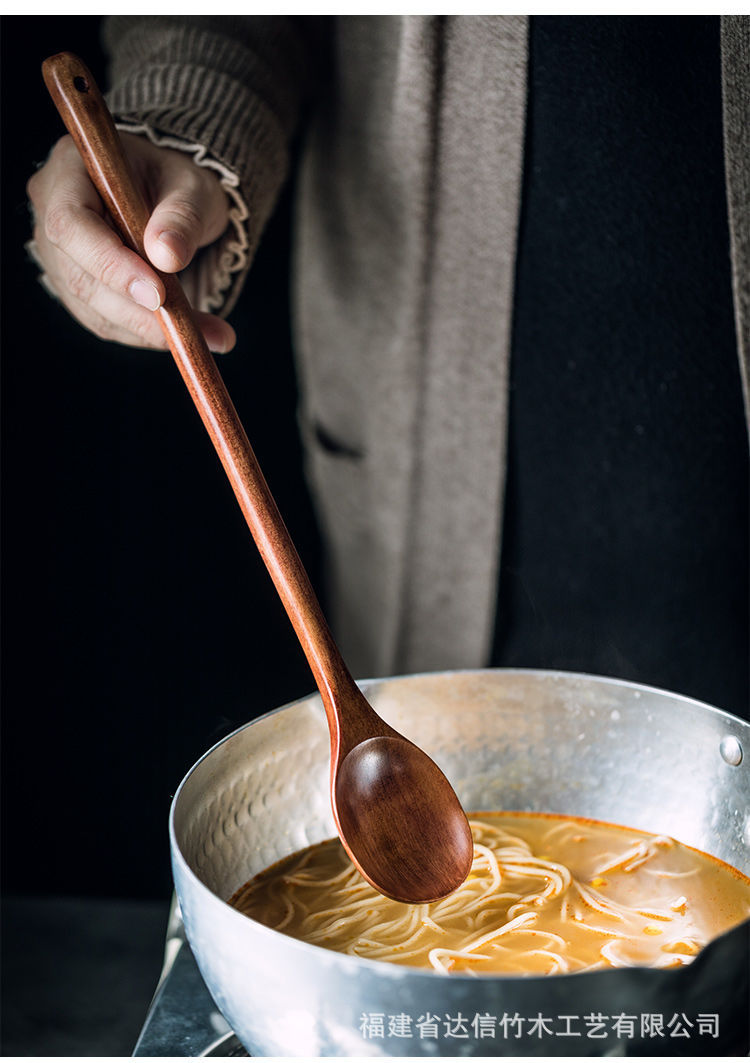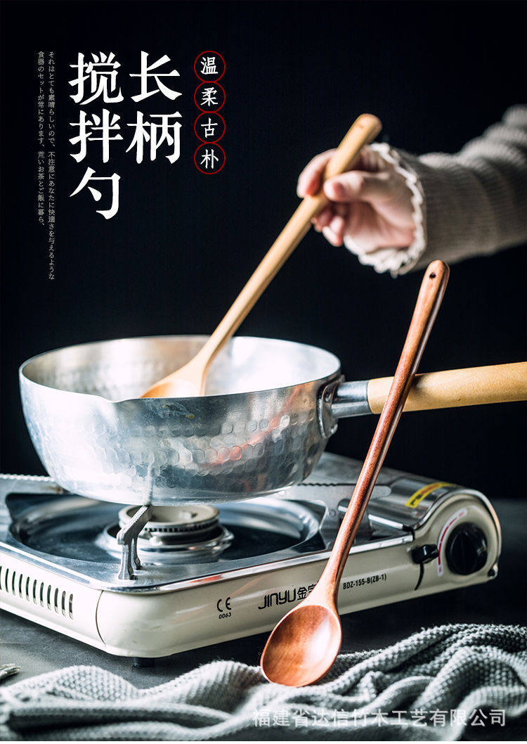 식품 등급 긴 손잡이 나무 숟가락, 화상 방지 가정용 믹싱 스푼, 전기밥솥 및 우유 냄비 전용 나무 요리 스푼, 각인 가능