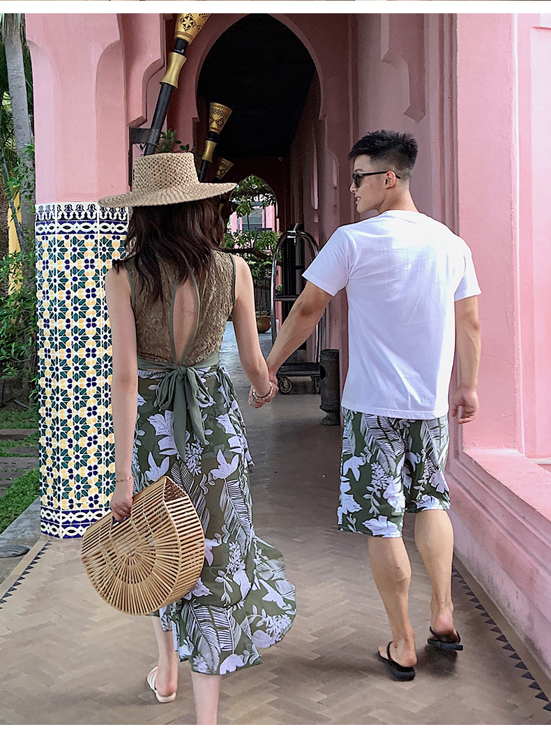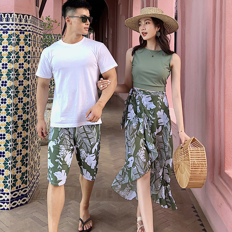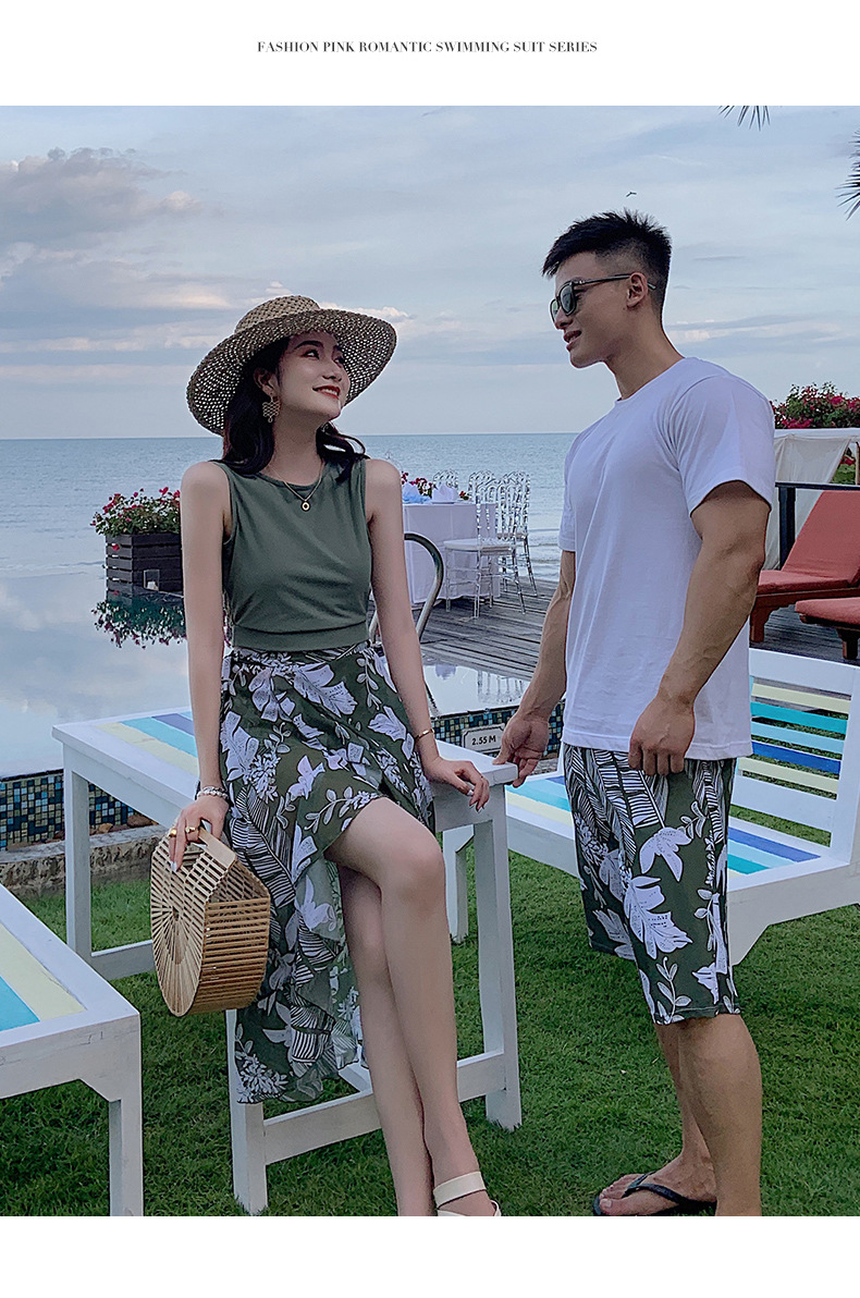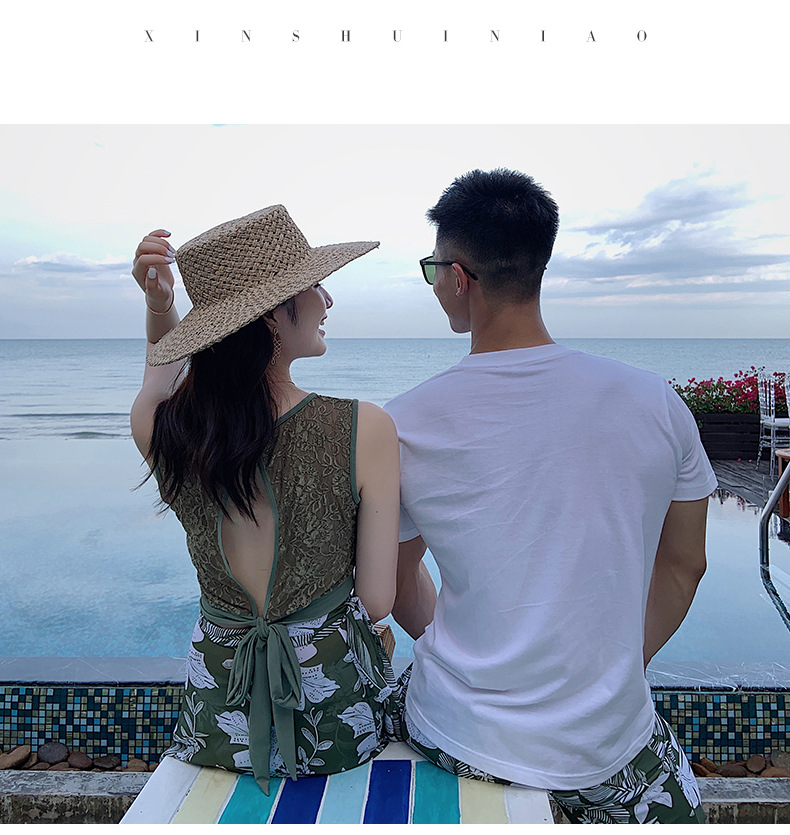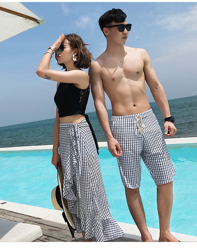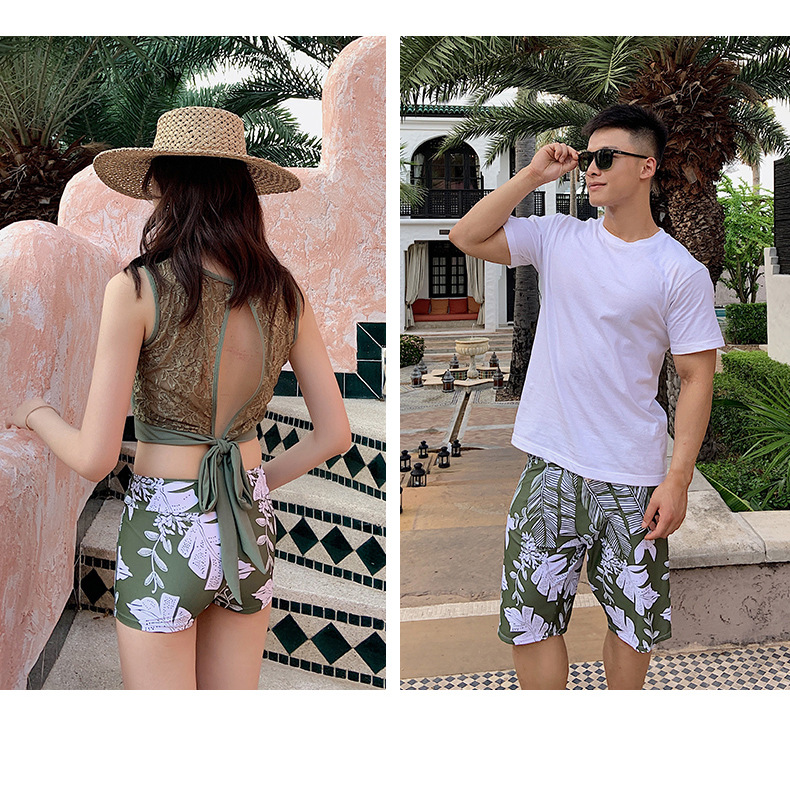 2024 일본 신상 커플 수영복 3종 세트, 패셔너블하고 여성스러운 수영복, 분리형 사각팬티, 남성용 5부 팬츠