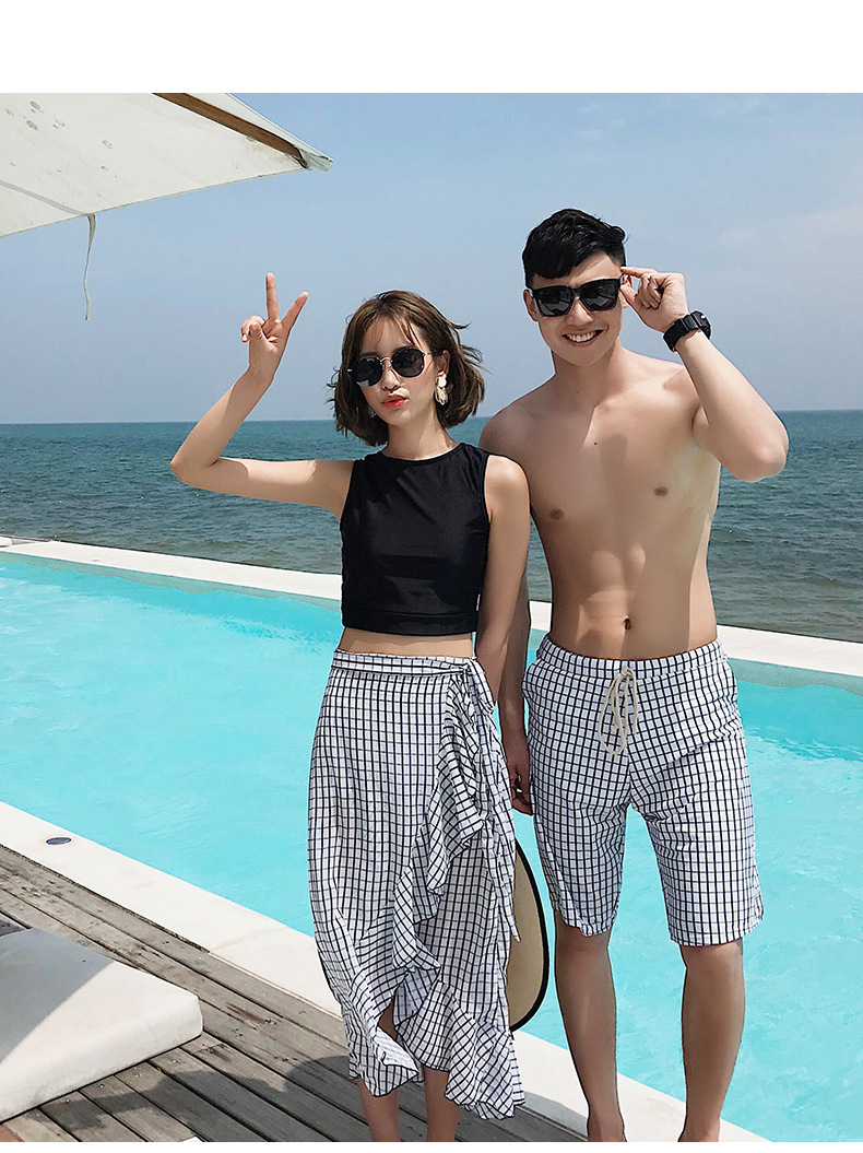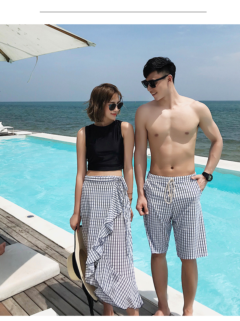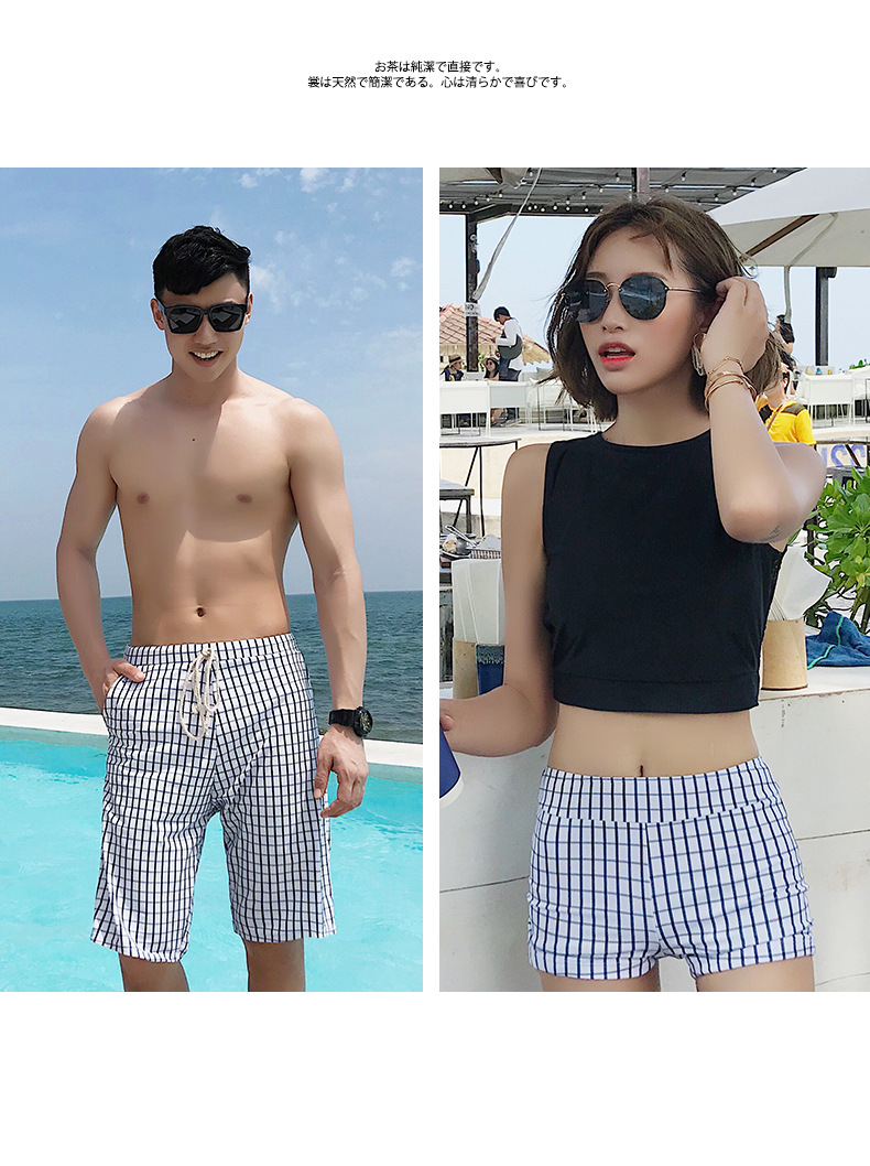 2024 일본 신상 커플 수영복 3종 세트, 패셔너블하고 여성스러운 수영복, 분리형 사각팬티, 남성용 5부 팬츠스토어 가기
