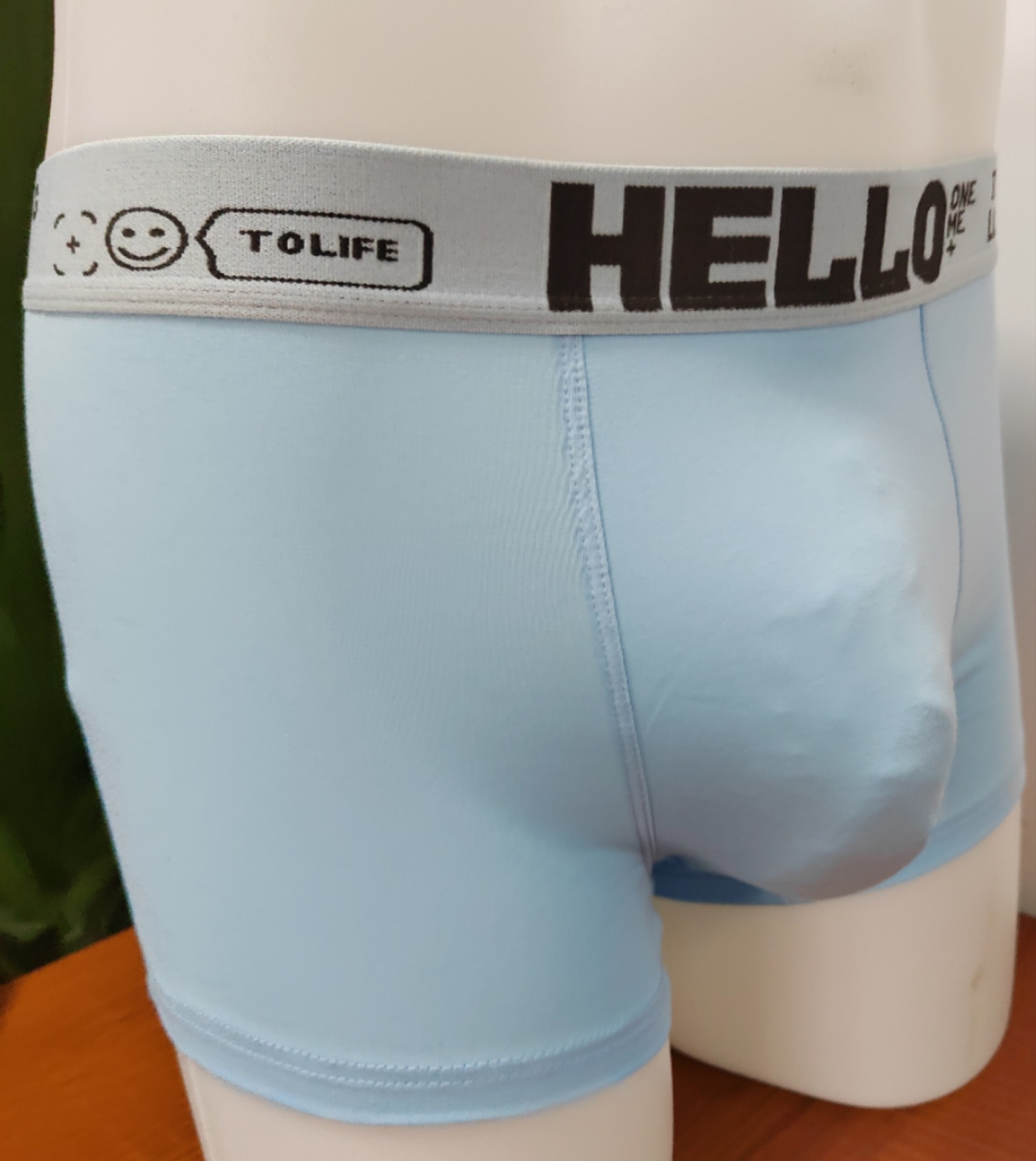 1、浅蓝色  undefined 3.5CM宽边字母高碳橡筋,舒服大气不勒肌肤!undefined