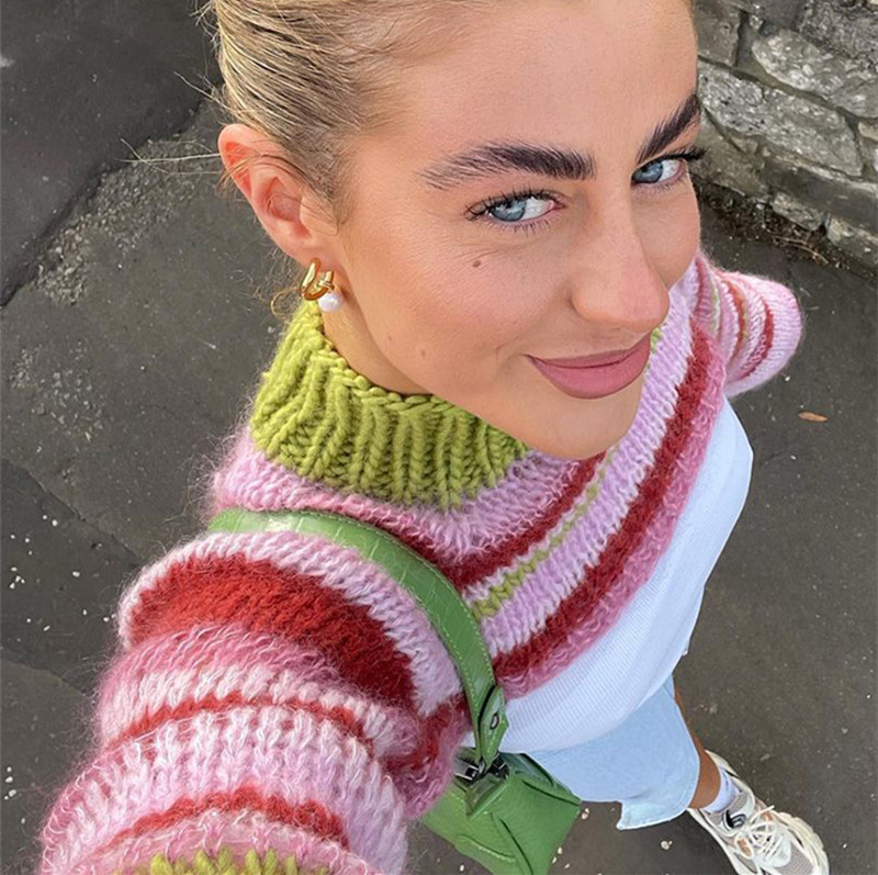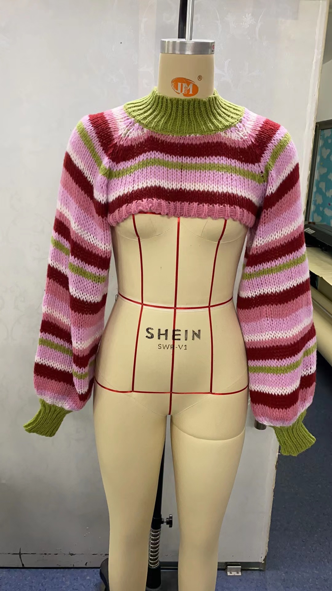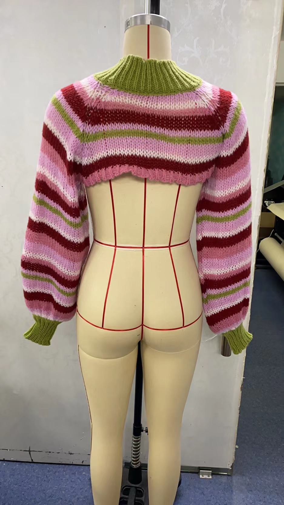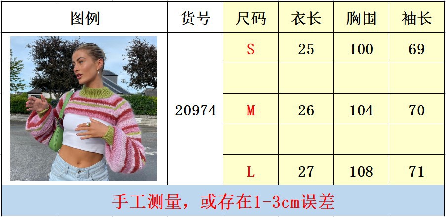 유럽과 미국 여성의 AliExpress 2022 가을과 겨울 새로운 컬러 스트라이프 블라우스 기질 짧은 긴 소매 스웨터