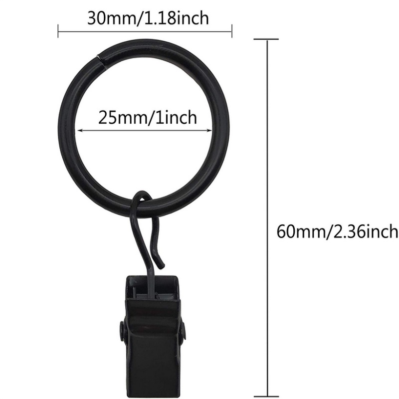 국경 간 뜨거운 판매 전기 영동 블랙 커튼 클립 순수 블랙 로마로드 링 블랙 메탈 샤워 커튼 클립