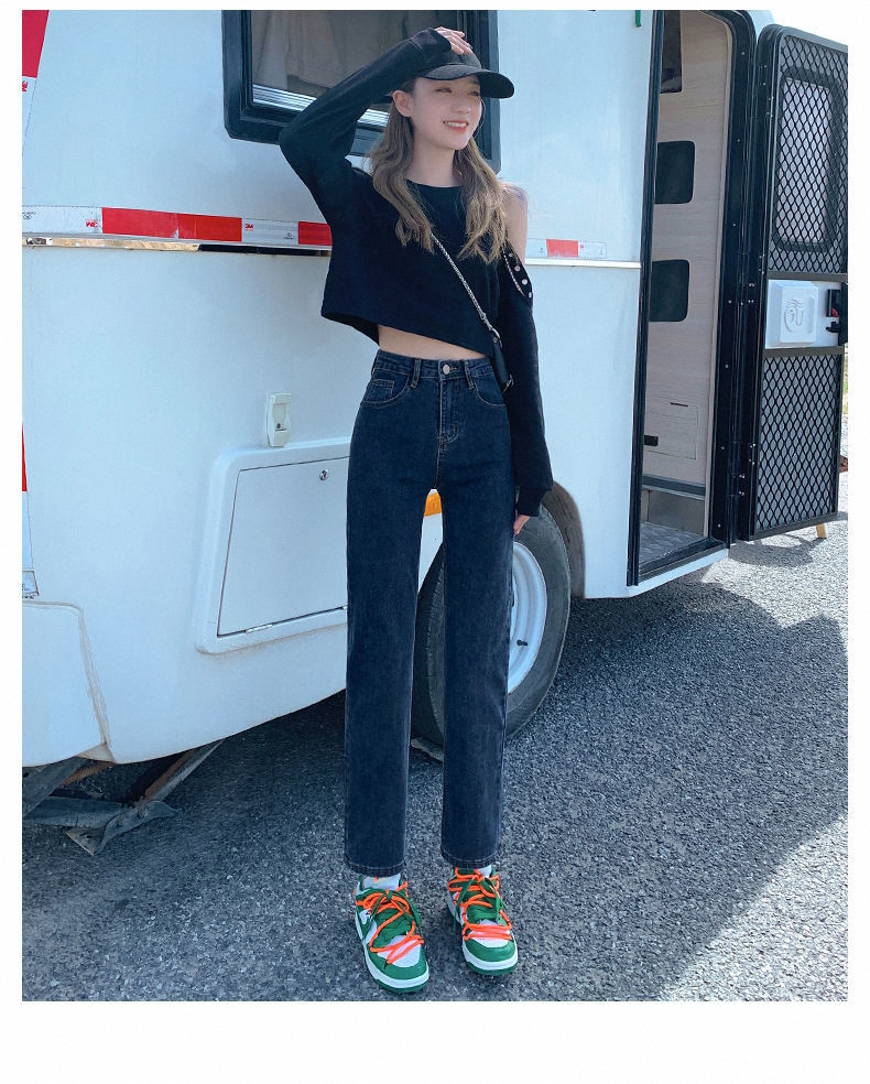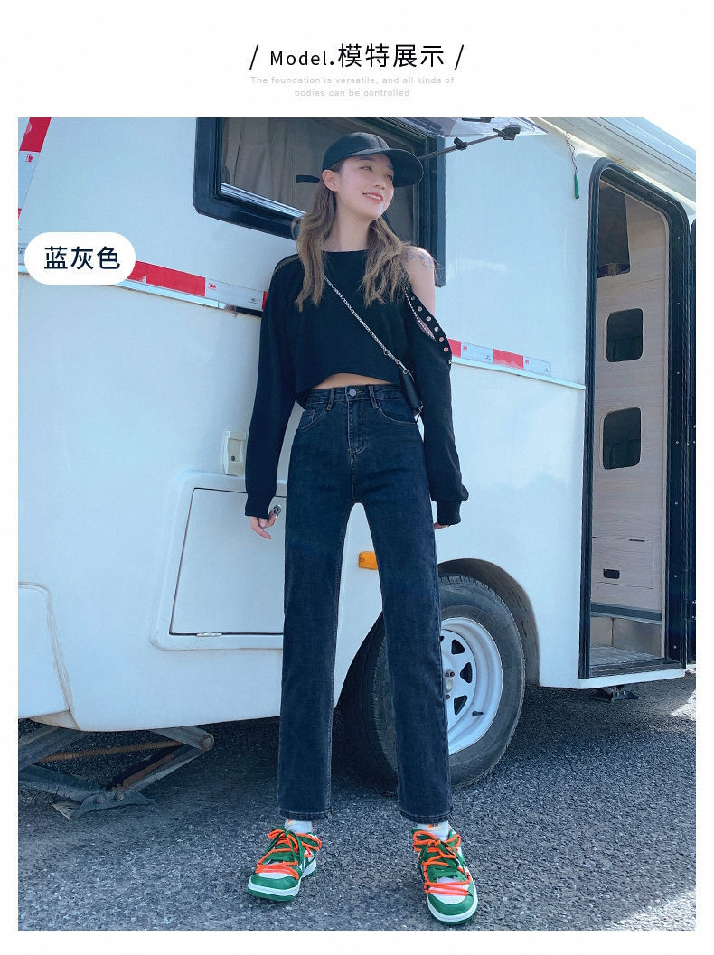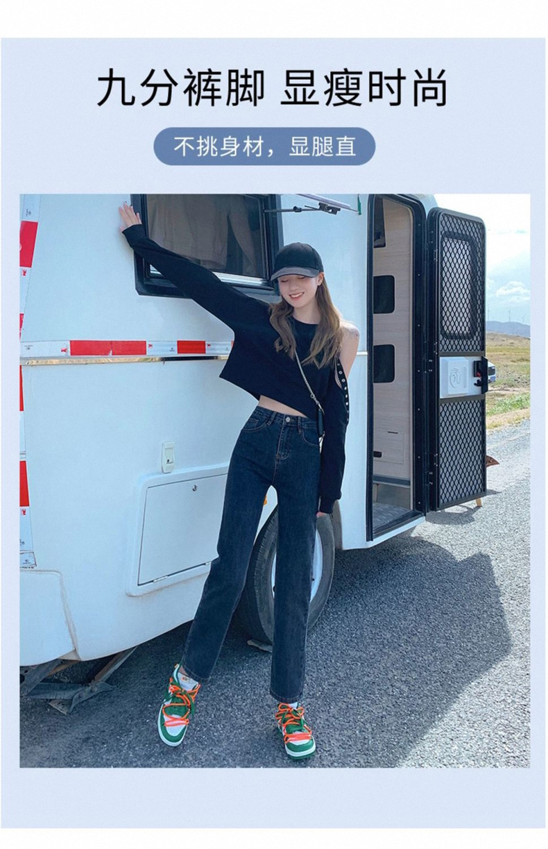 가을과 겨울 2023 여성을위한 작은 스트레이트 스트레치 청바지 높은 허리 한국 스타일 슬림 핏 학생들을위한 느슨한 자른 담배 튜브 바지스토어 가기