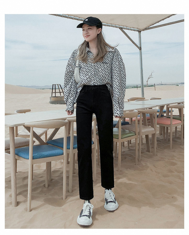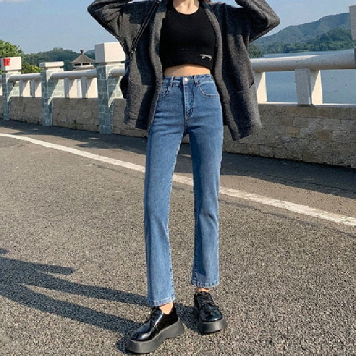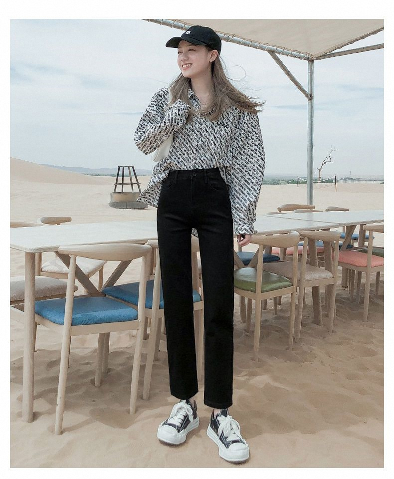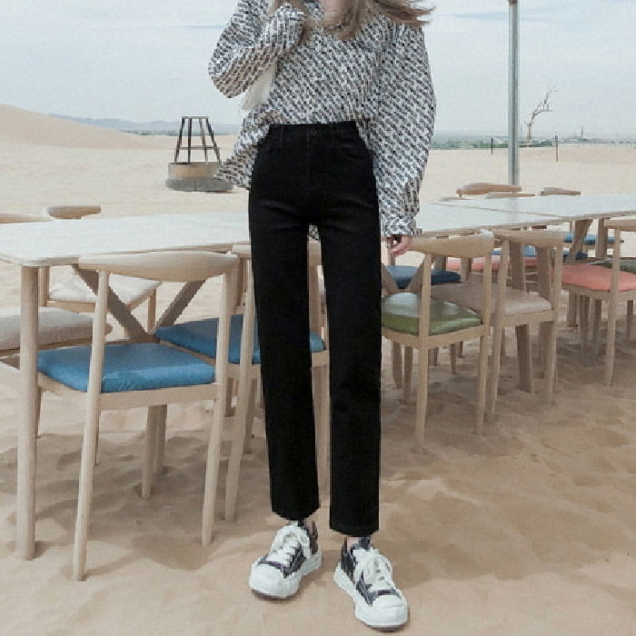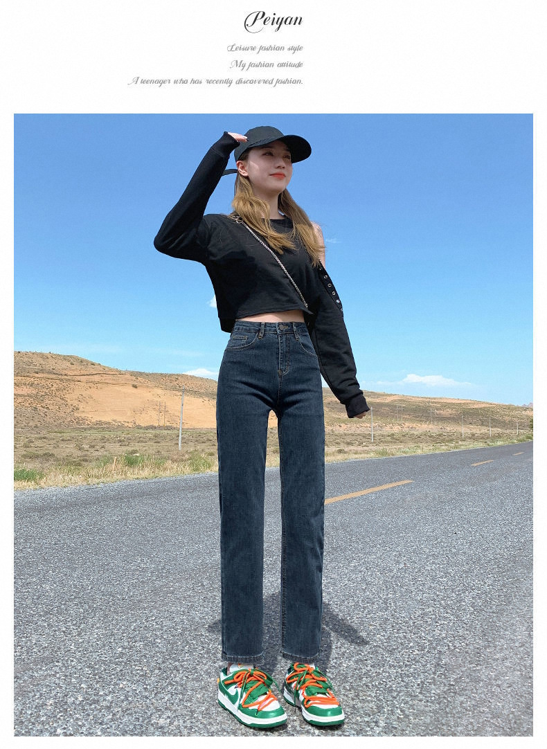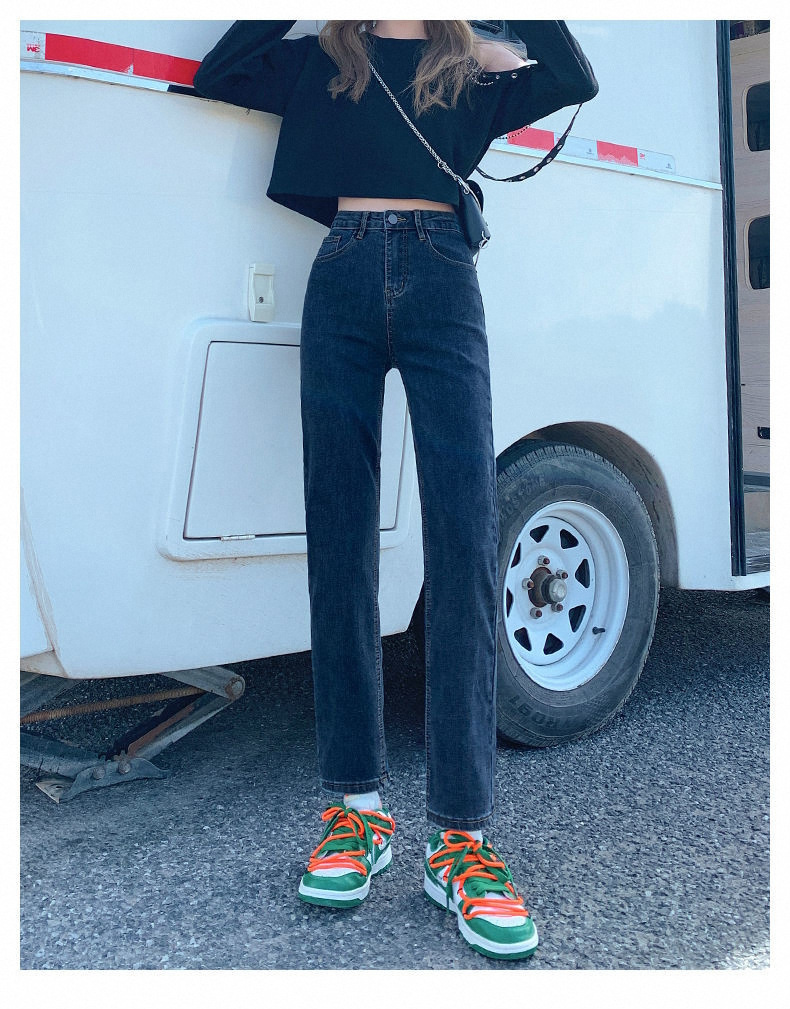 가을과 겨울 2023 여성을위한 작은 스트레이트 스트레치 청바지 높은 허리 한국 스타일 슬림 핏 학생들을위한 느슨한 자른 담배 튜브 바지