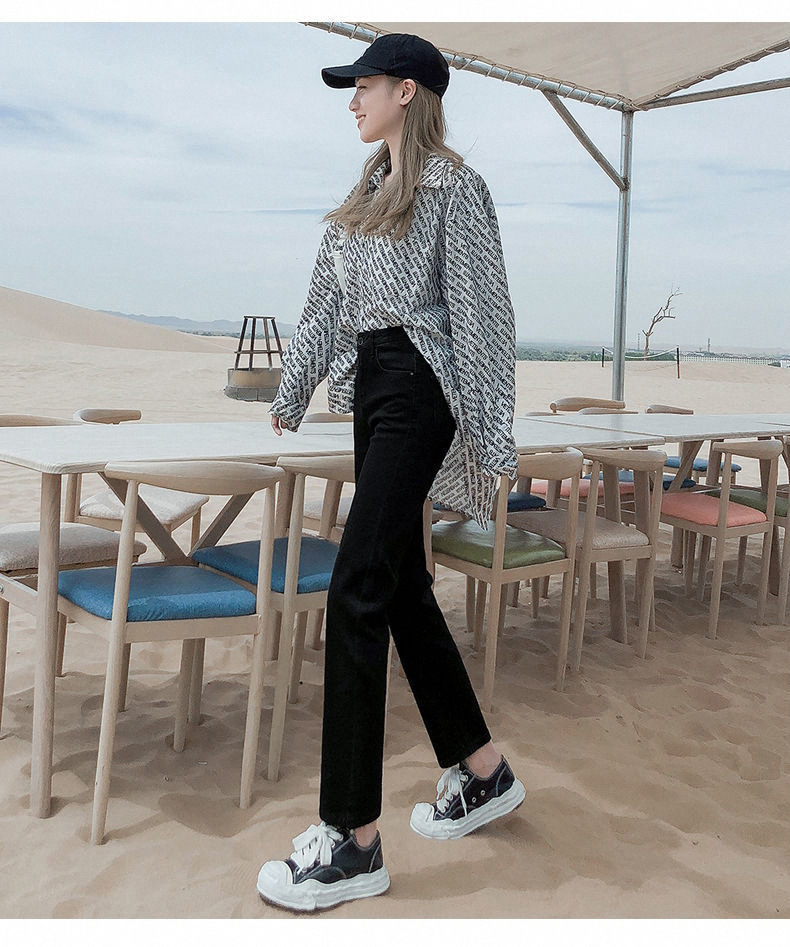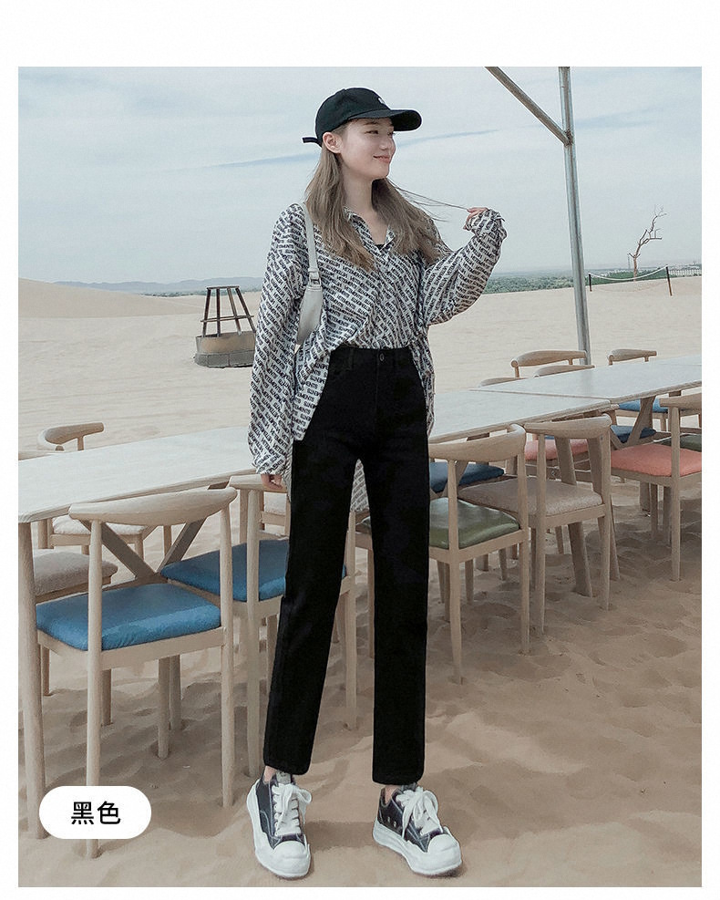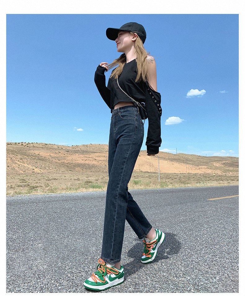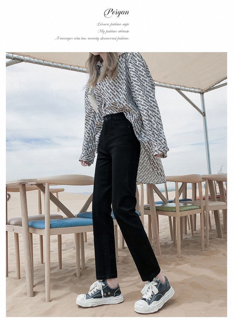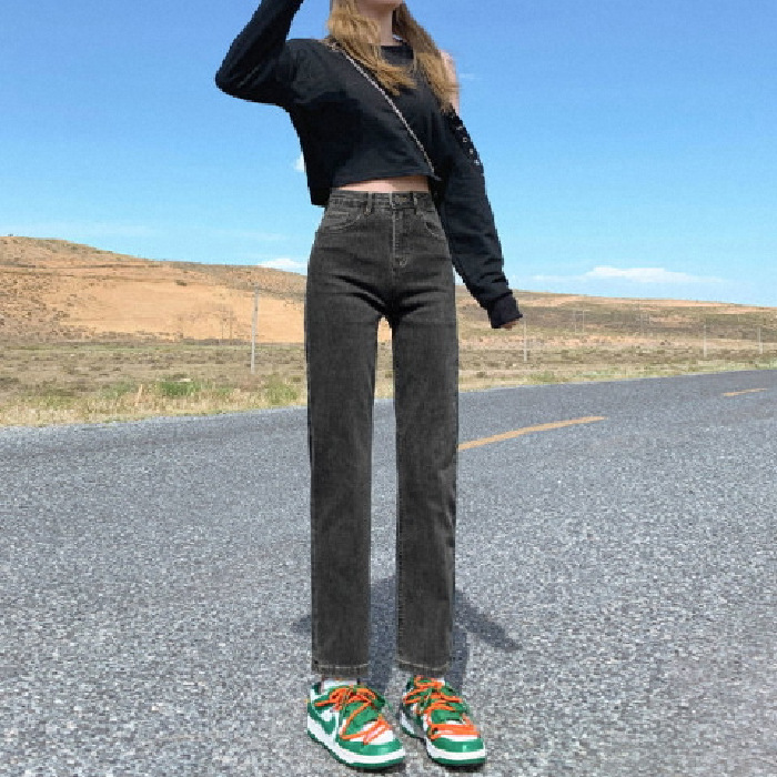 가을과 겨울 2023 여성을위한 작은 스트레이트 스트레치 청바지 높은 허리 한국 스타일 슬림 핏 학생들을위한 느슨한 자른 담배 튜브 바지