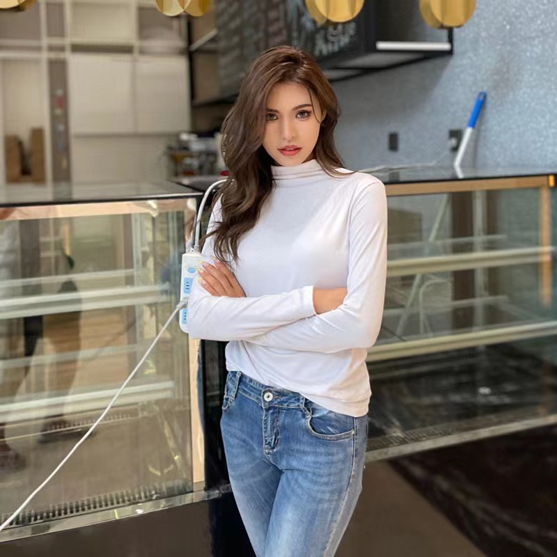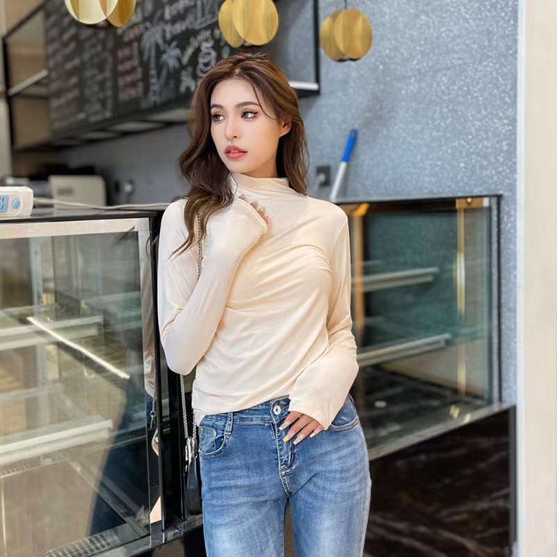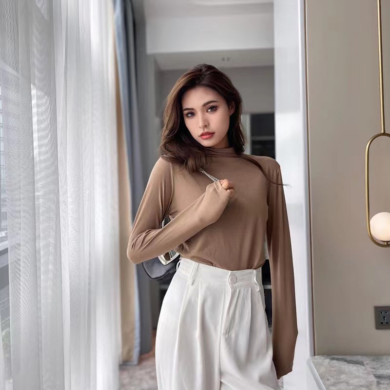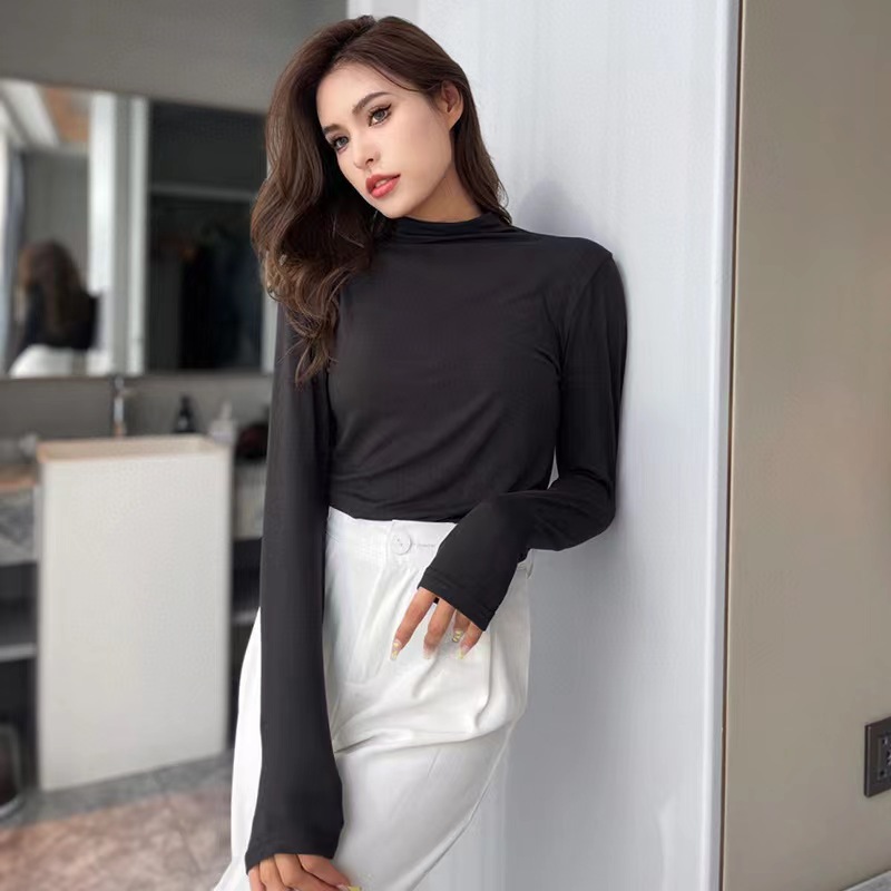 여성용 9색 페이셜 마스크 바텀 셔츠, 피부 친화적인 누드 느낌의 가을 겨울 하프 터틀넥 솔리드 컬러 슬림핏 신축성 있는 이너 슬림핏 탑스토어 가기