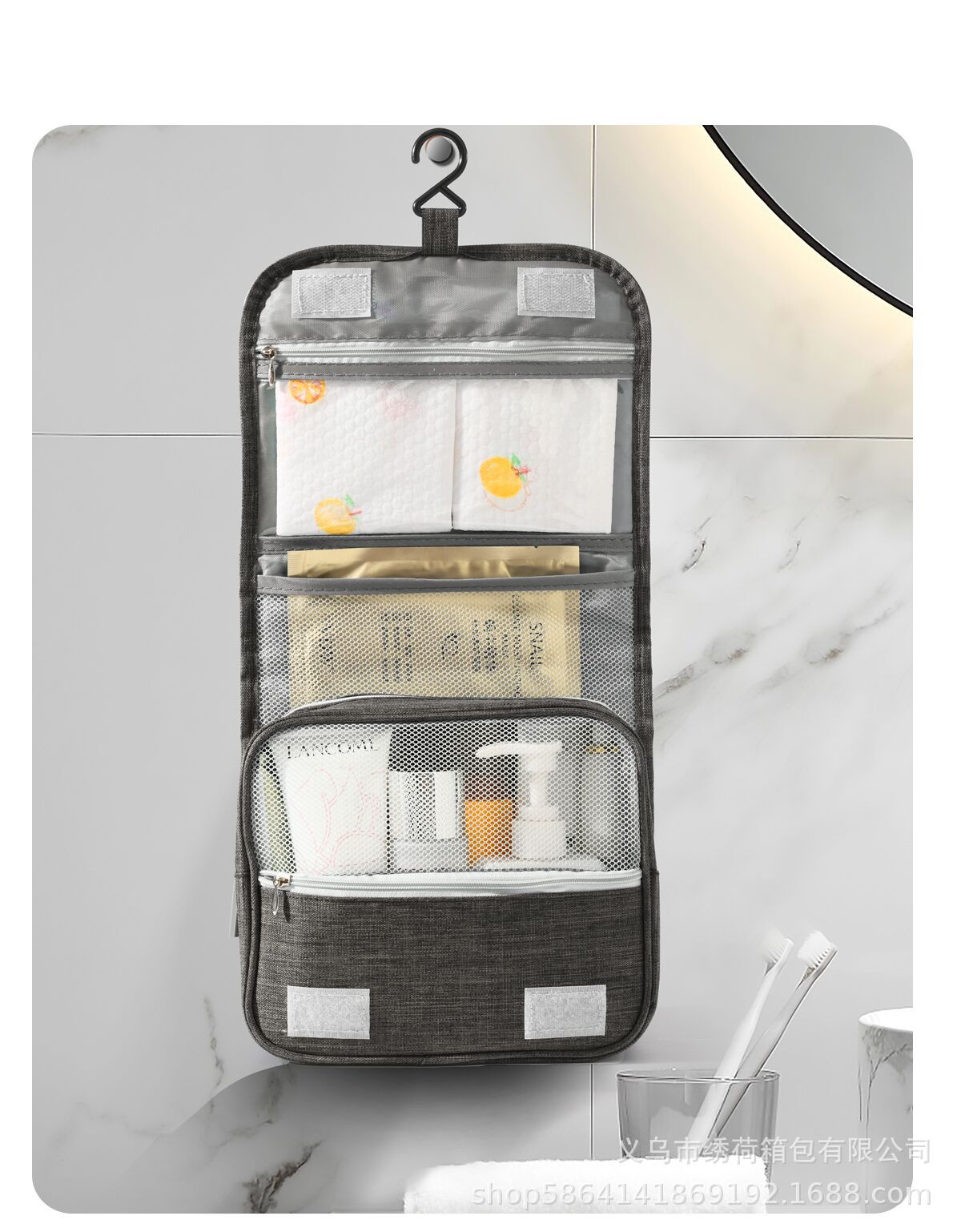 비즈니스 메이크업 수납 가방 대용량 휴대용 다기능 후크 접이식 건습 분리 세면 가방스토어 가기