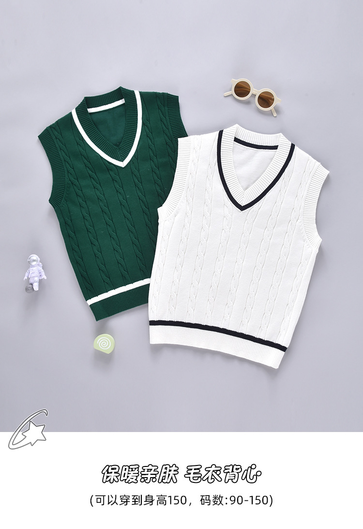 2025 새로운 어린이 스웨터 조끼 가을, 겨울 v 넥 소년과 소녀 풀오버 스웨터 대학 스타일 캐주얼 아동 의류스토어 가기