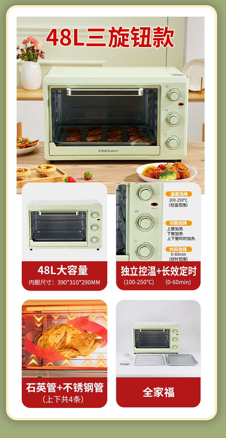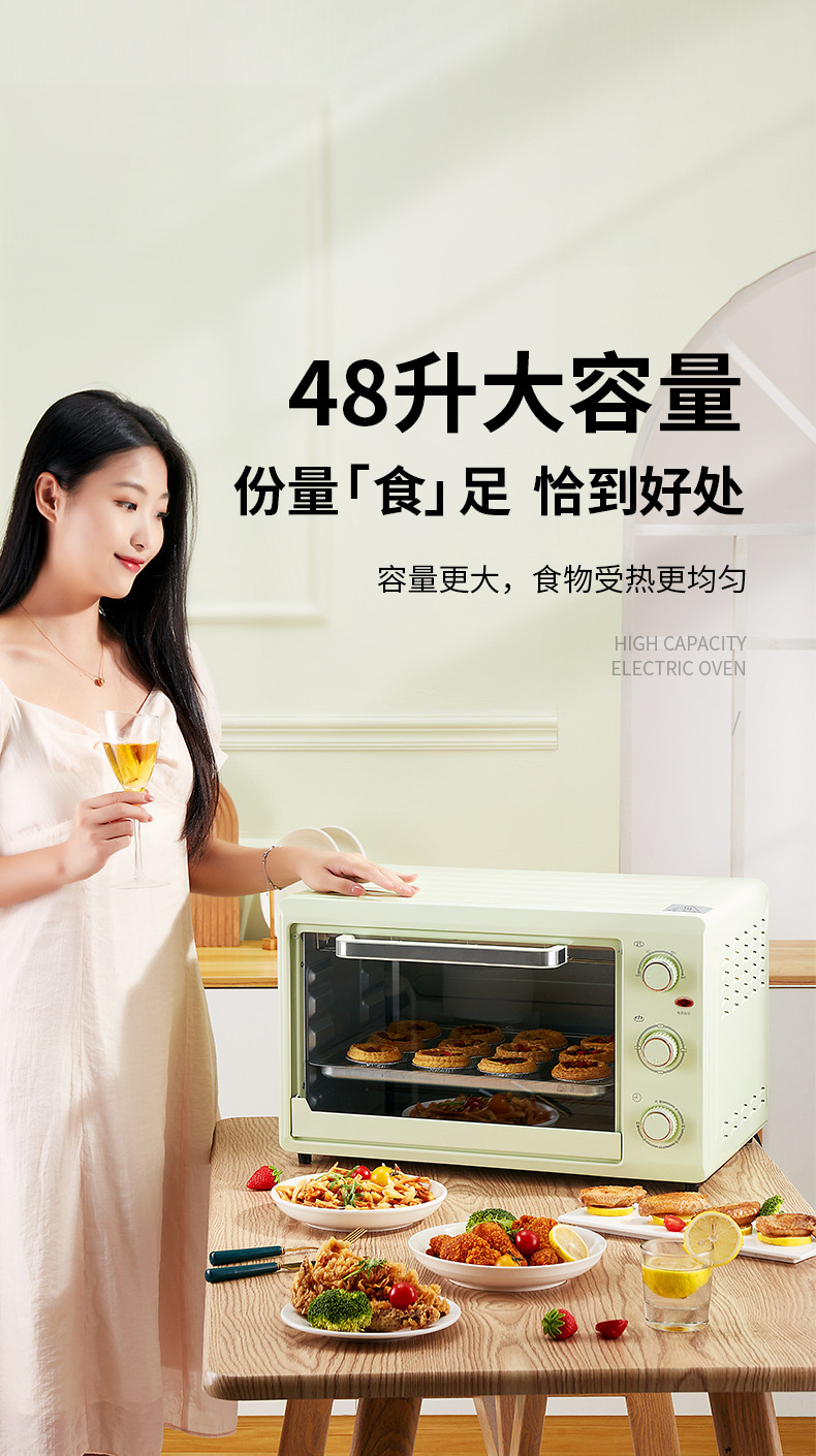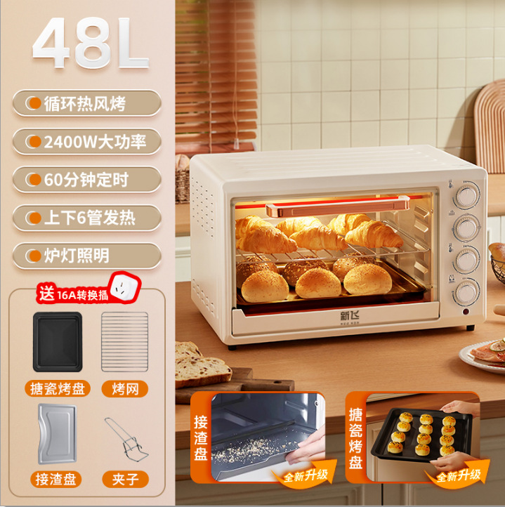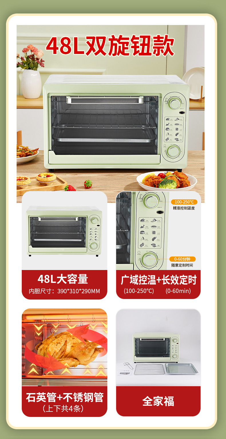 신형 전기 오븐 가정용 대용량 48리터 자동 오븐 빵과 비스킷 오븐 타이머 온도 조절 베이킹