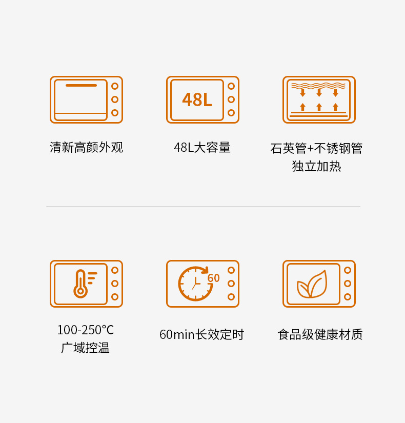 • Xinfei 48L 무광택 흰색 4개 손잡이 6관 전기 오븐