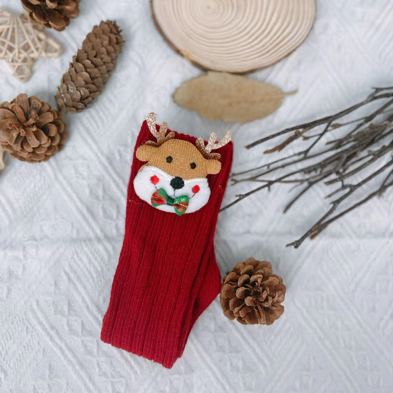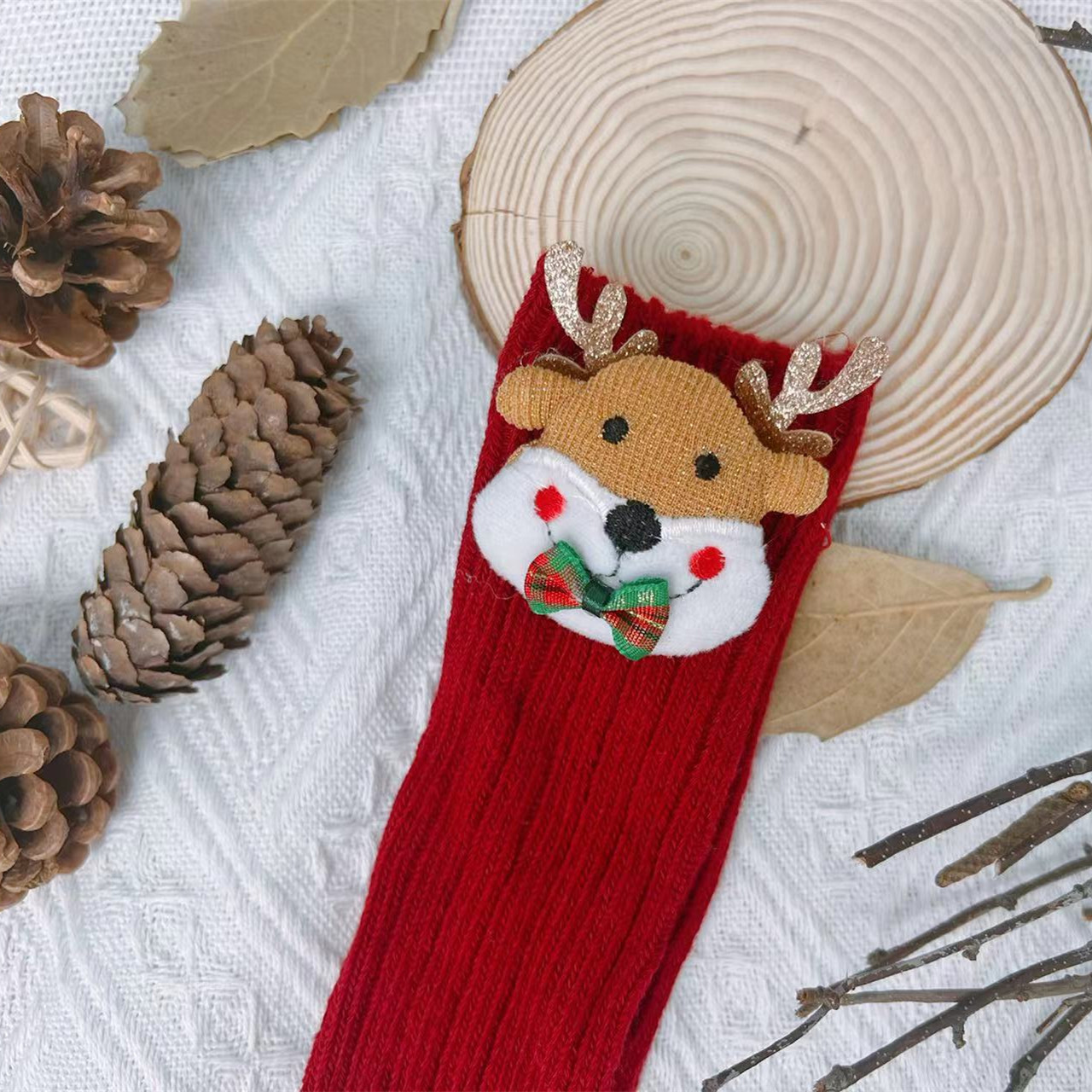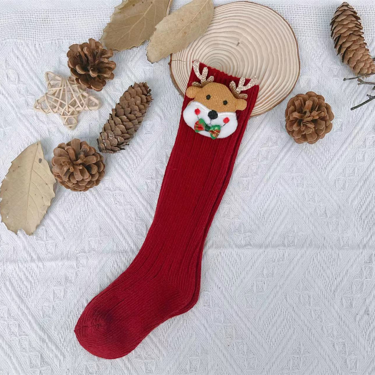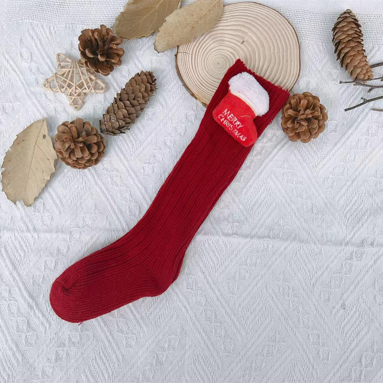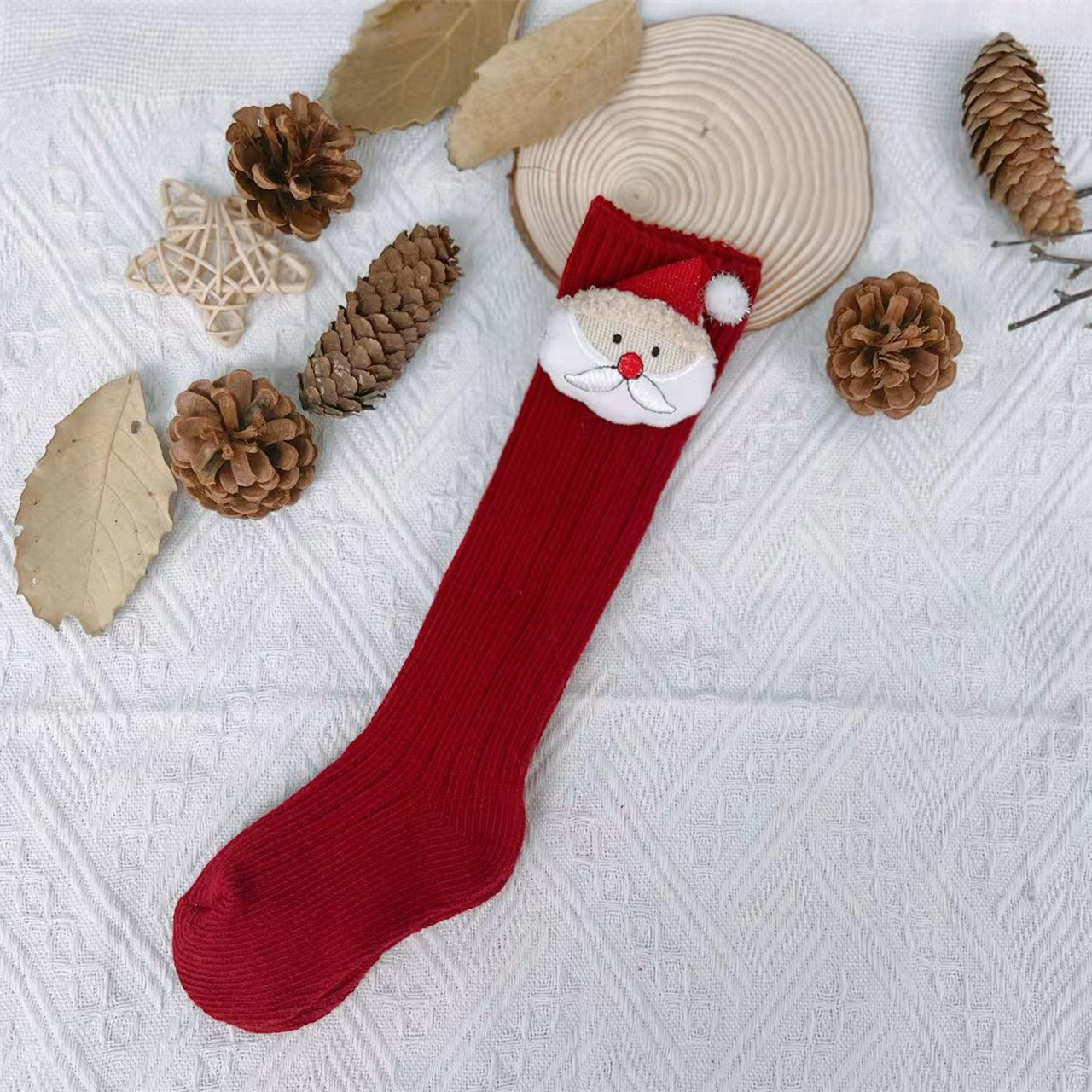 2022ins 어린이 스페인 가을과 겨울 새 크리스마스 새해 울 아기 양말 단색 중간 높이 긴 양말스토어 가기