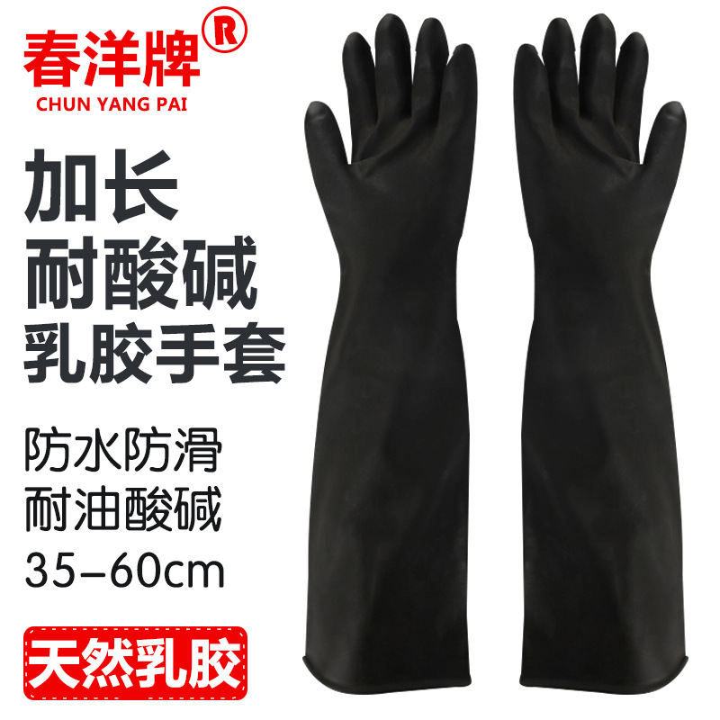 춘양 두꺼운 라텍스 장갑 긴 소매 고무 가죽 검은 방수 미끄럼 방지 산 및 알칼리 방지 공장 산업 장갑 노동 보호스토어 가기