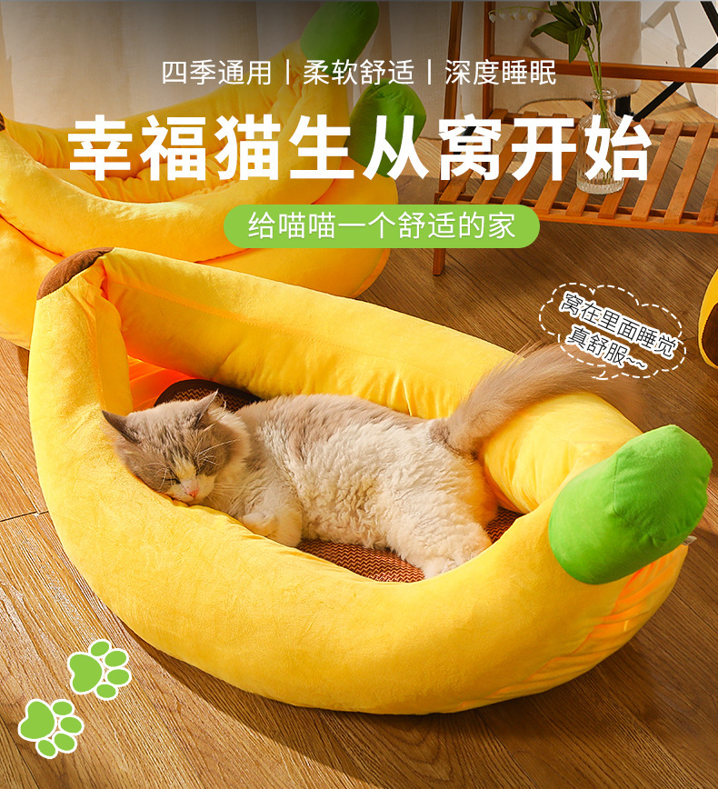 애완동물 침대 도매, 분리 세탁 가능, 사계절 사용 가능한 강아지 침대, 바나나 보트 애완용품, 강아지 매트, 따뜻한 고양이 침대스토어 가기