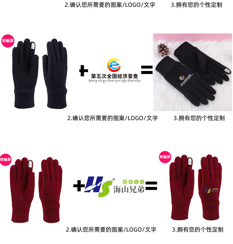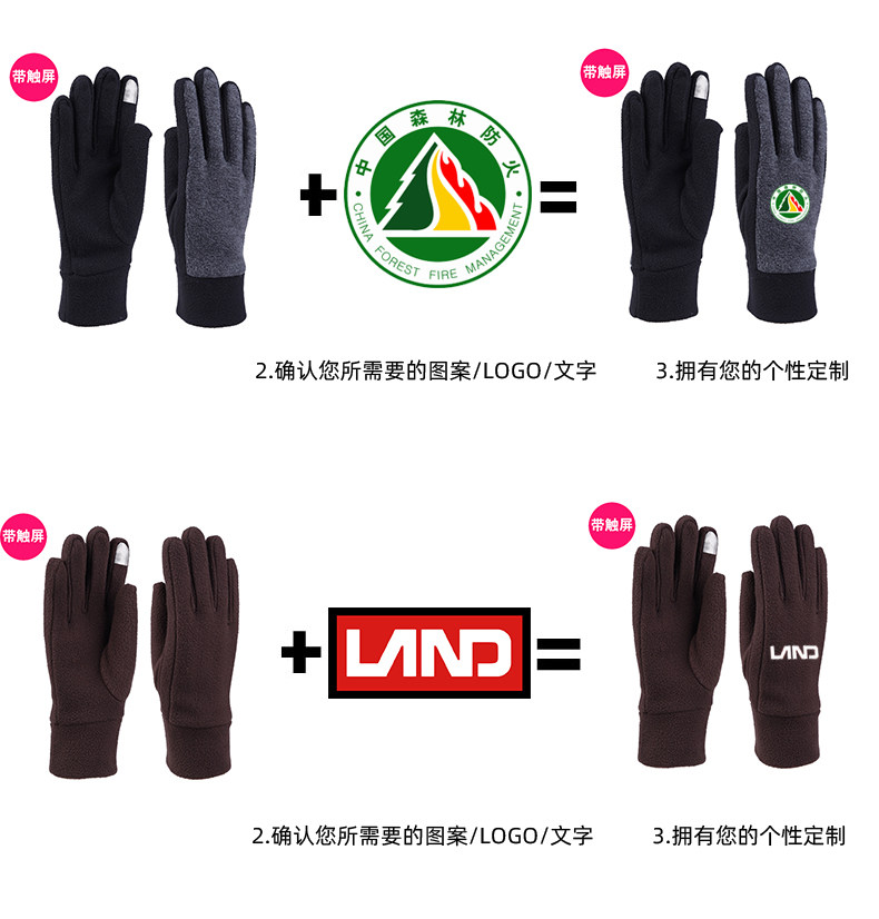 장갑 사용자 정의 플러스 로고 패턴 텍스트 광고 회사 선물 겨울 남성과 여성 따뜻한 인쇄 사용자 정의 로고스토어 가기