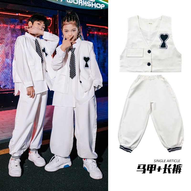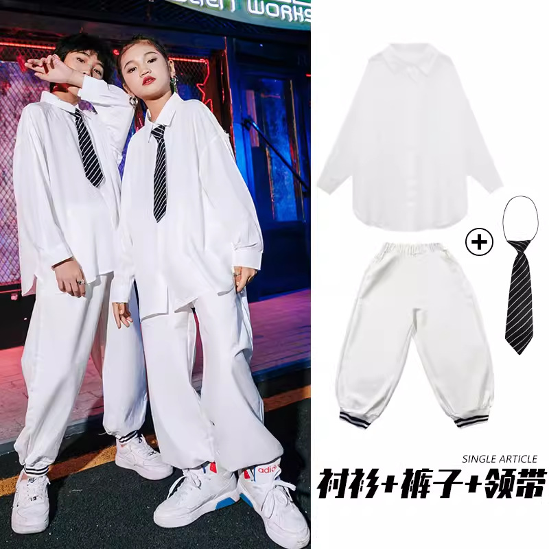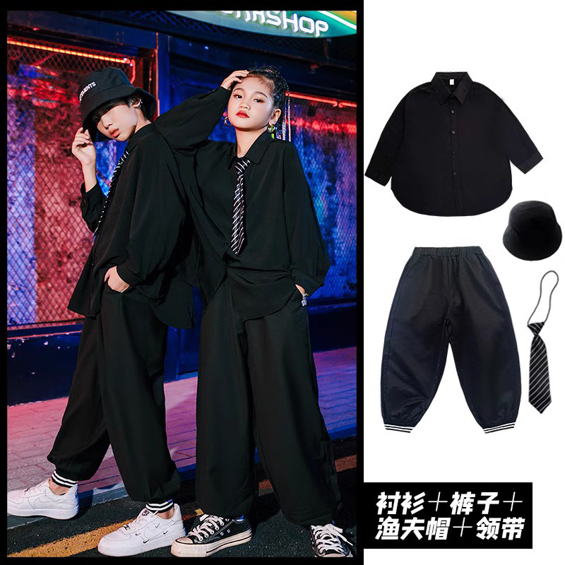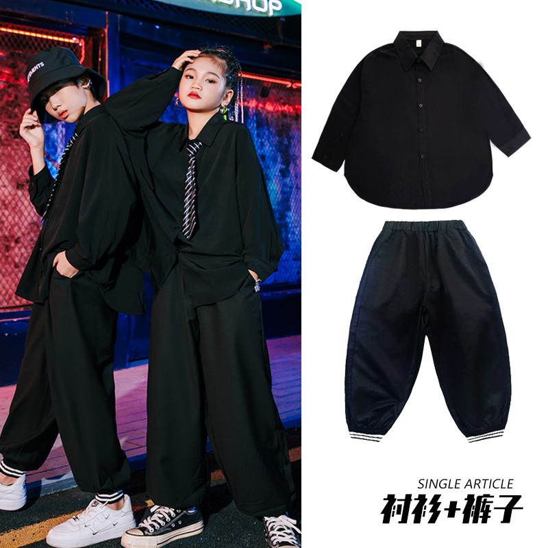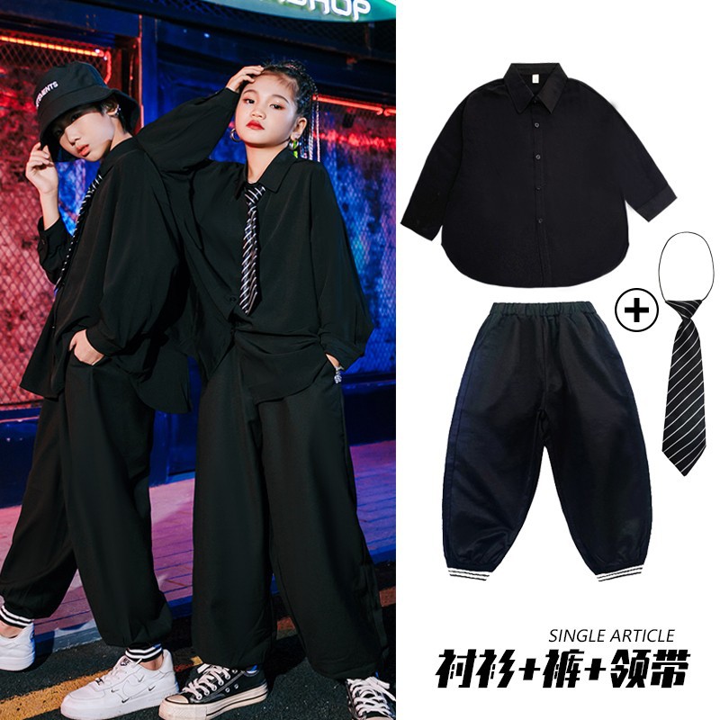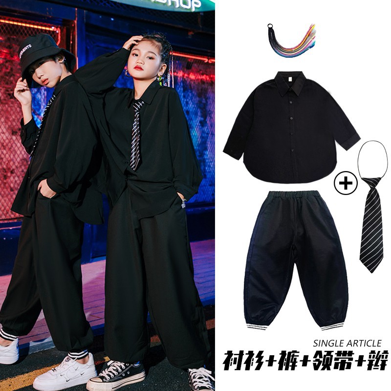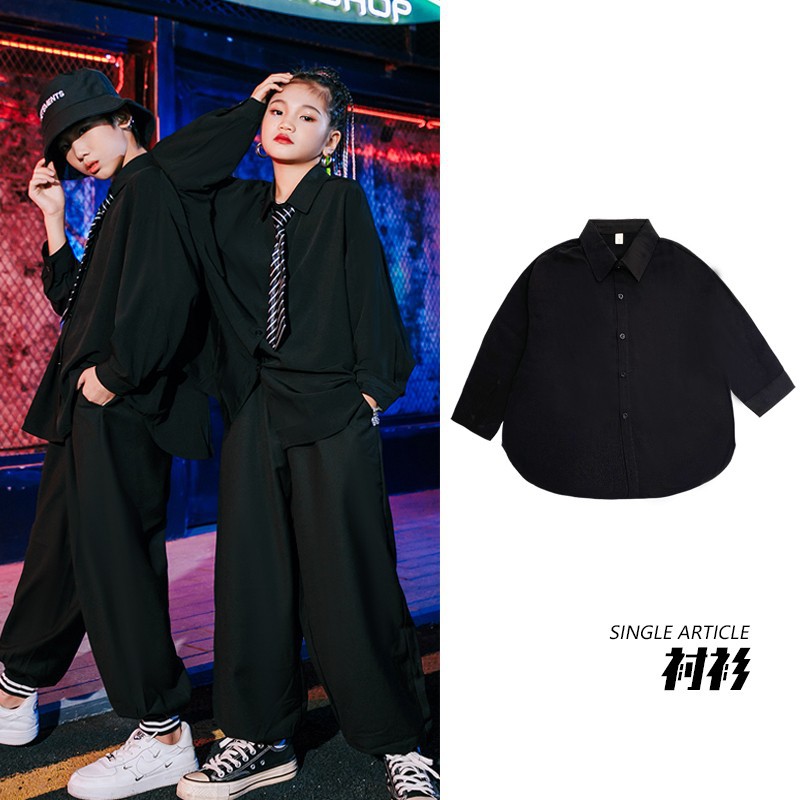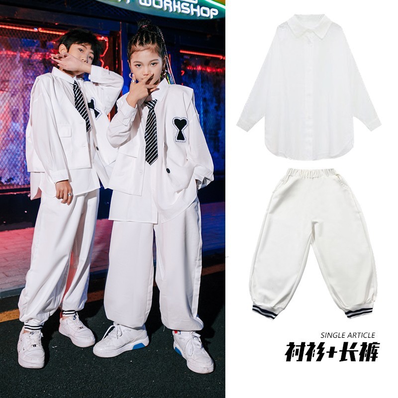 여아 재즈 댄스 의상 어린이 정장 셔츠 남아 힙합 스트리트 댄스 공연복 트렌디한 공연복
