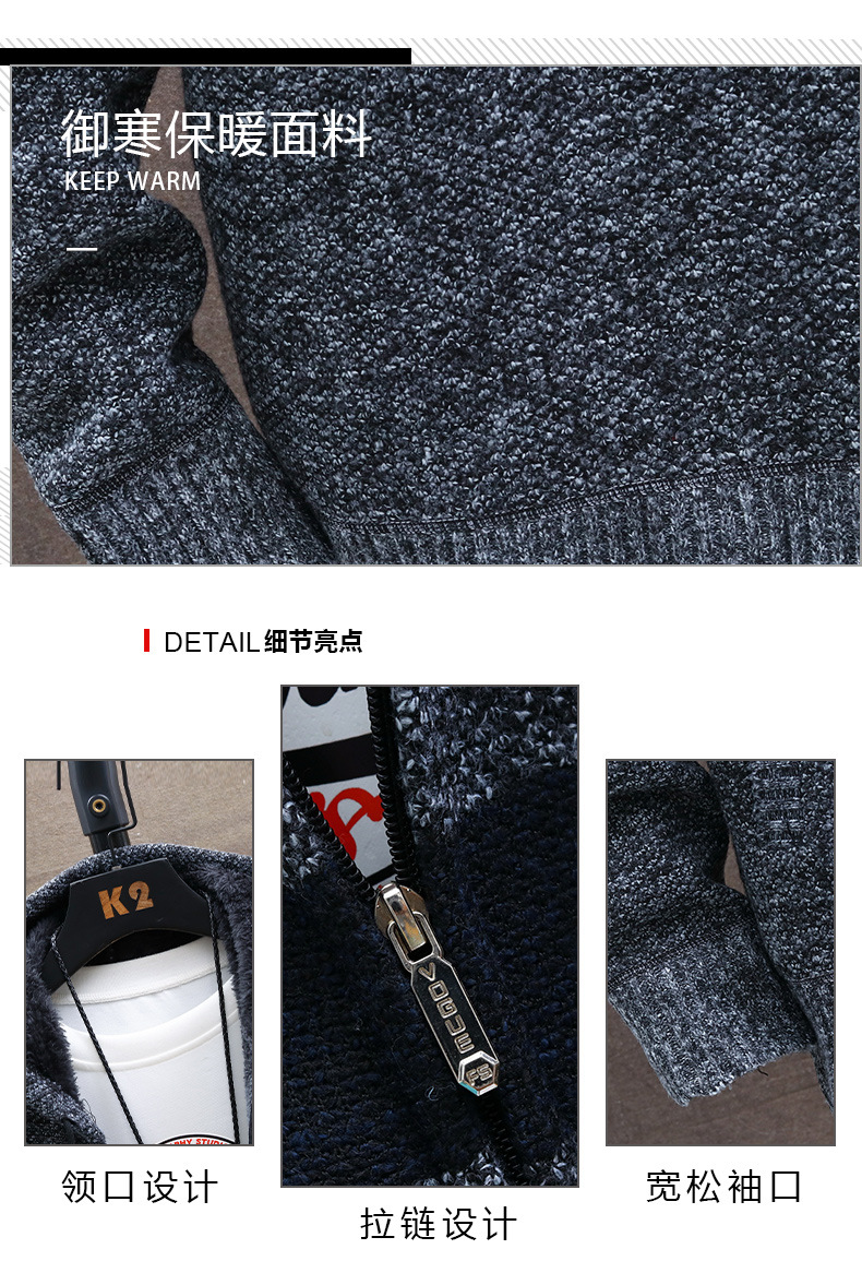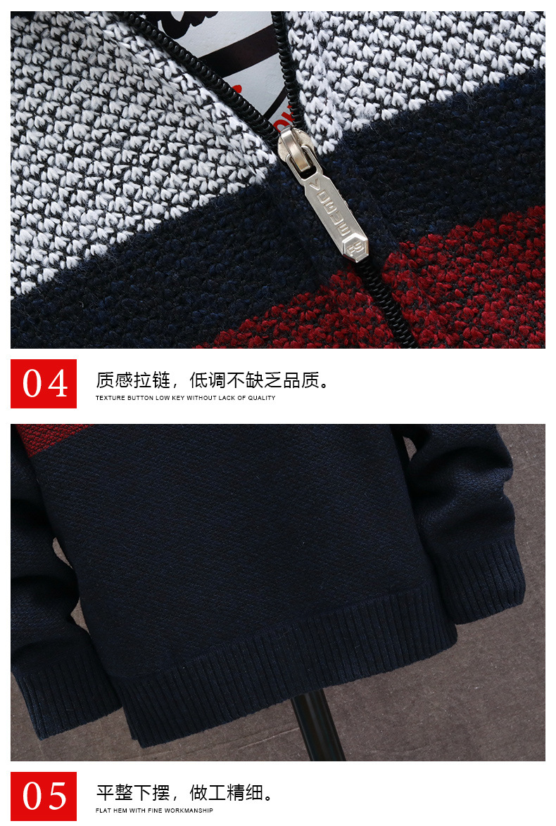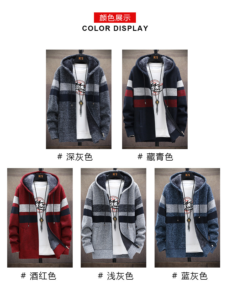 크로스 보더 스웨터 코트 남성용 가을과 겨울 트렌디 후드 가디건 기모 두꺼운 색상 차단 스웨터 대외 무역 스웨터스토어 가기